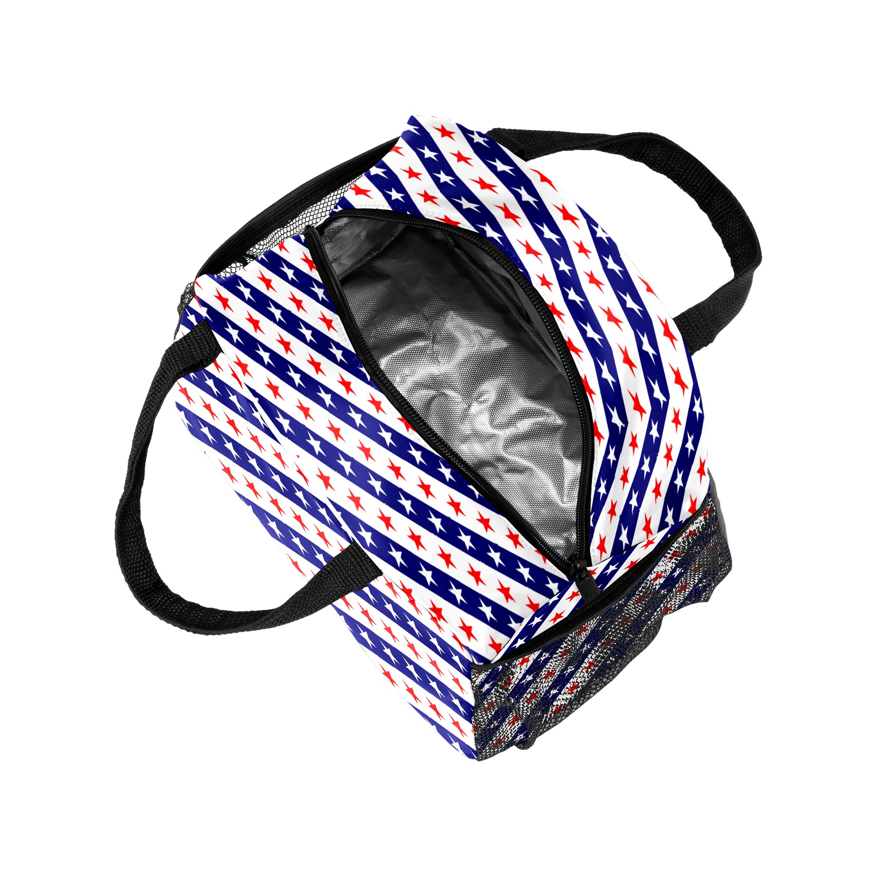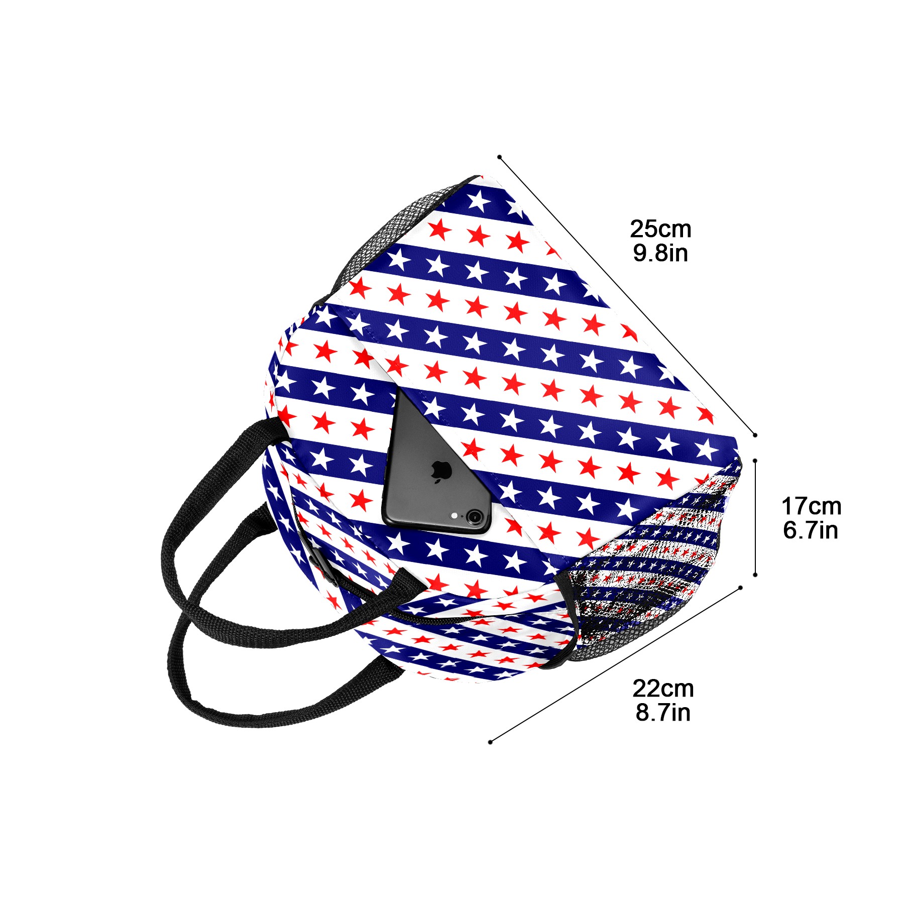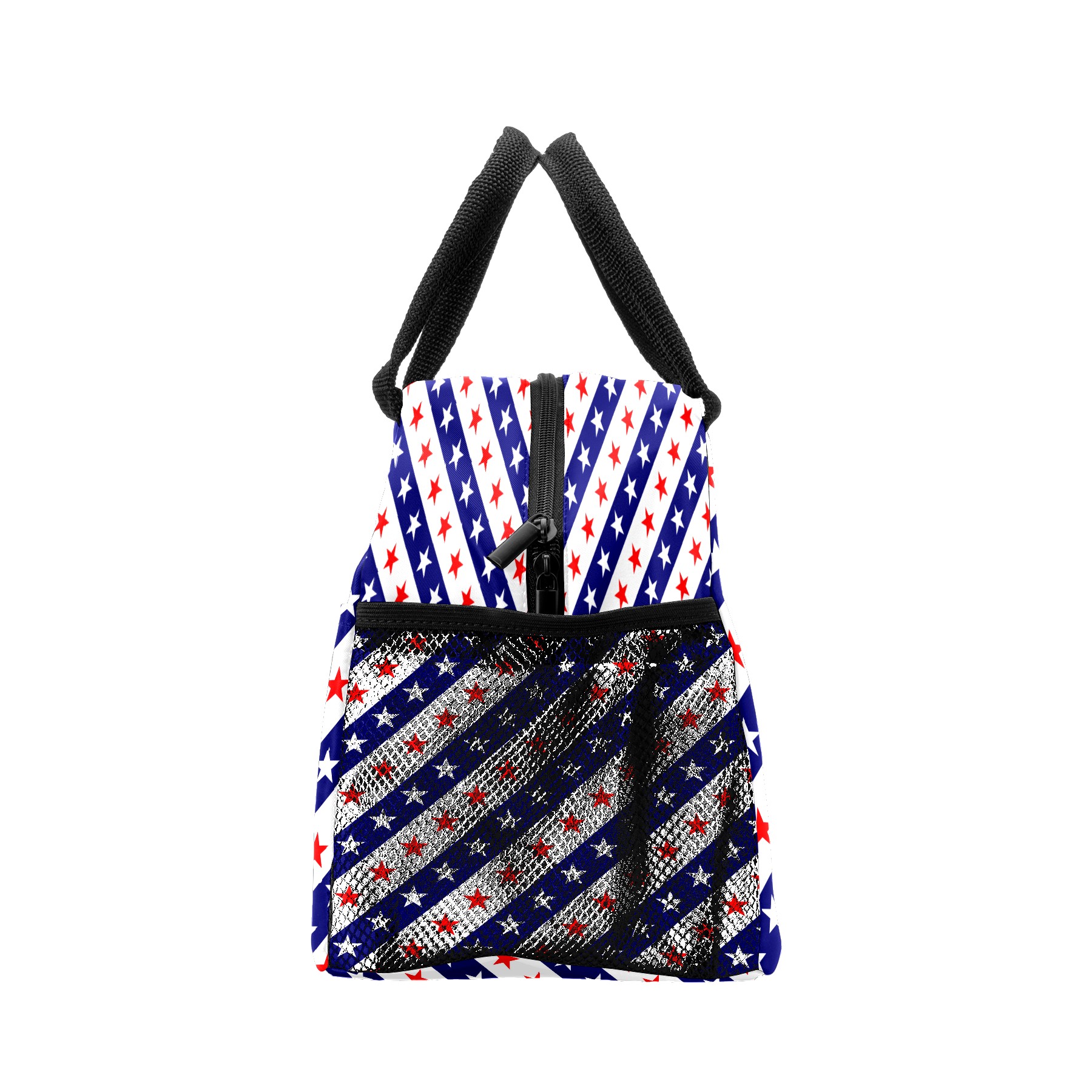 Lunch Bag for Women Men, USA Flag Blue White Red Stars Stripes Insulated Reusable Lunch Box Thermal Cooler Tote Bag for Work Picnic Hiking Travel Beach
