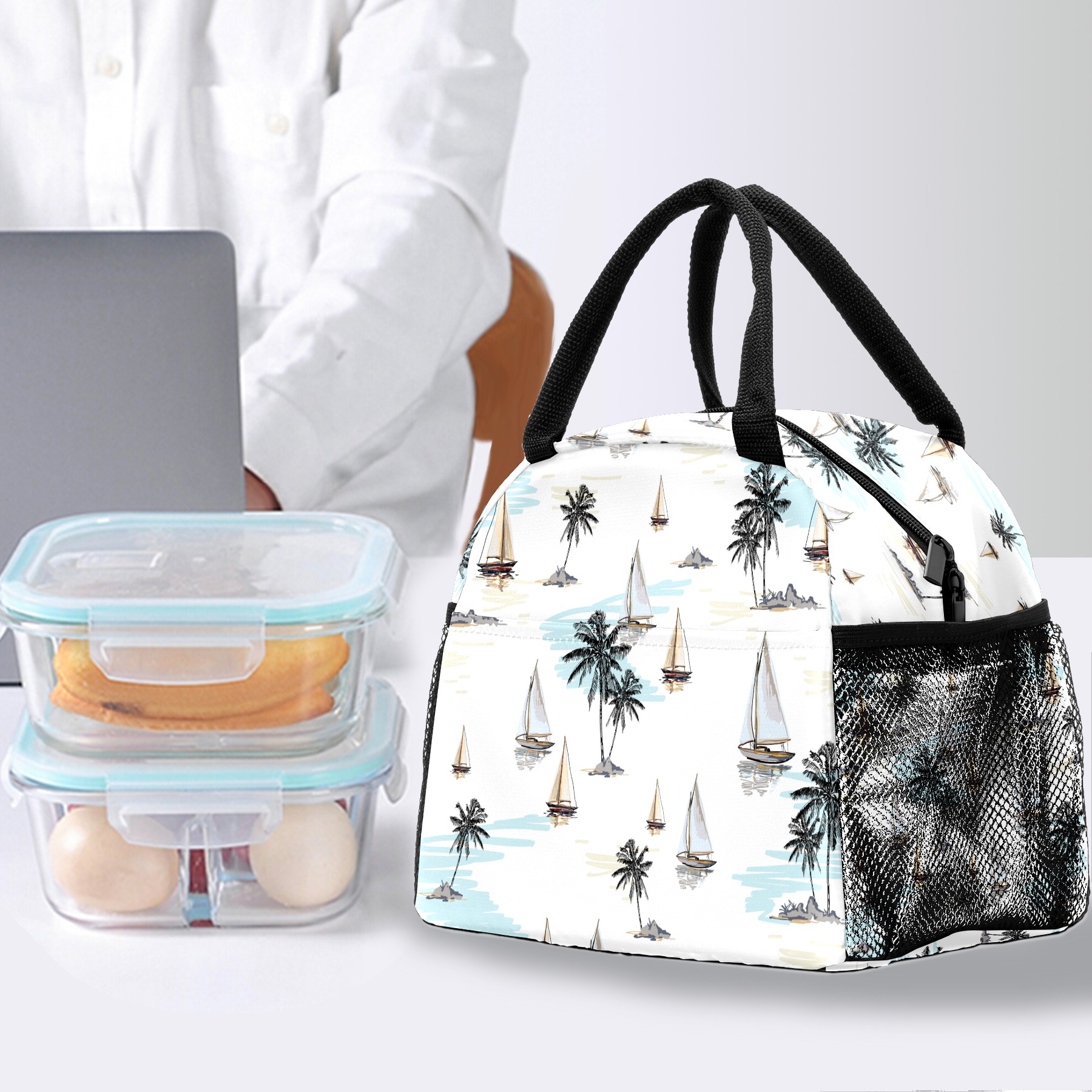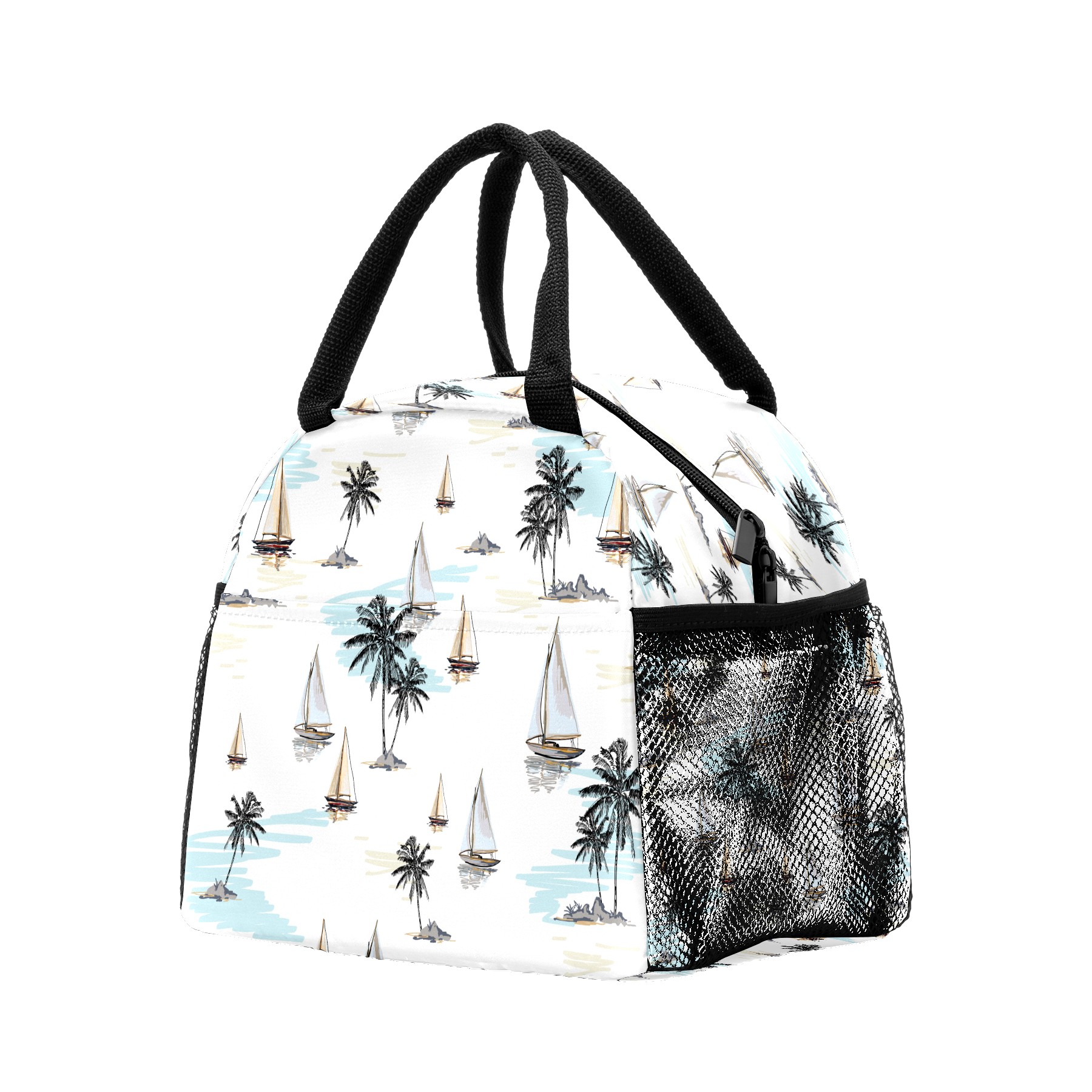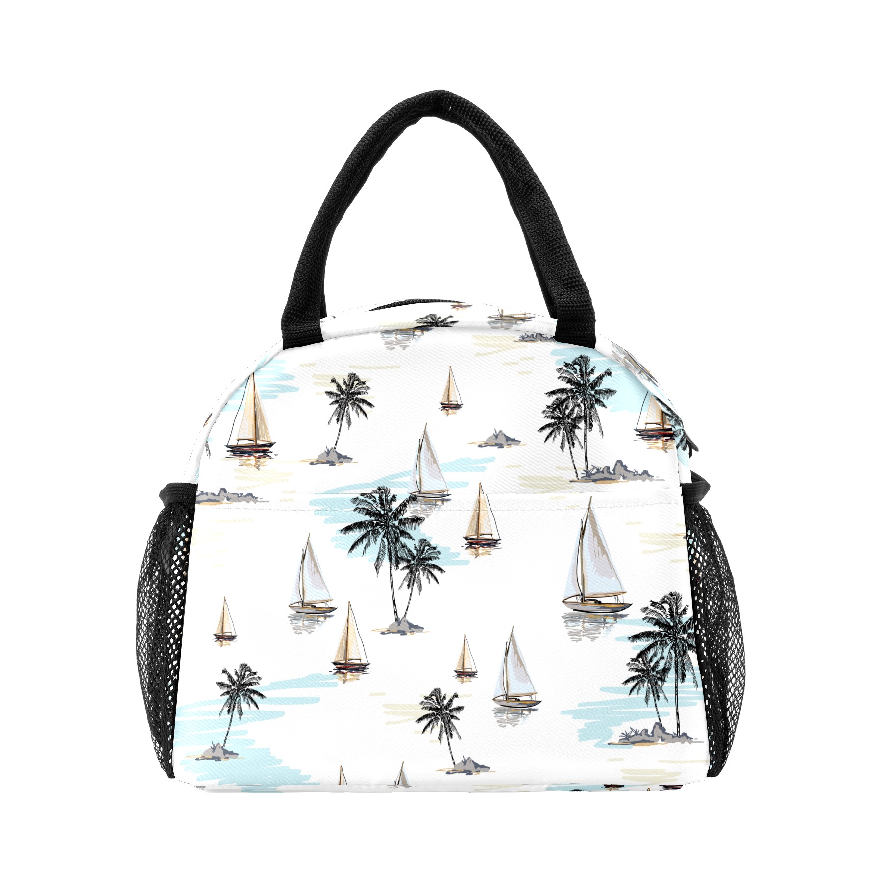 Lunch Bag for Women Men, Retro Sailboat Coconut Tree Pattern Insulated Reusable Lunch Box Thermal Cooler Tote Bag for Work Picnic Hiking Travel Beach