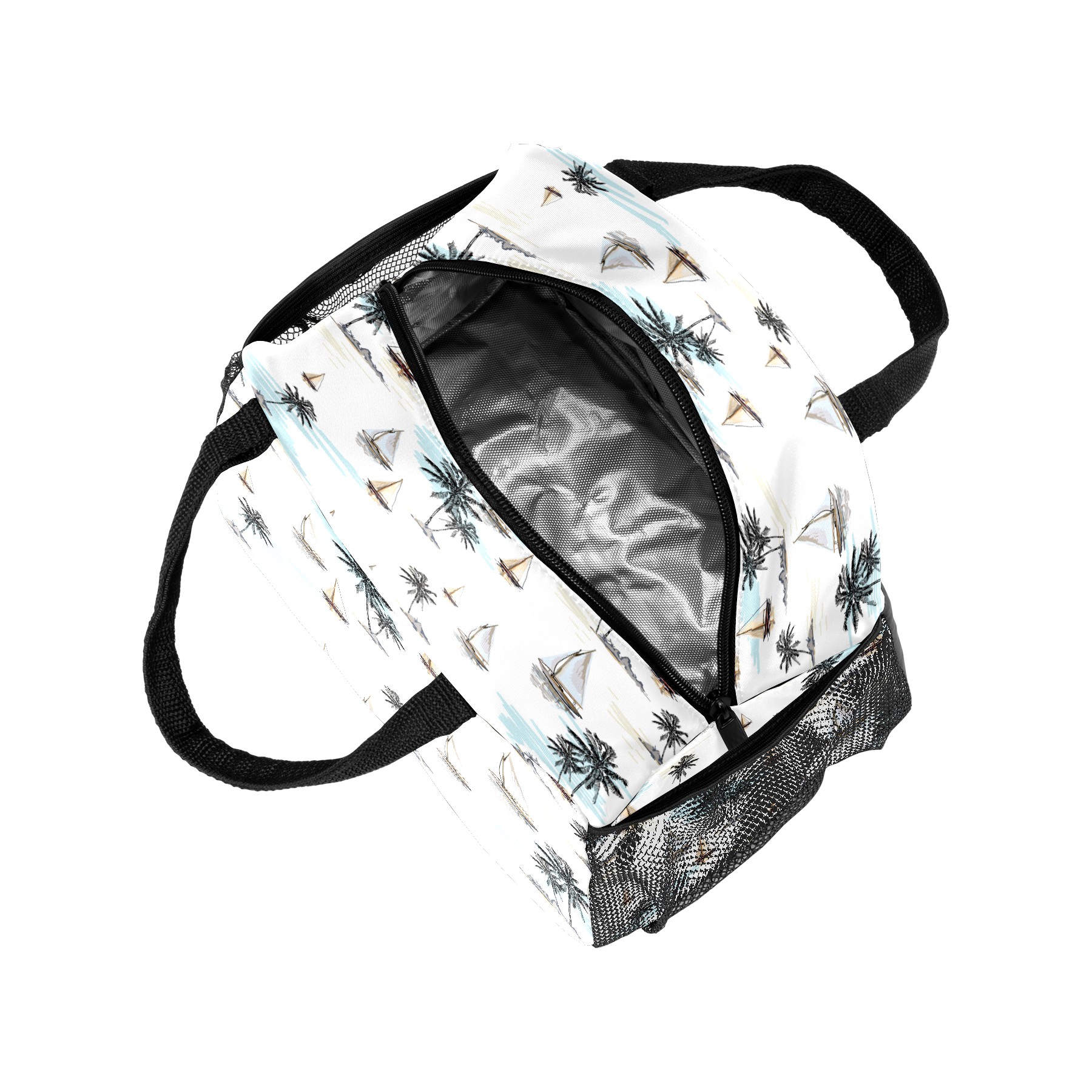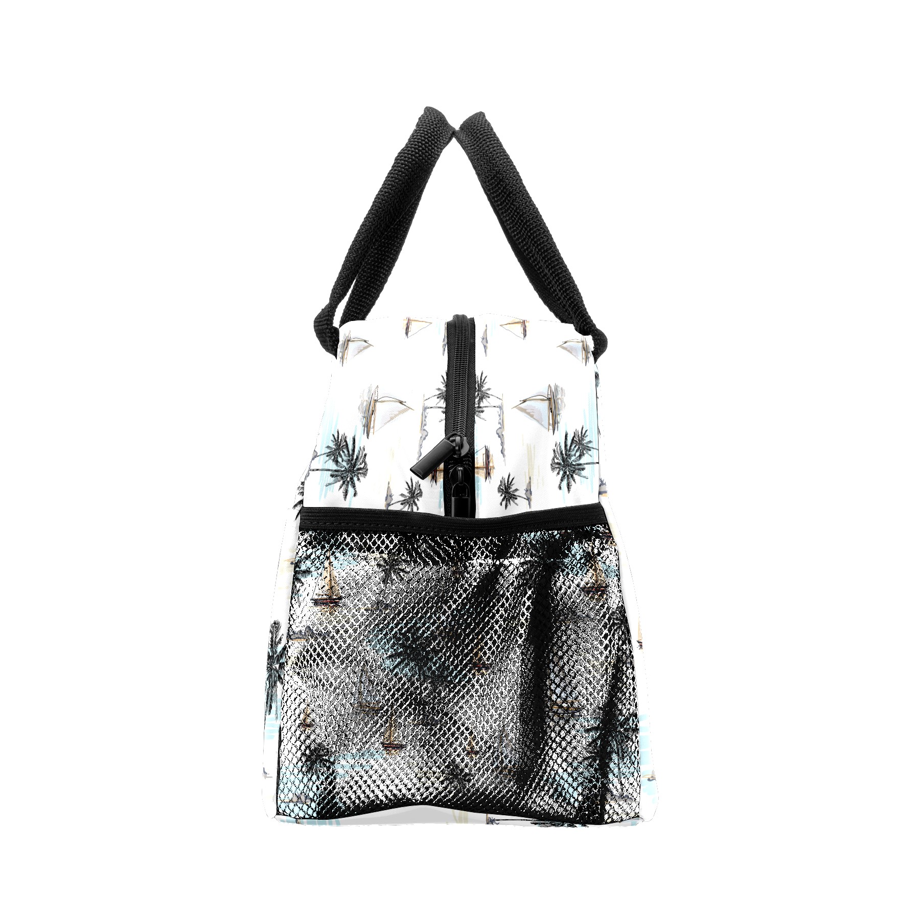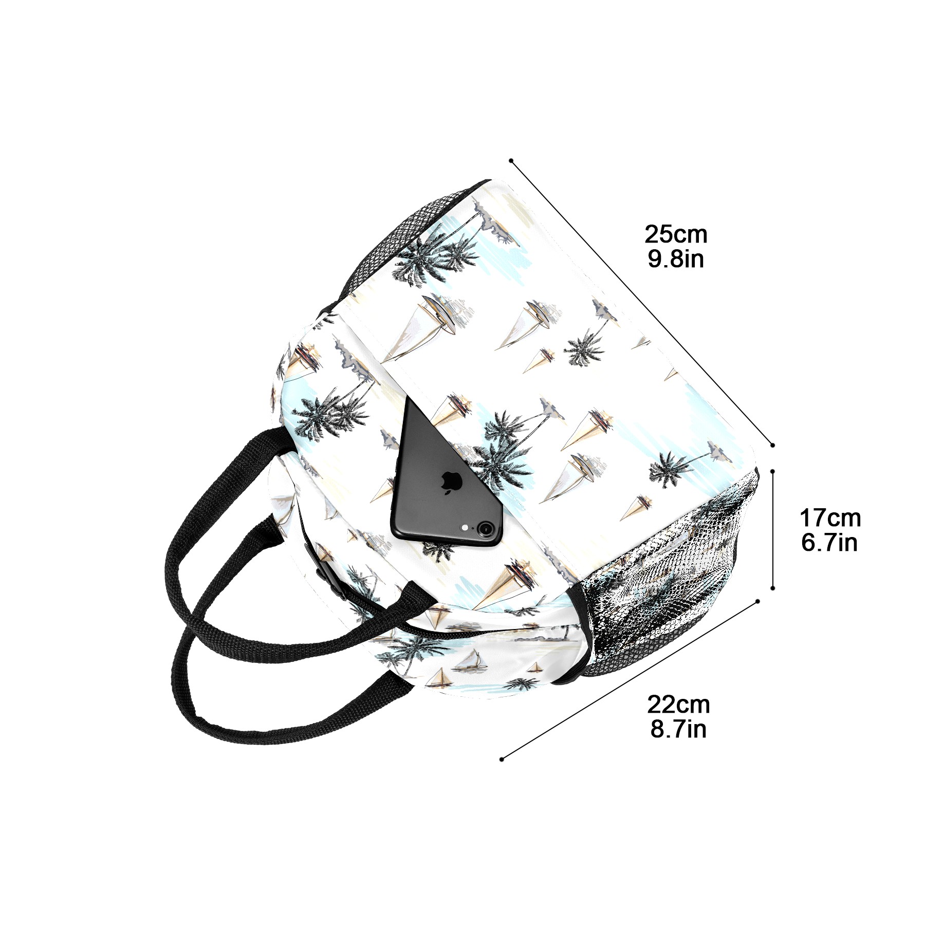 Lunch Bag for Women Men, Retro Sailboat Coconut Tree Pattern Insulated Reusable Lunch Box Thermal Cooler Tote Bag for Work Picnic Hiking Travel Beach