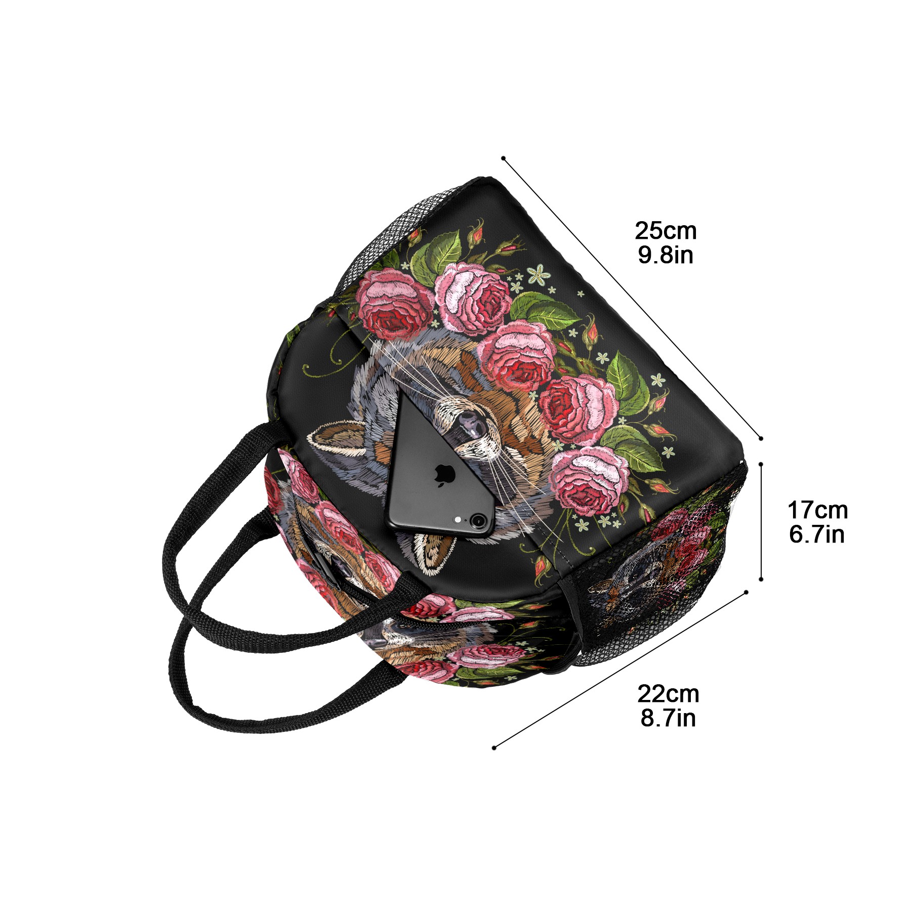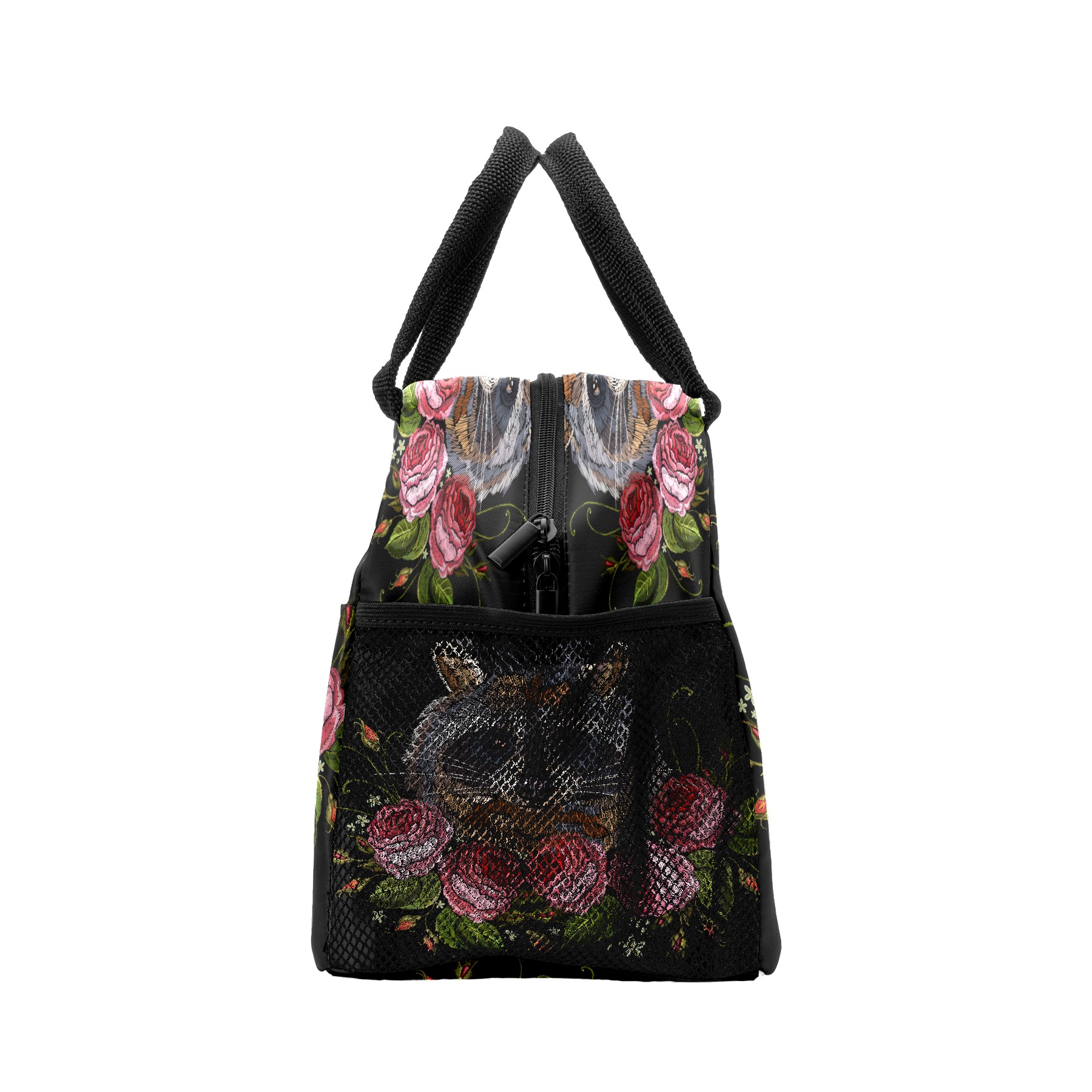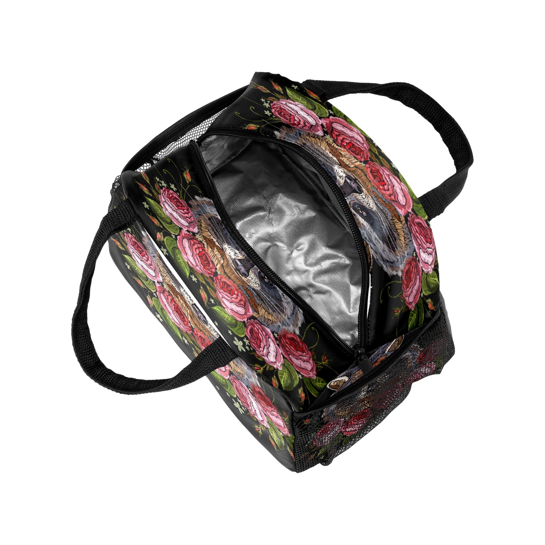 Lunch Bag for Women Men, Retro Embroidery Raccoon Rose Insulated Reusable Lunch Box Thermal Cooler Tote Bag for Work Picnic Hiking Travel Beach