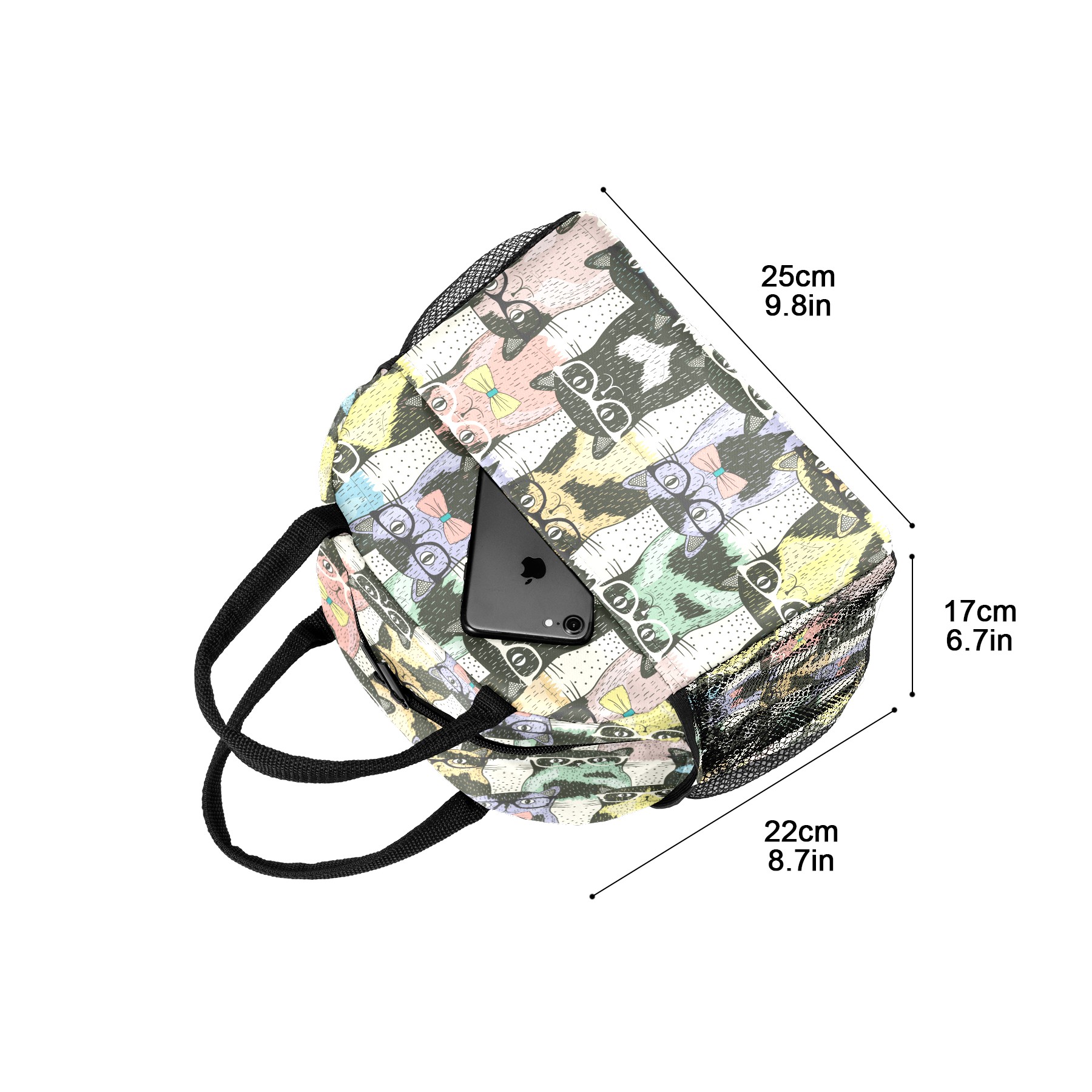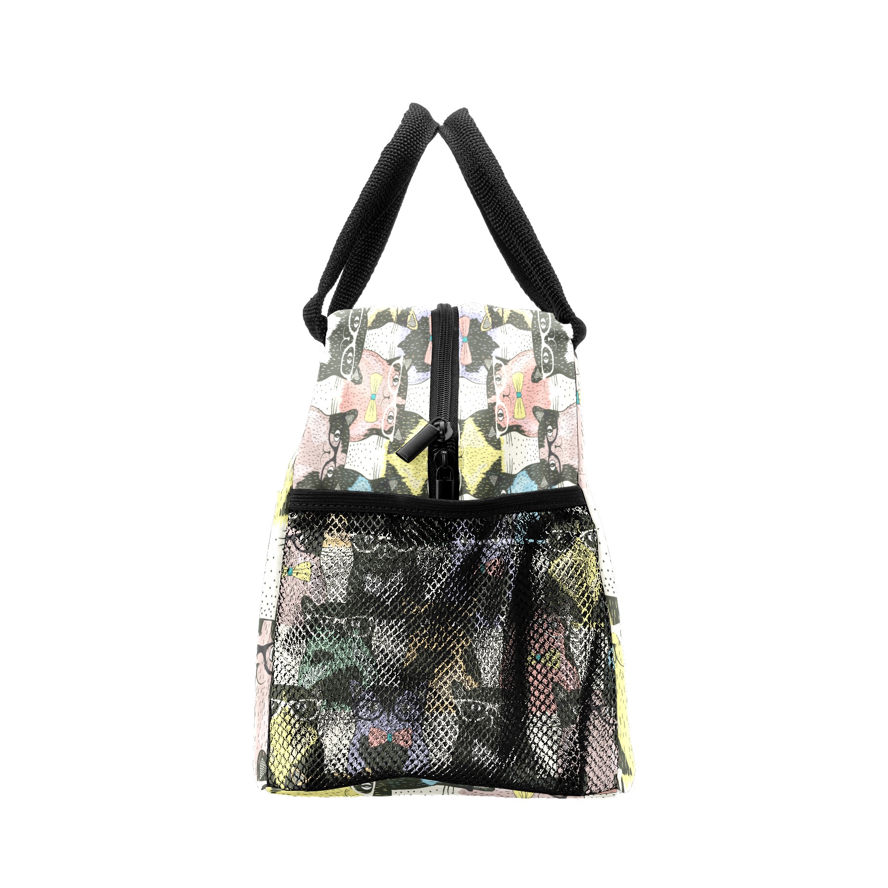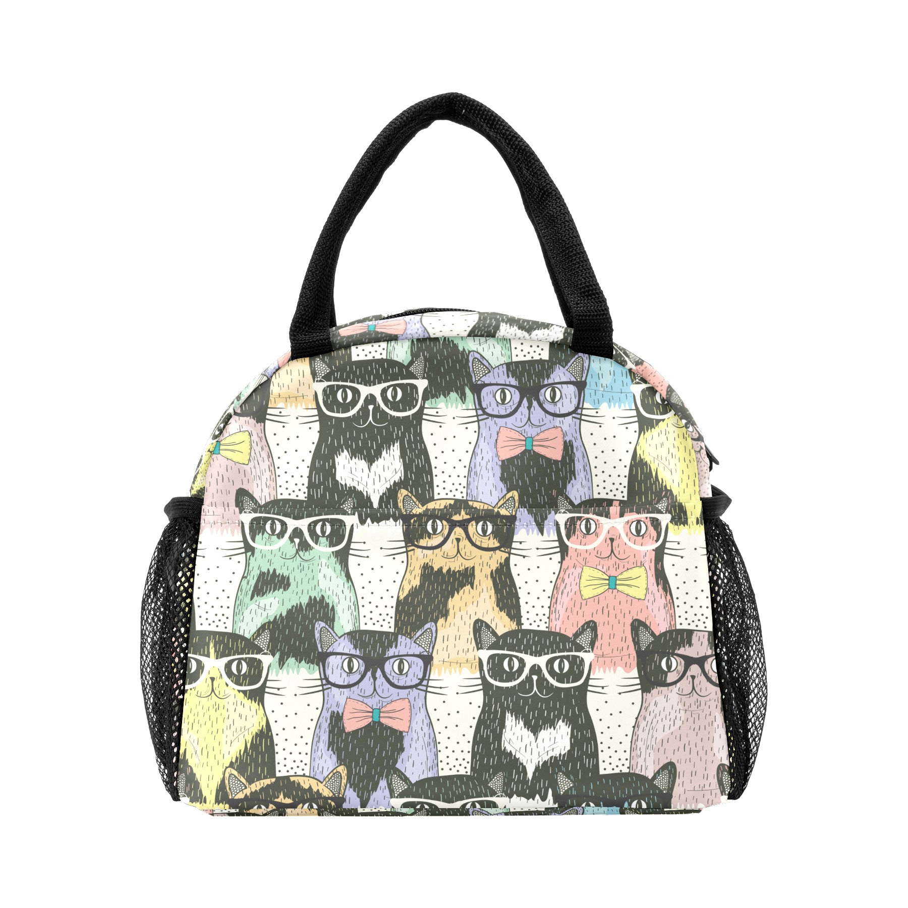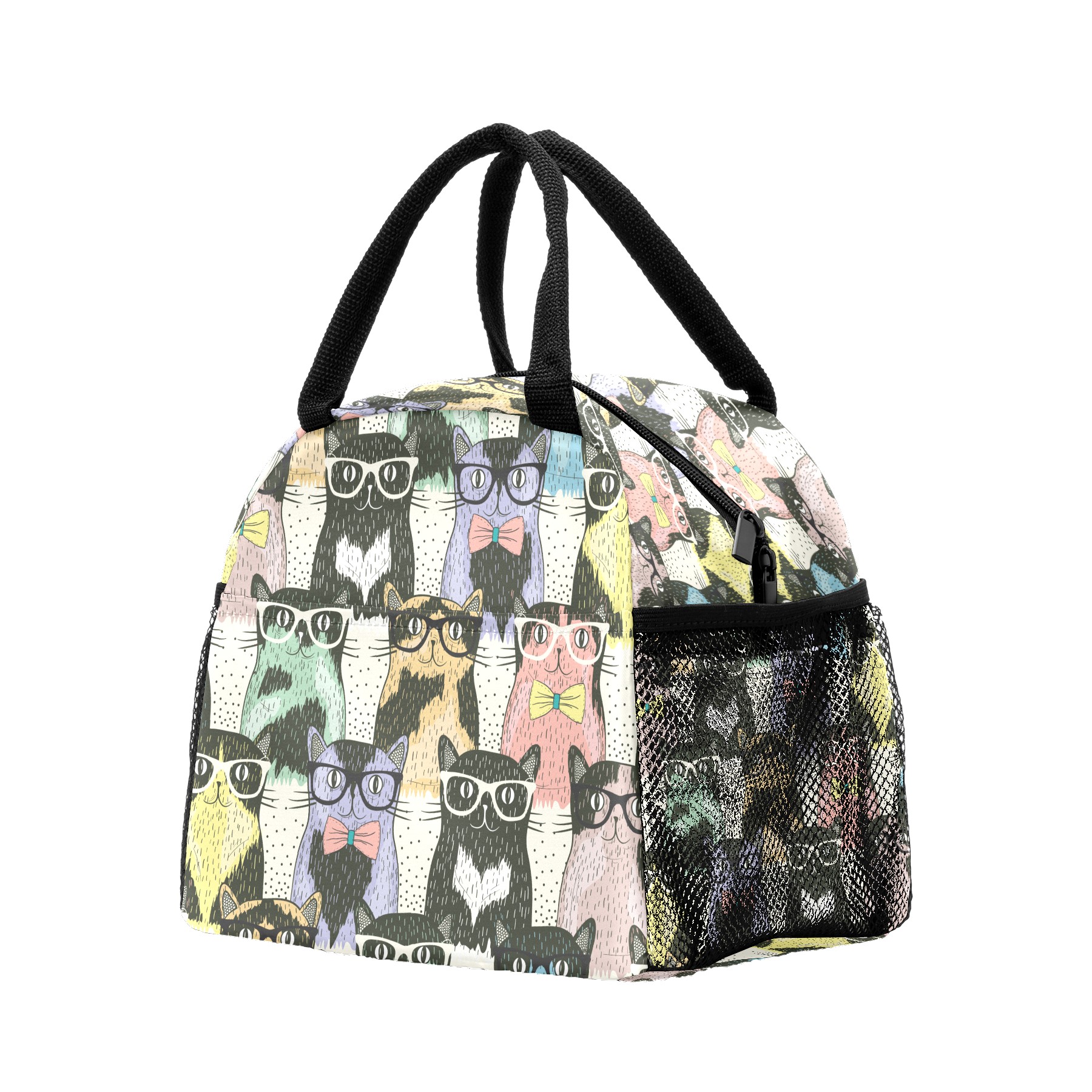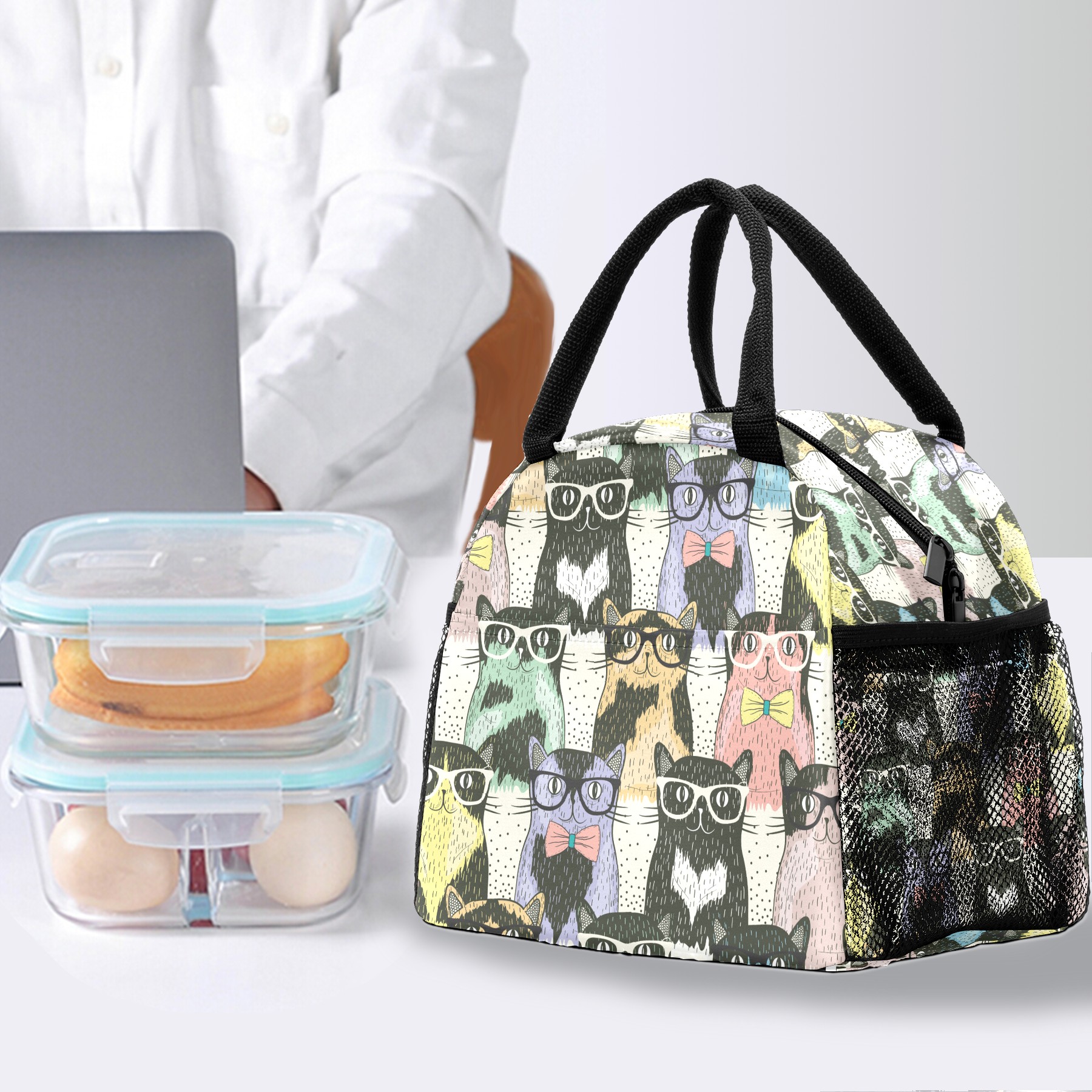 Lunch Bag for Women Men, Retro Funny Cartoon Cat Pattern Insulated Reusable Lunch Box Thermal Cooler Tote Bag for Work Picnic Hiking Travel Beach