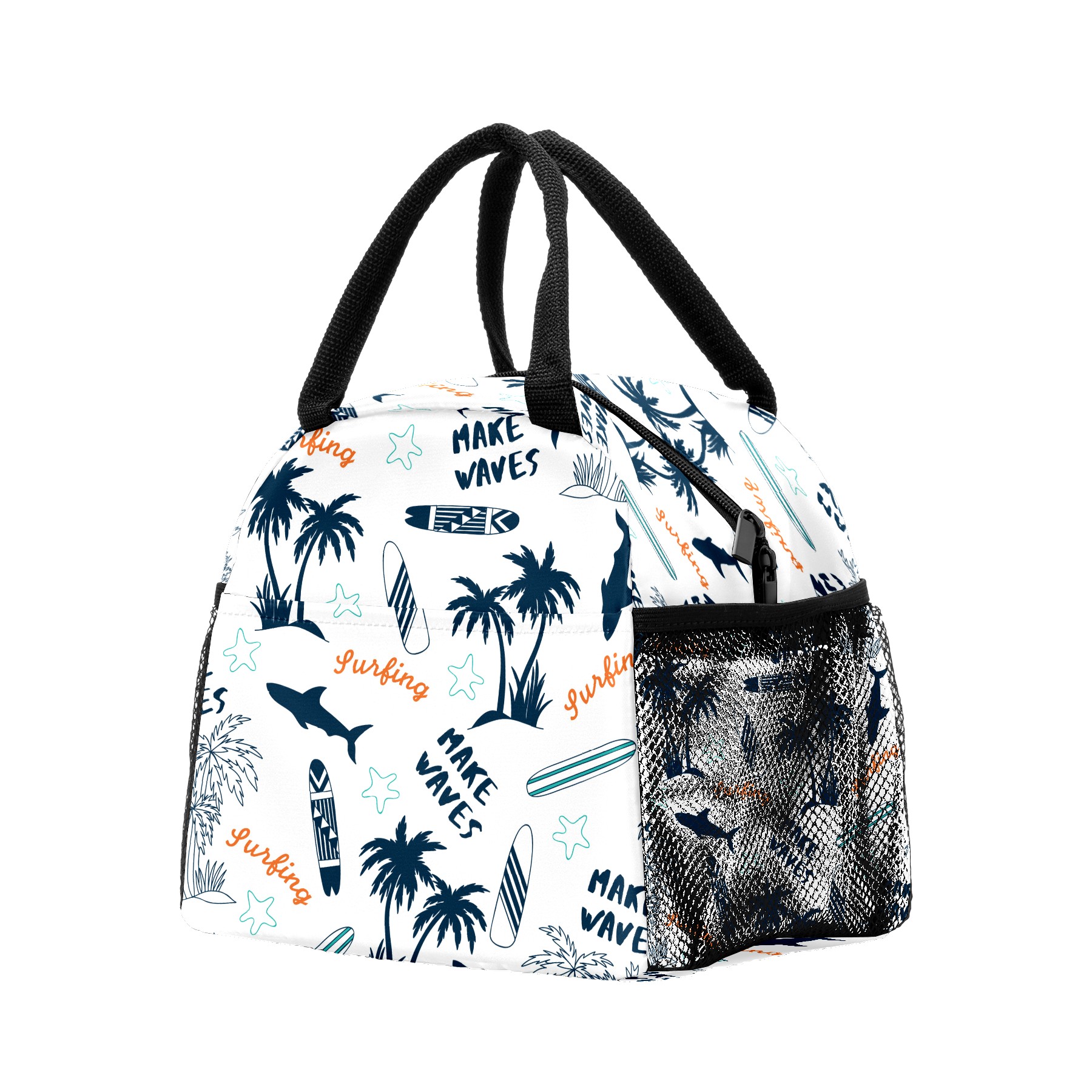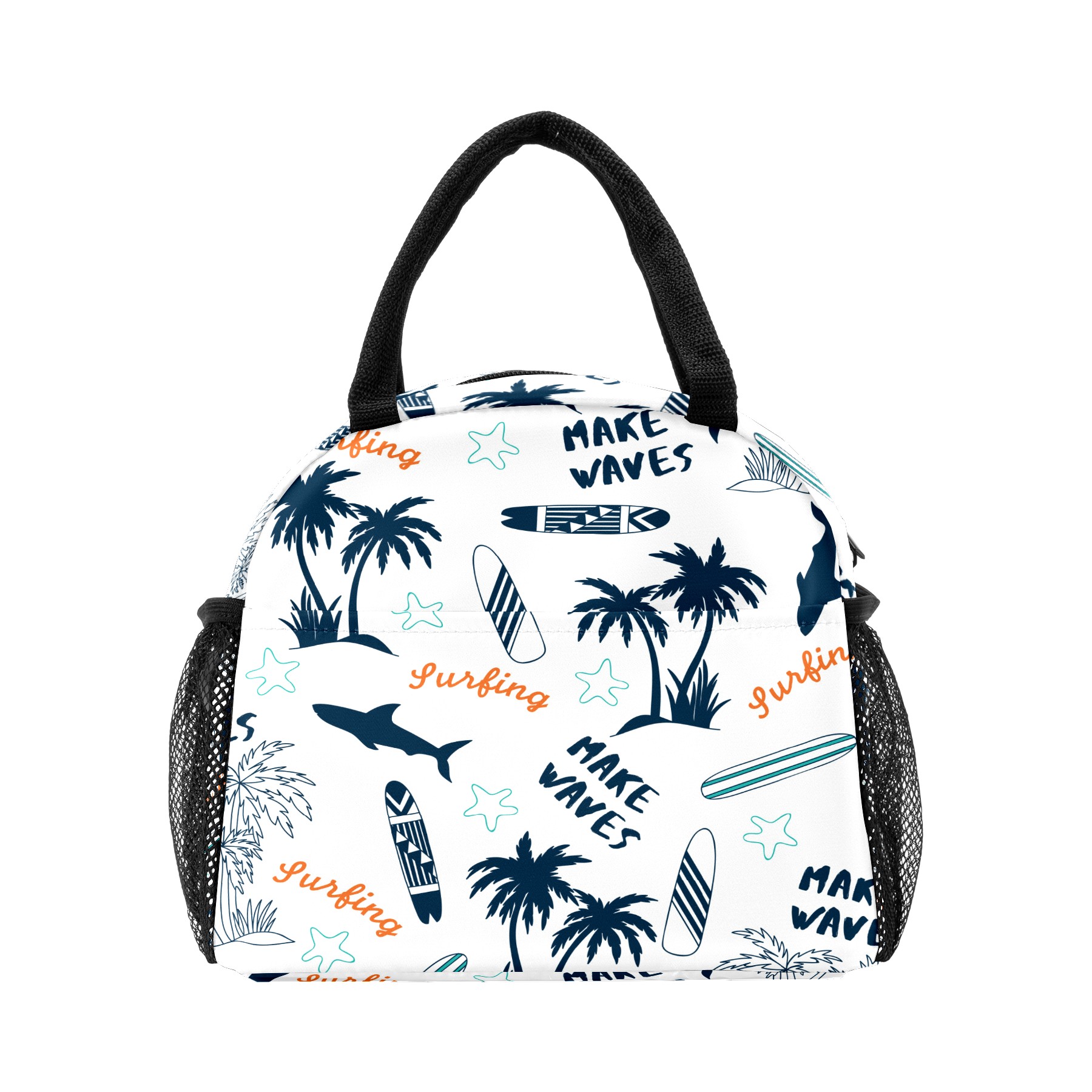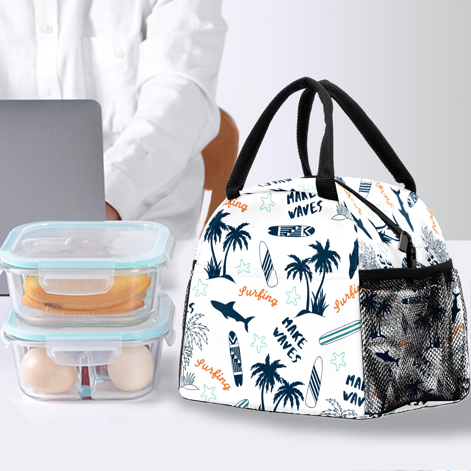 Lunch Bag for Women Men, Retro Beach Topical Shark Coconut Tree Insulated Reusable Lunch Box Thermal Cooler Tote Bag for Work Picnic Hiking Travel Beach