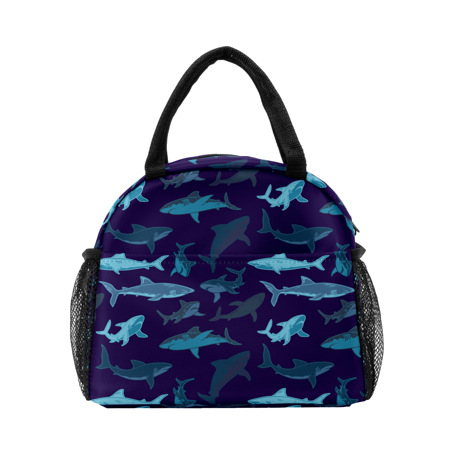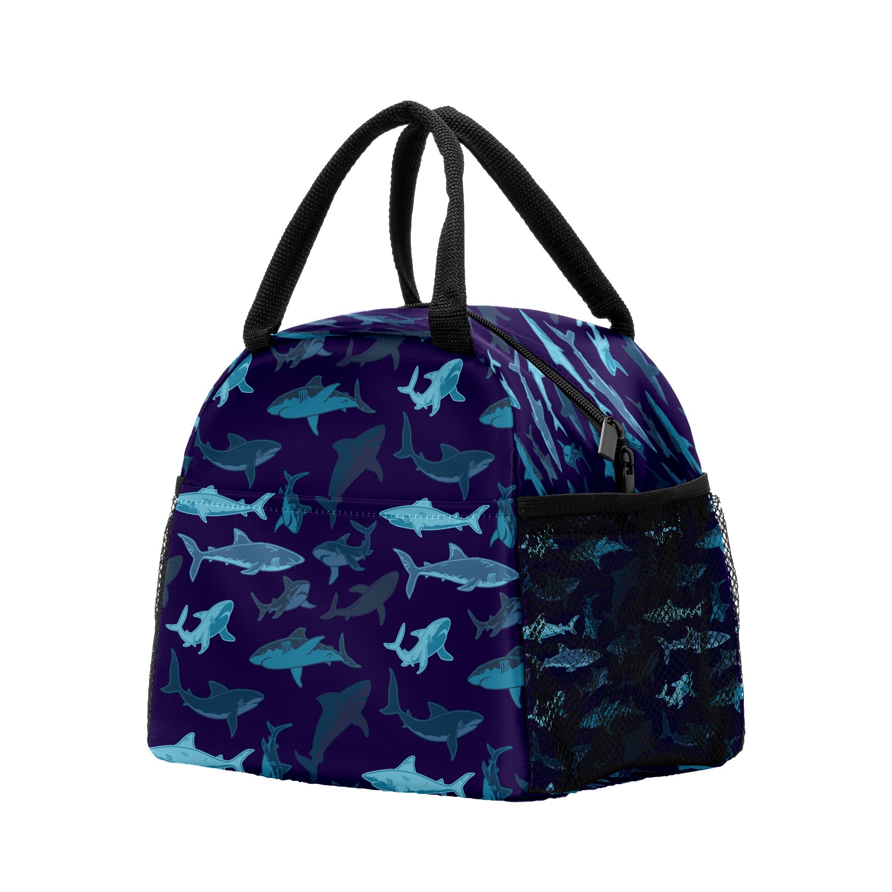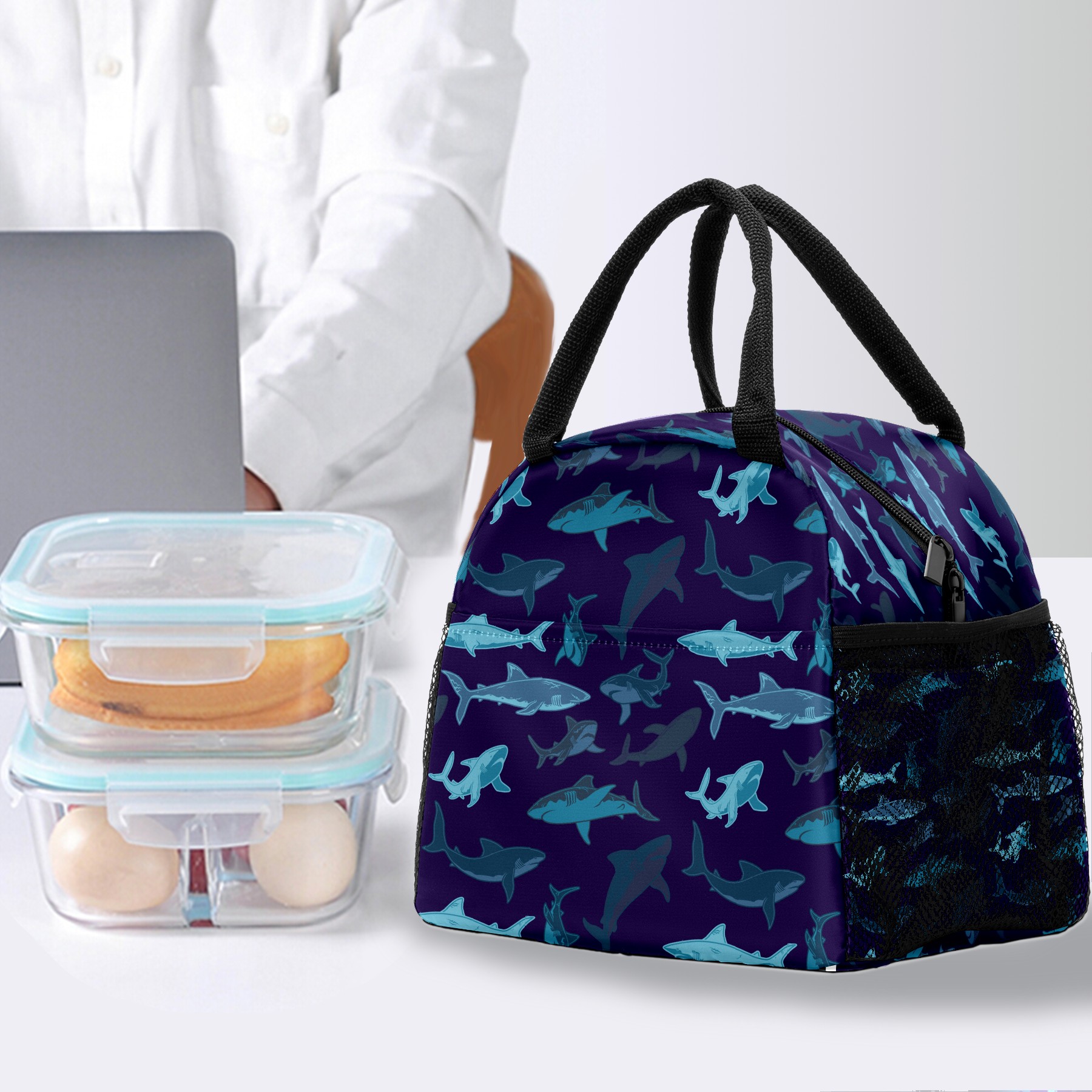 Lunch Bag for Women Men, Retro Blue Shark Pattern Insulated Reusable Lunch Box Thermal Cooler Tote Bag for Work Picnic Hiking Travel Beach