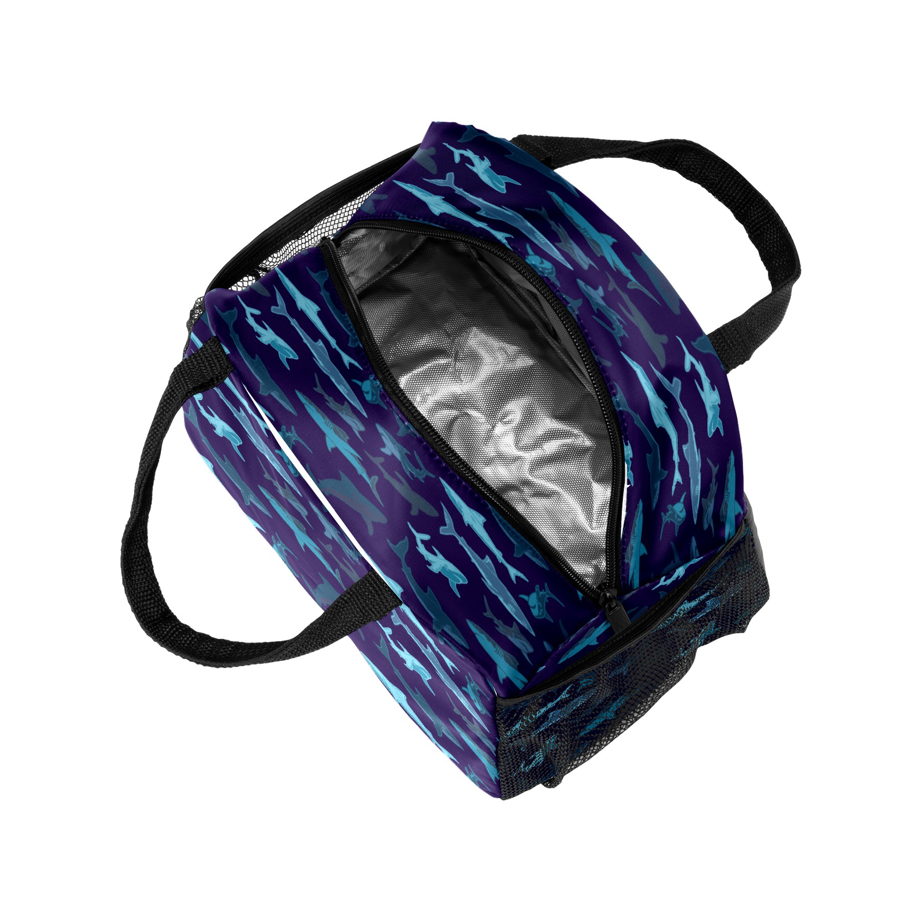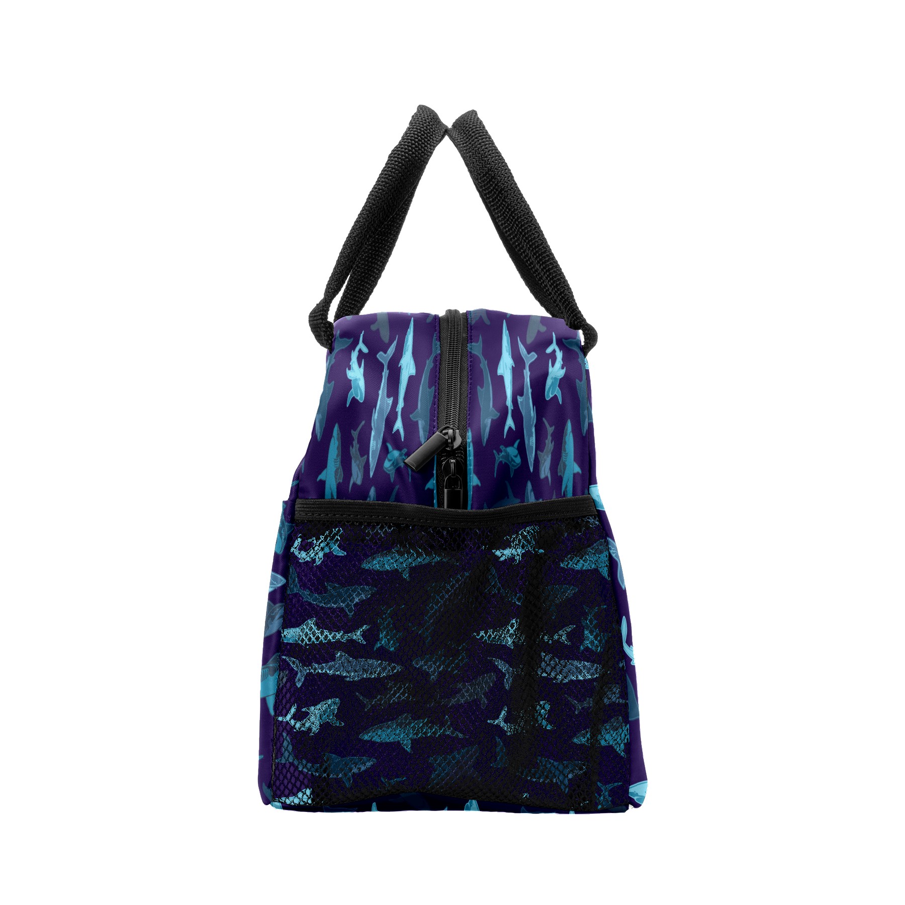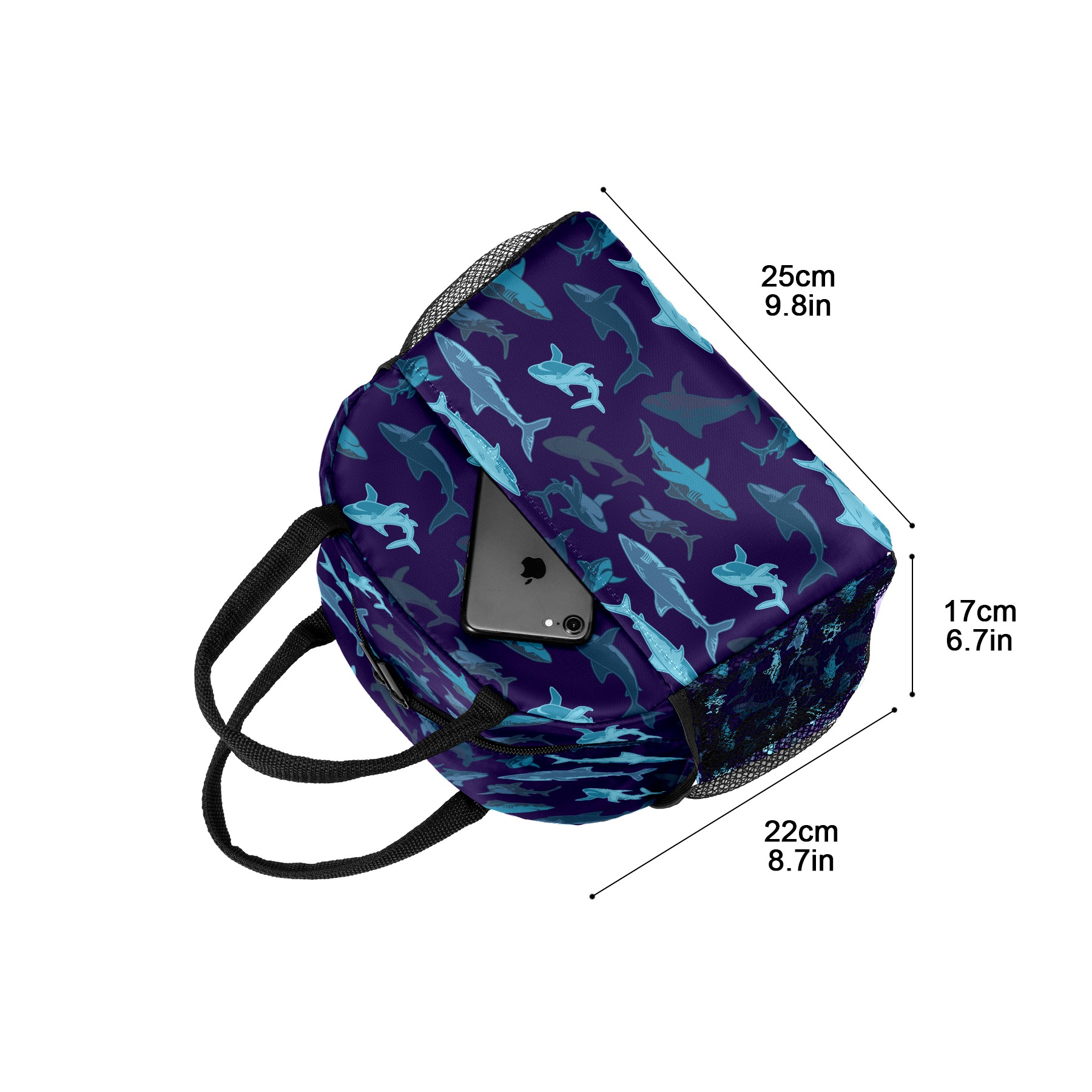 Lunch Bag for Women Men, Retro Blue Shark Pattern Insulated Reusable Lunch Box Thermal Cooler Tote Bag for Work Picnic Hiking Travel Beach