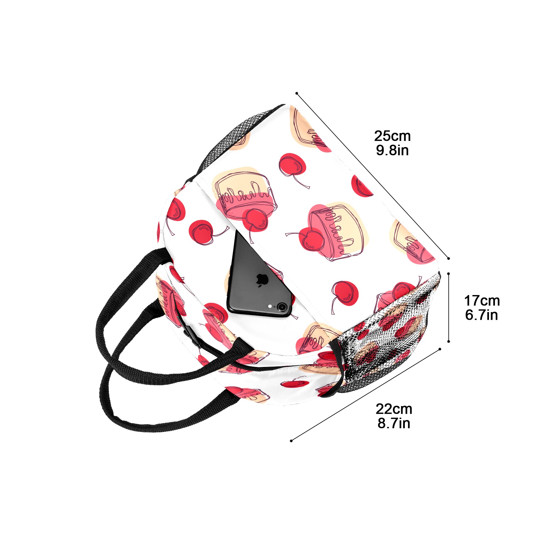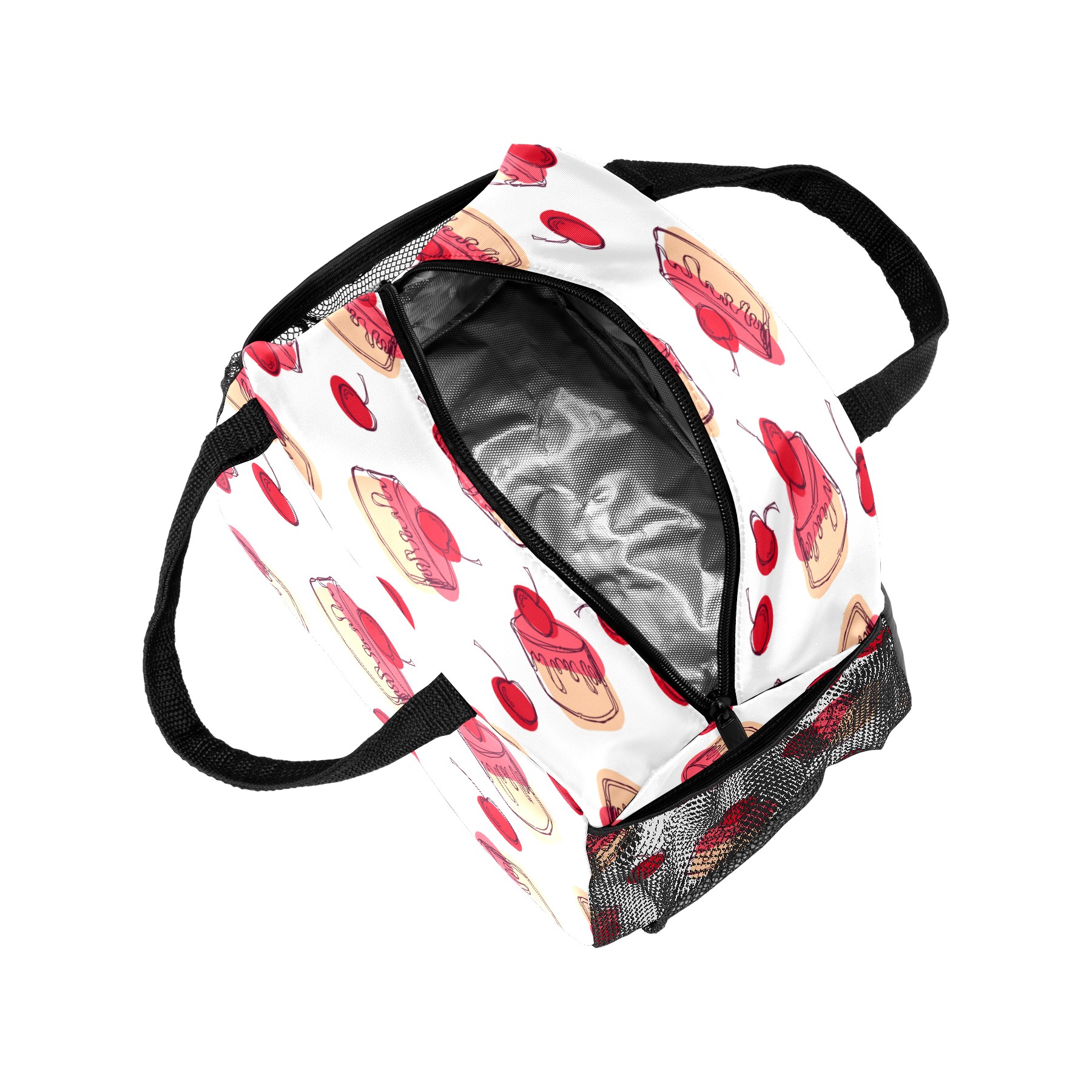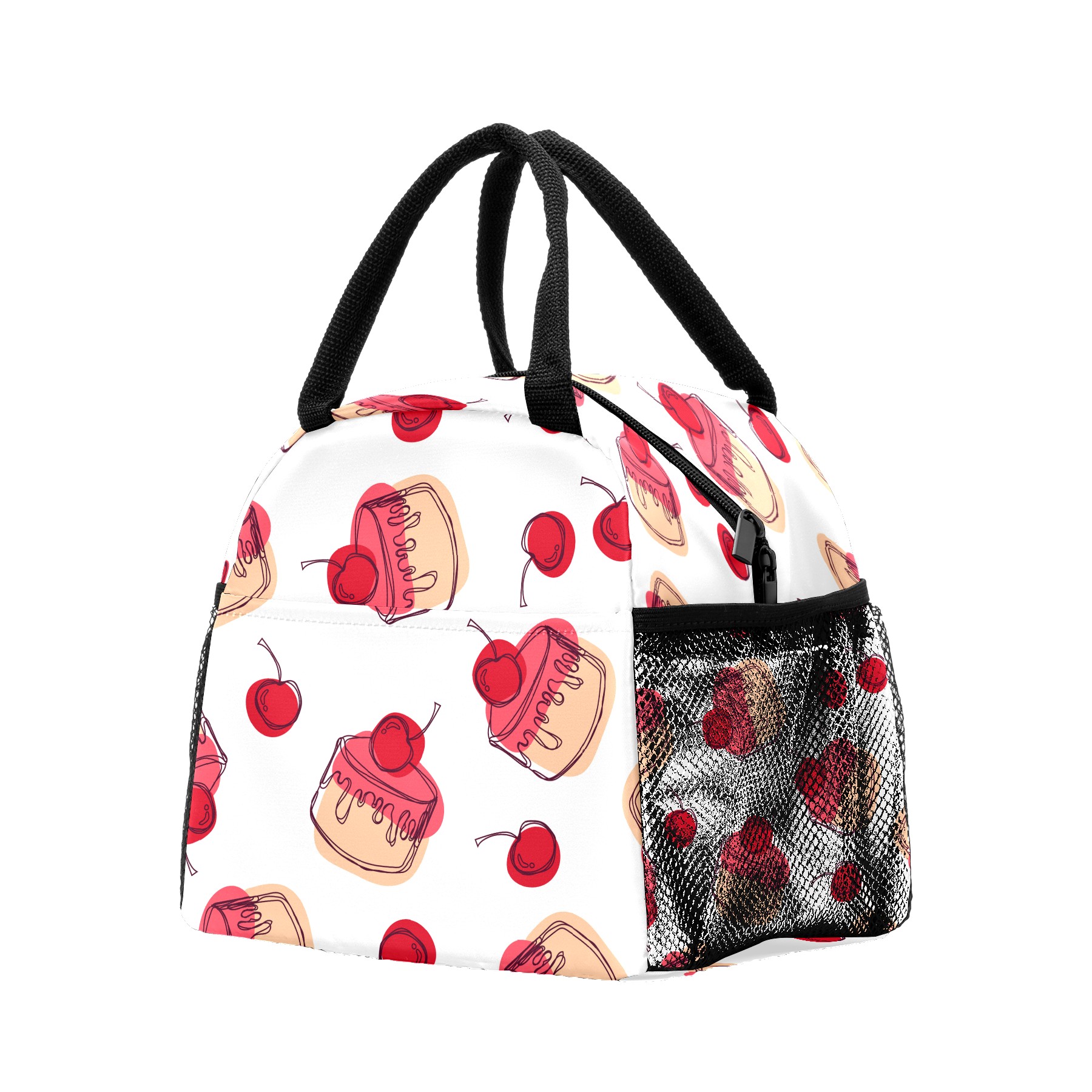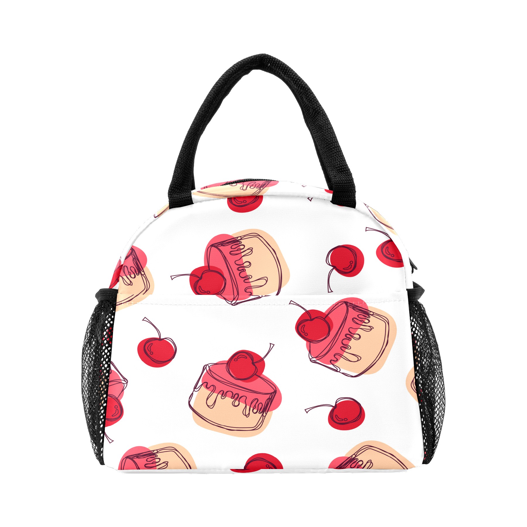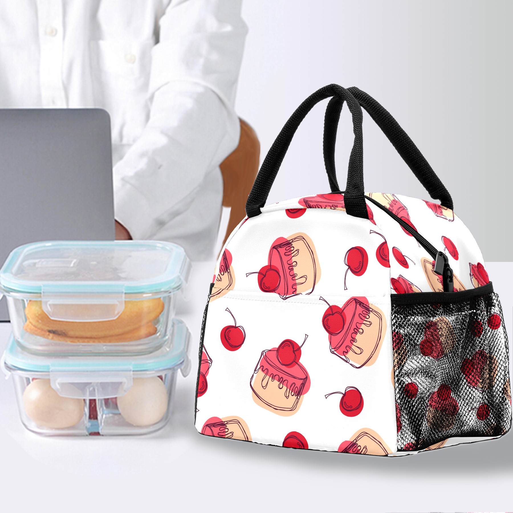 Lunch Bag for Women Men, Red Sugar Cake Cherry Pattern Insulated Reusable Lunch Box Thermal Cooler Tote Bag for Work Picnic Hiking Travel Beach