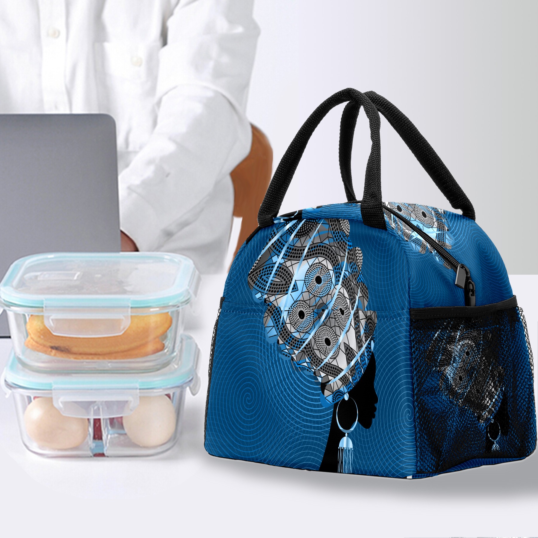 Lunch Bag for Women Men, Portrait Beautiful African Woman Insulated Reusable Lunch Box Thermal Cooler Tote Bag for Work Picnic Hiking Travel Beach