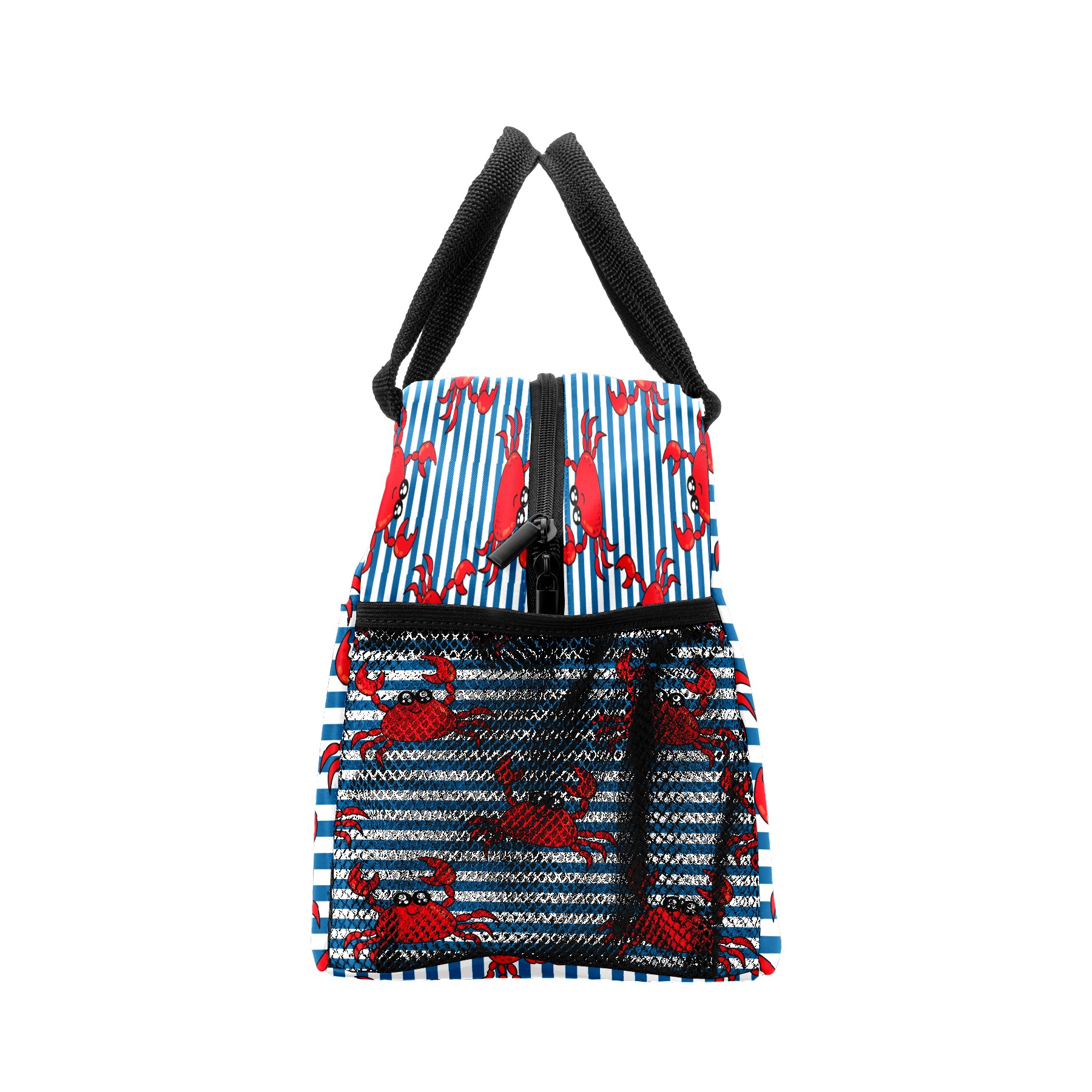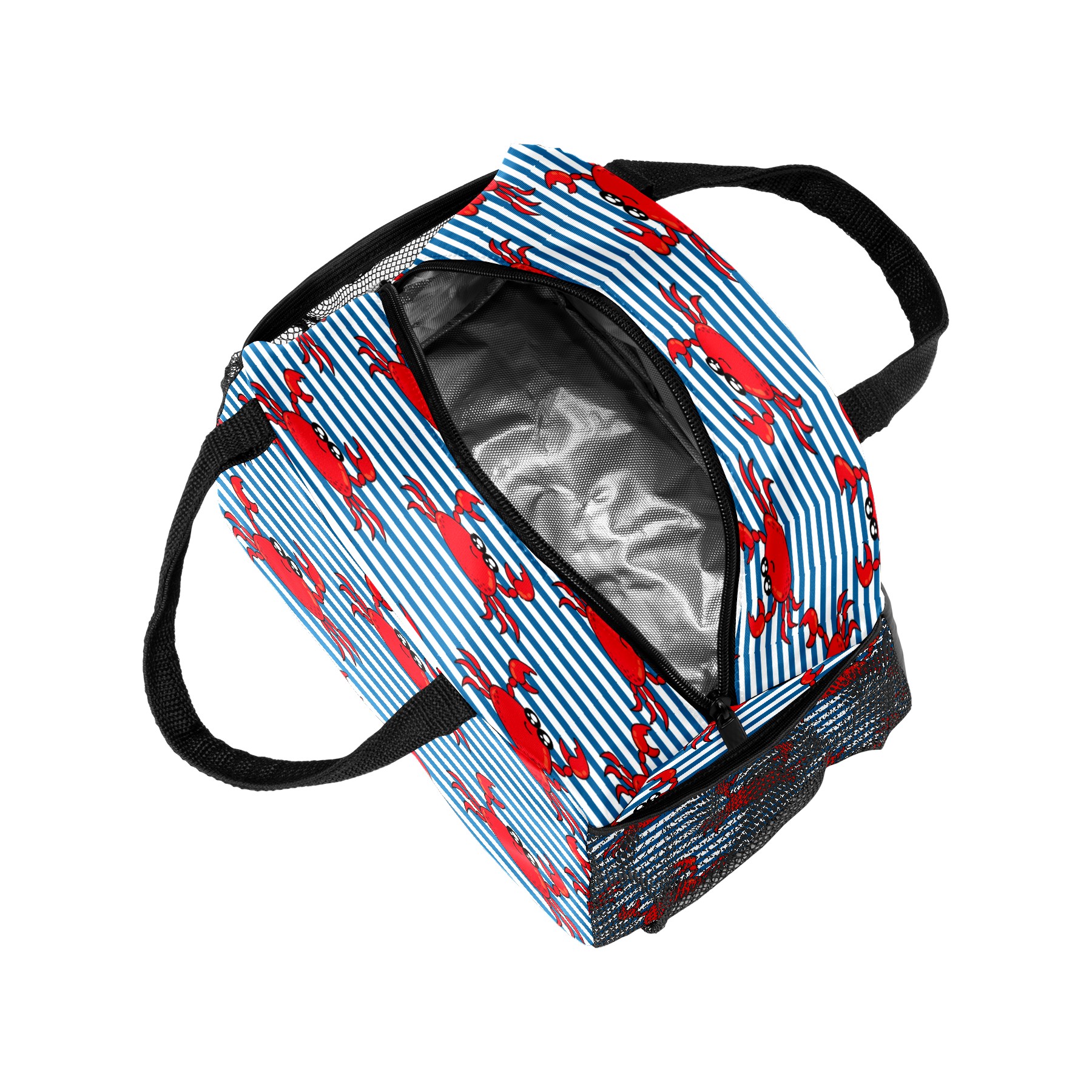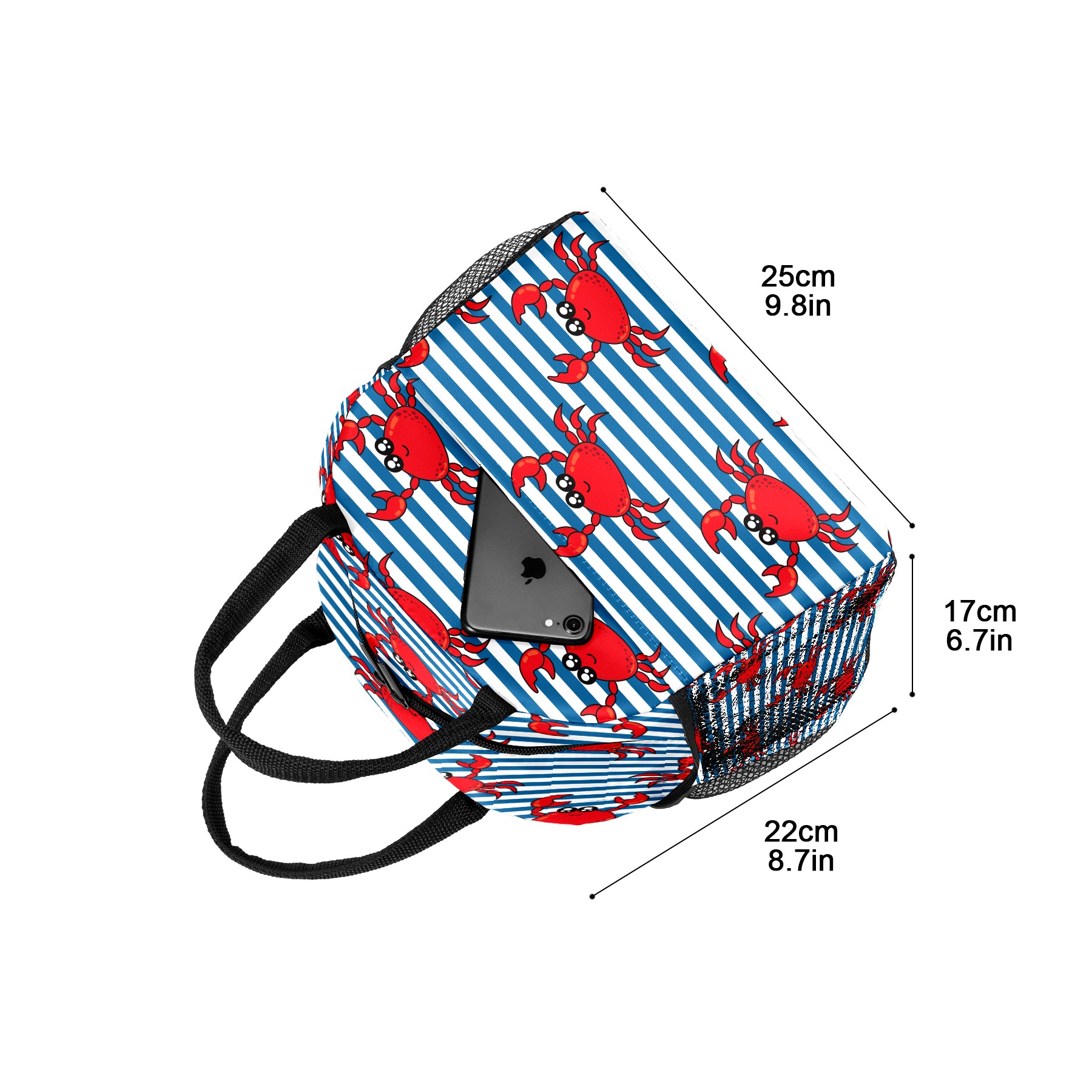 Lunch Bag for Women Men, Red Crabs Blue White Stipes Insulated Reusable Lunch Box Thermal Cooler Tote Bag for Work Picnic Hiking Travel Beach
