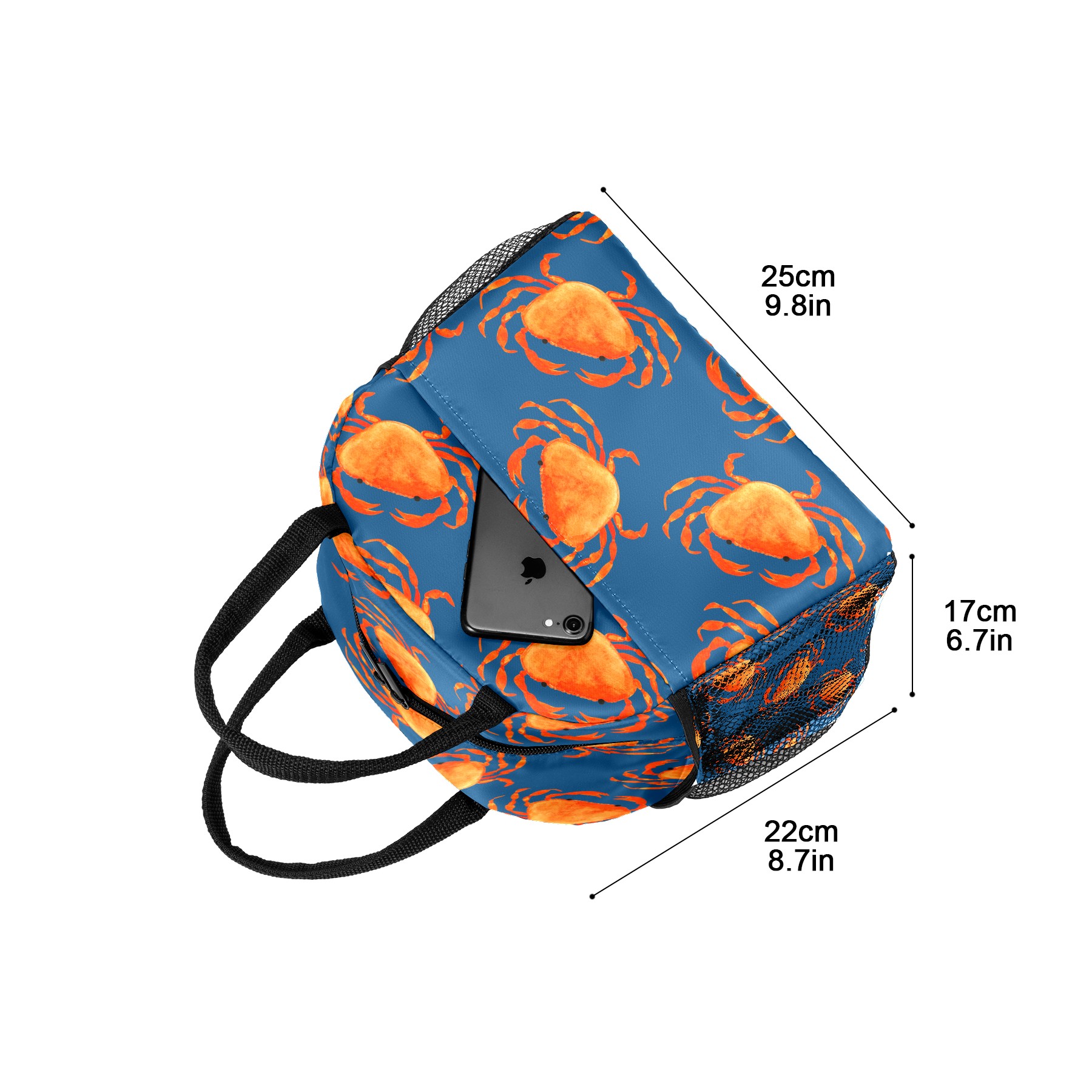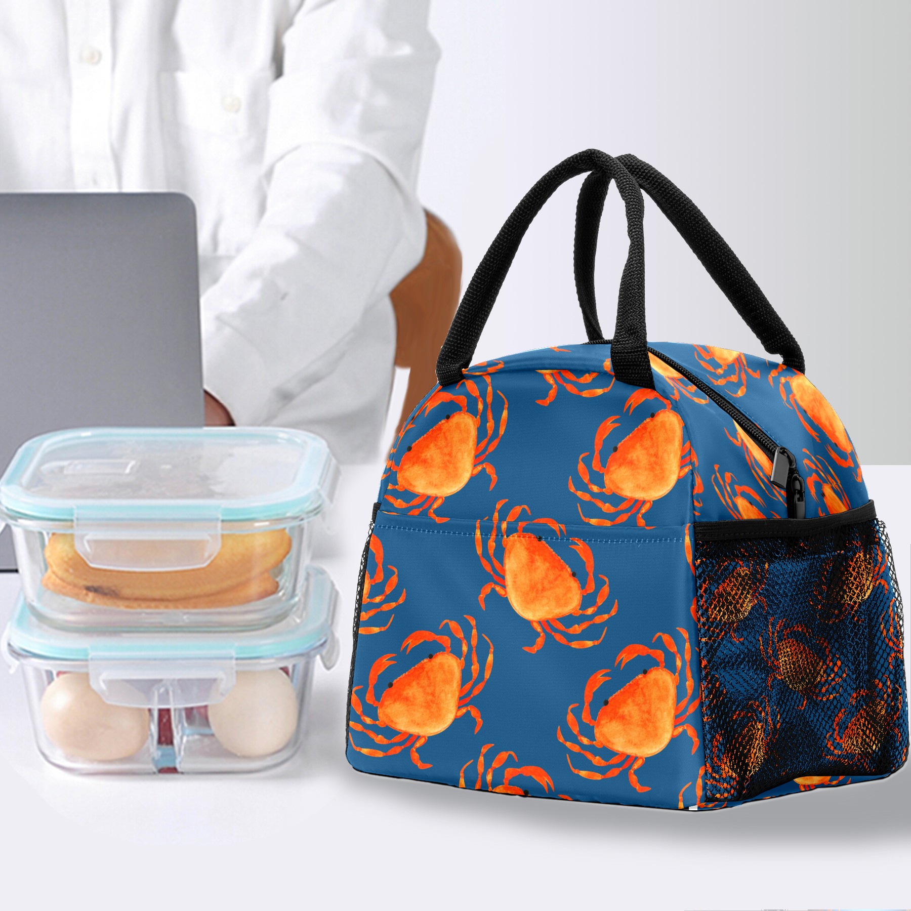 Lunch Bag for Women Men, Marine Crab Pattern Insulated Reusable Lunch Box Thermal Cooler Tote Bag for Work Picnic Hiking Travel Beach
