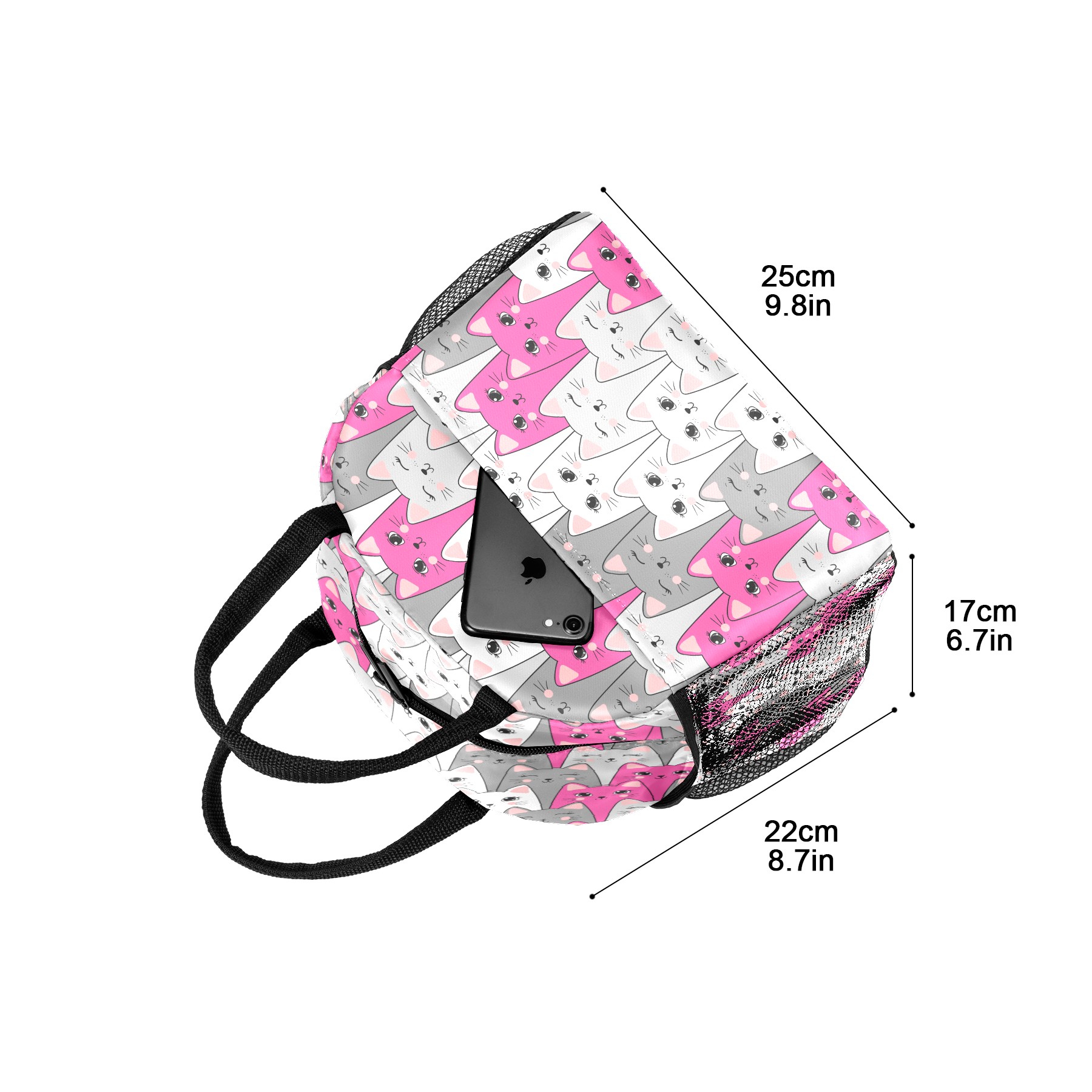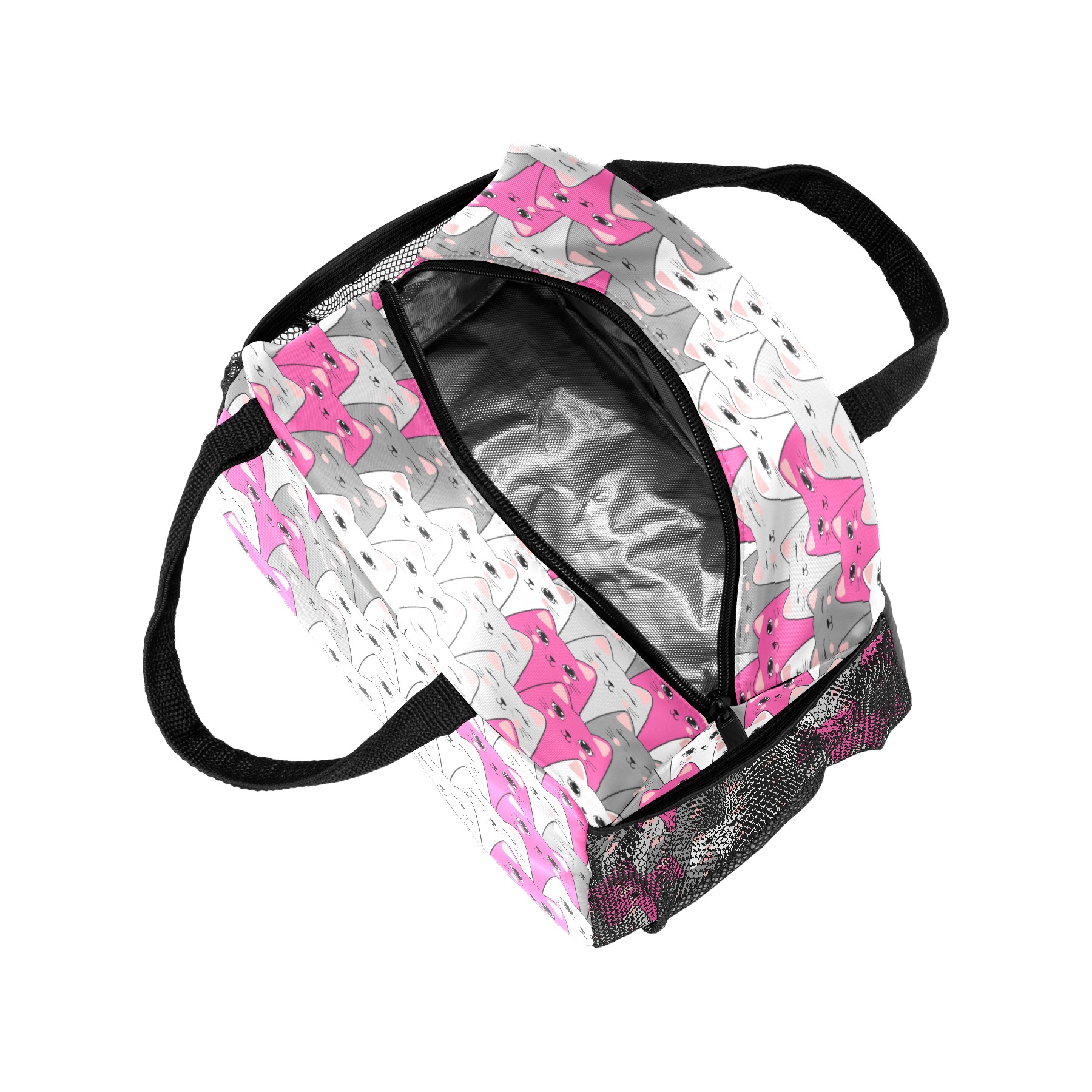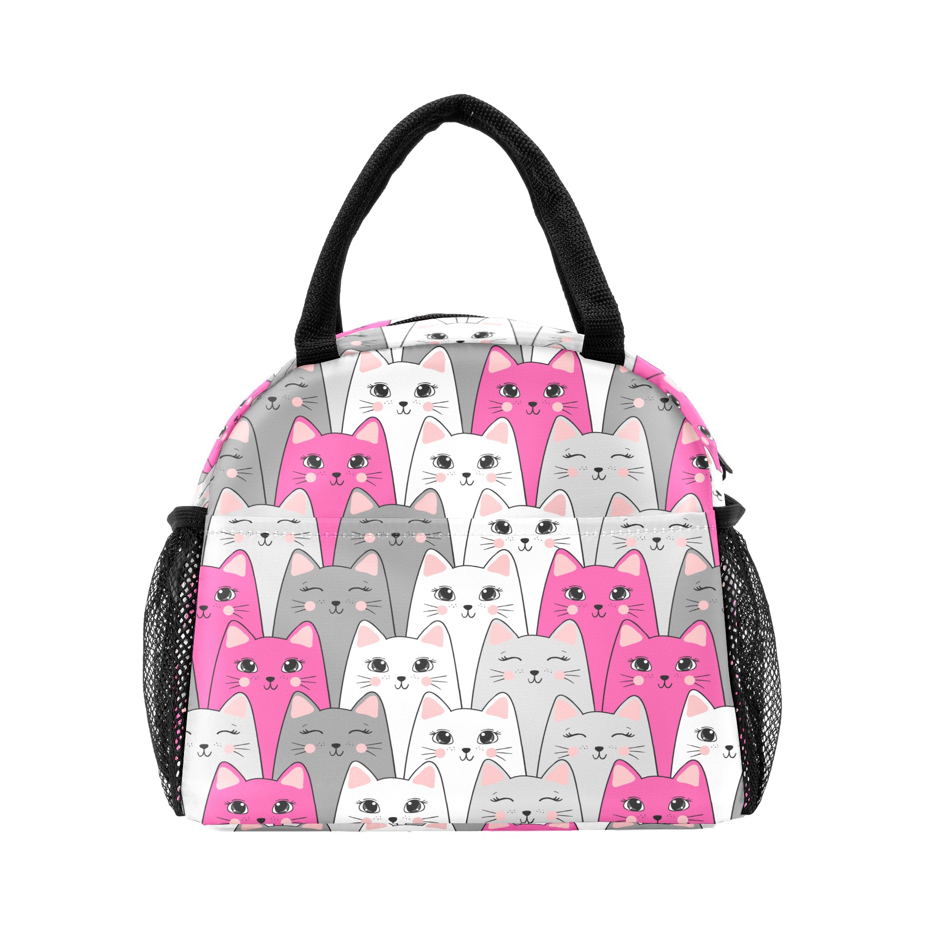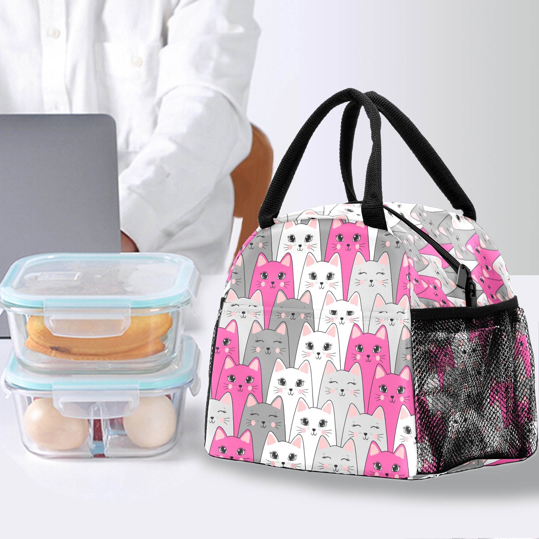 Lunch Bag for Women Men, Modern Cartoon Cat Pattern Insulated Reusable Lunch Box Thermal Cooler Tote Bag for Work Picnic Hiking Travel Beach