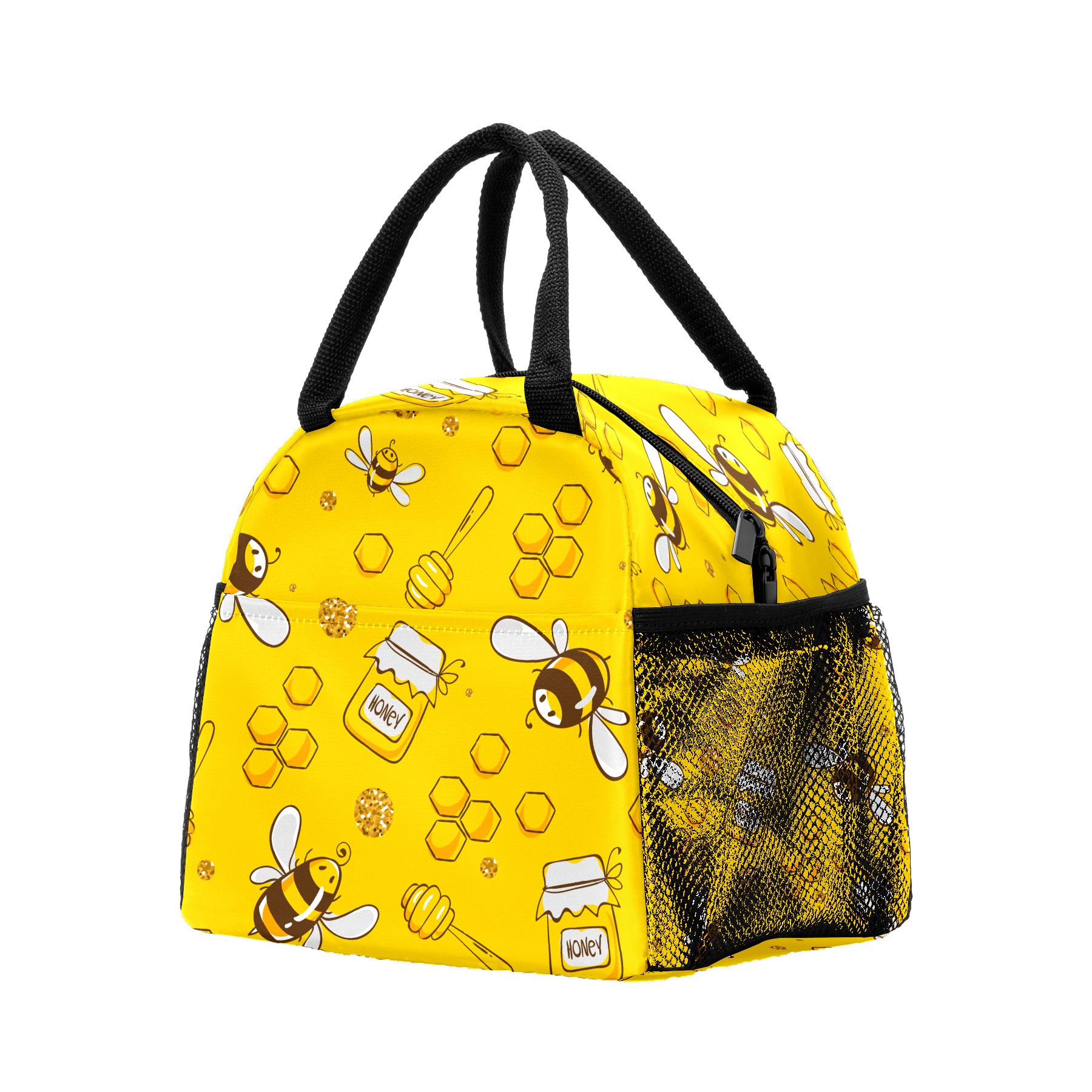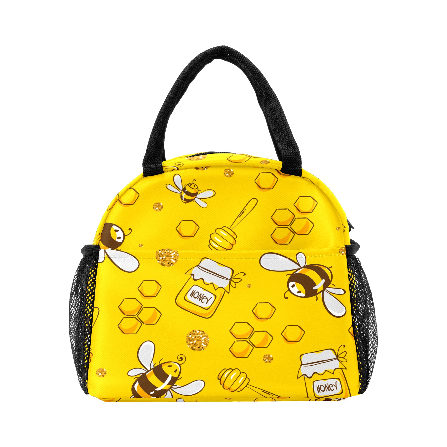 Lunch Bag for Women Men, Honey Bee Pattern Yellow Insulated Reusable Lunch Box Thermal Cooler Tote Bag for Work Picnic Hiking Travel Beach