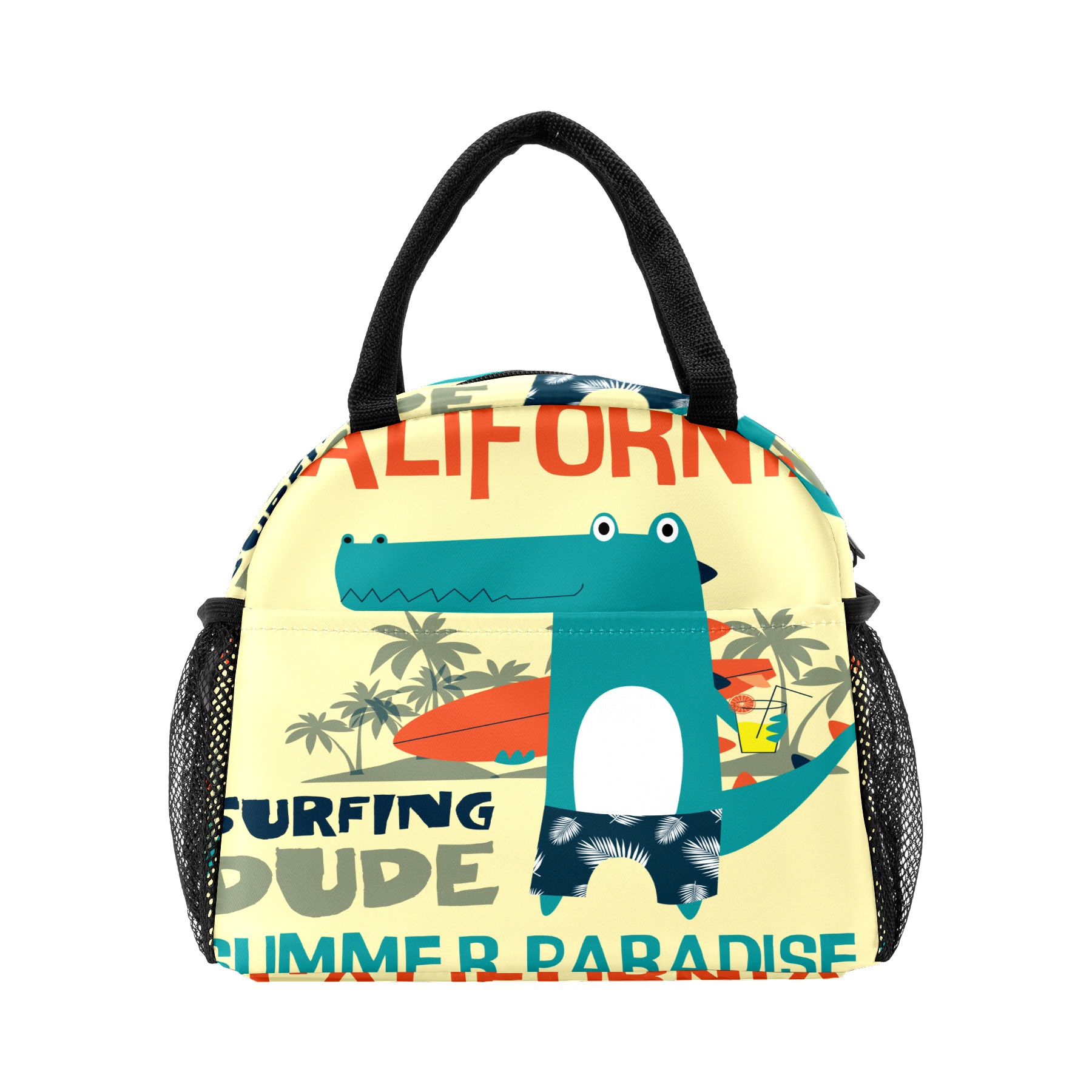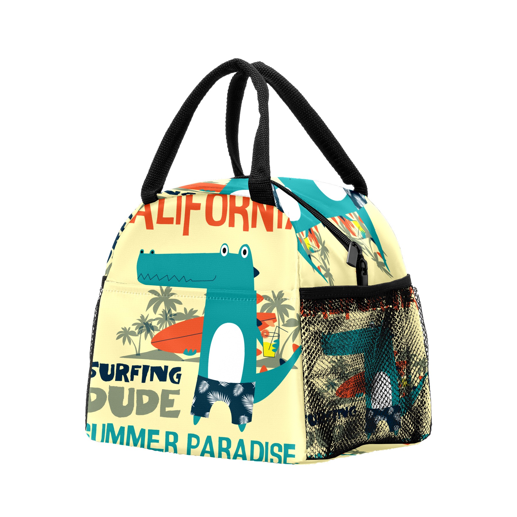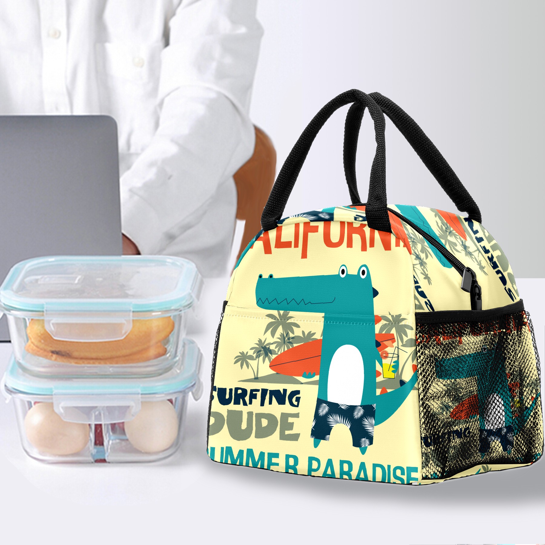 Lunch Bag for Women Men, Funny Summer Dinosaur Skateboard Insulated Reusable Lunch Box Thermal Cooler Tote Bag for Work Picnic Hiking Travel Beach