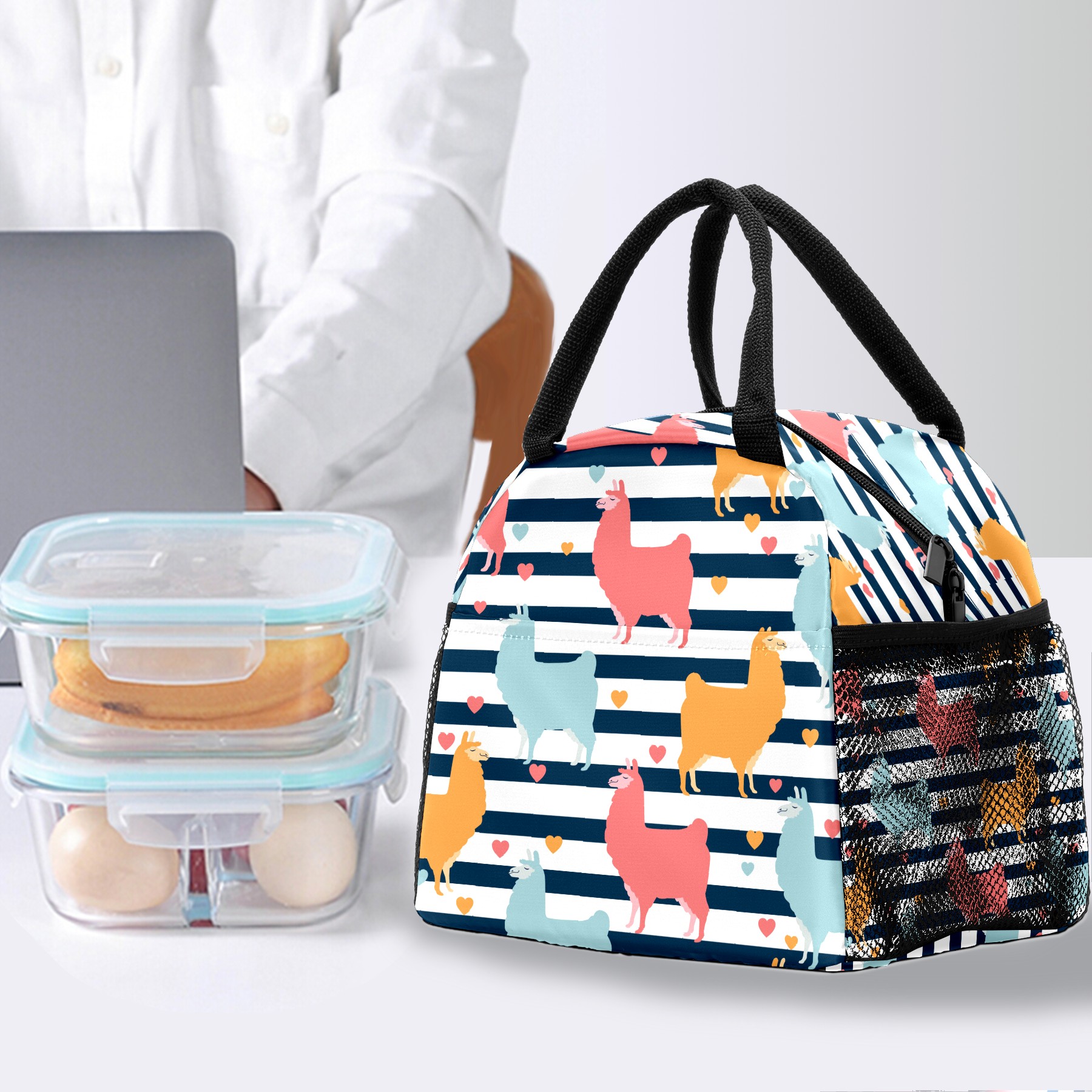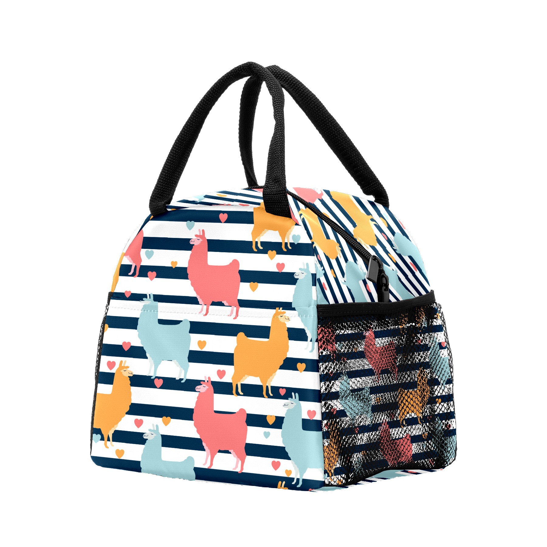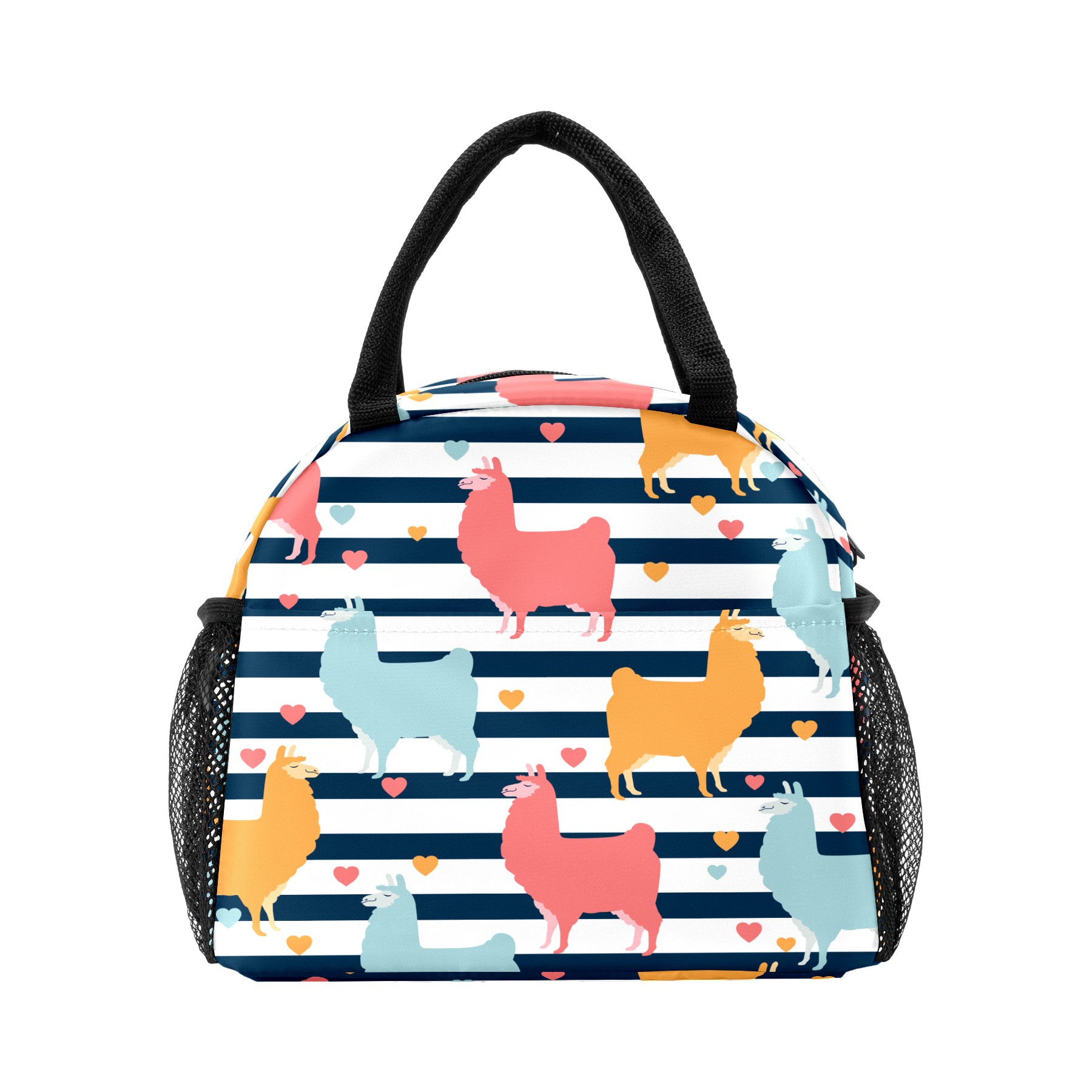 Lunch Bag for Women Men, Llama Alpaca Pattern Stripes Heart Insulated Reusable Lunch Box Thermal Cooler Tote Bag for Work Picnic Hiking Travel Beach