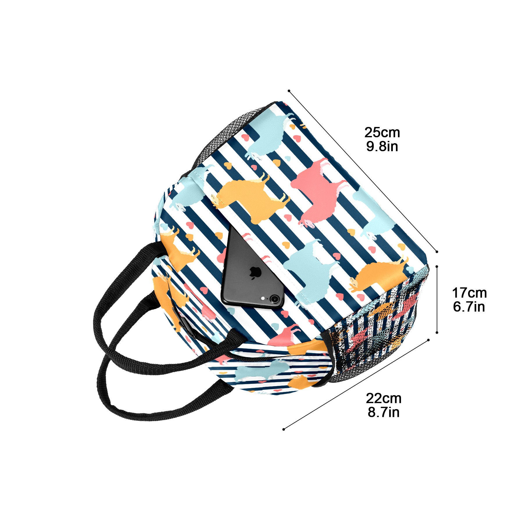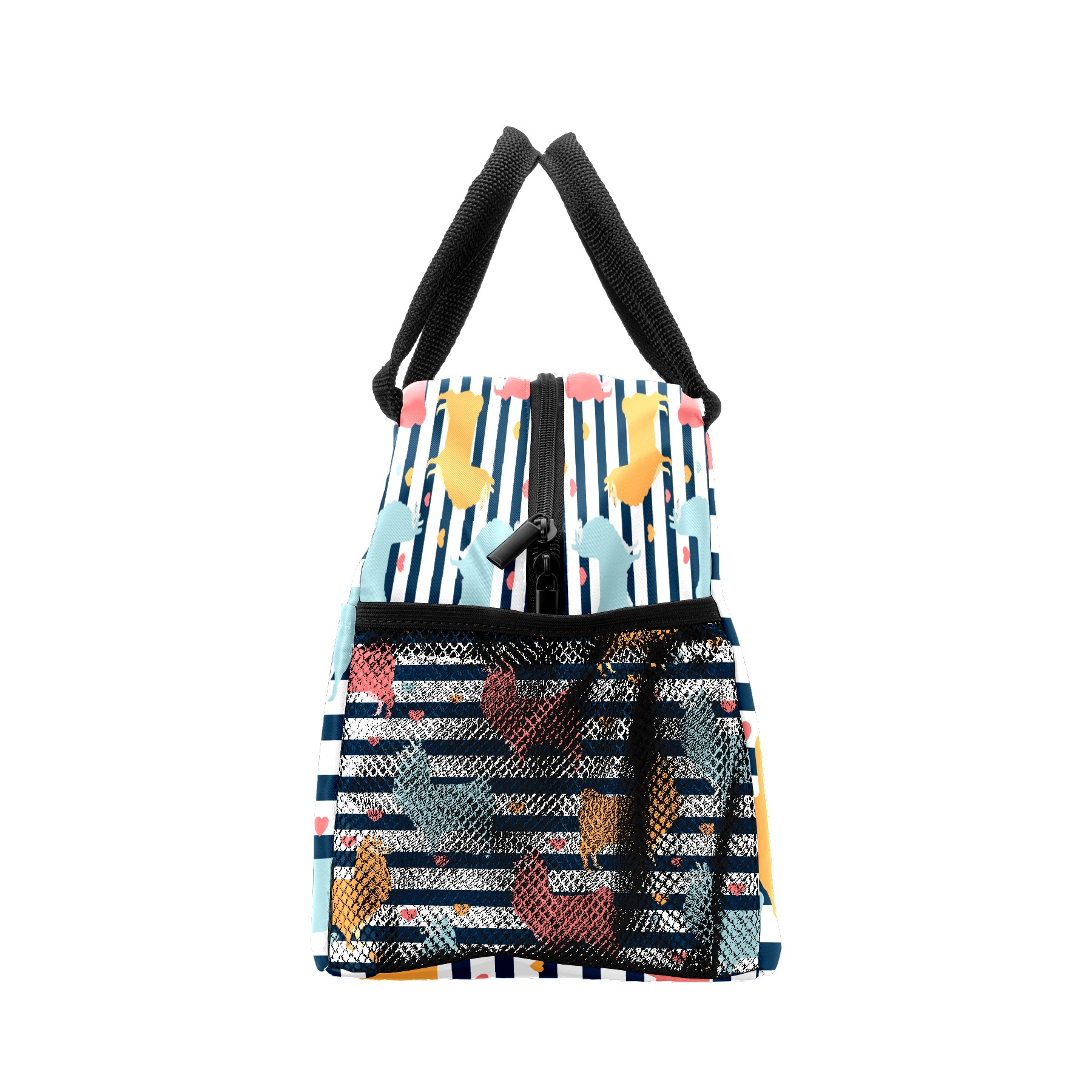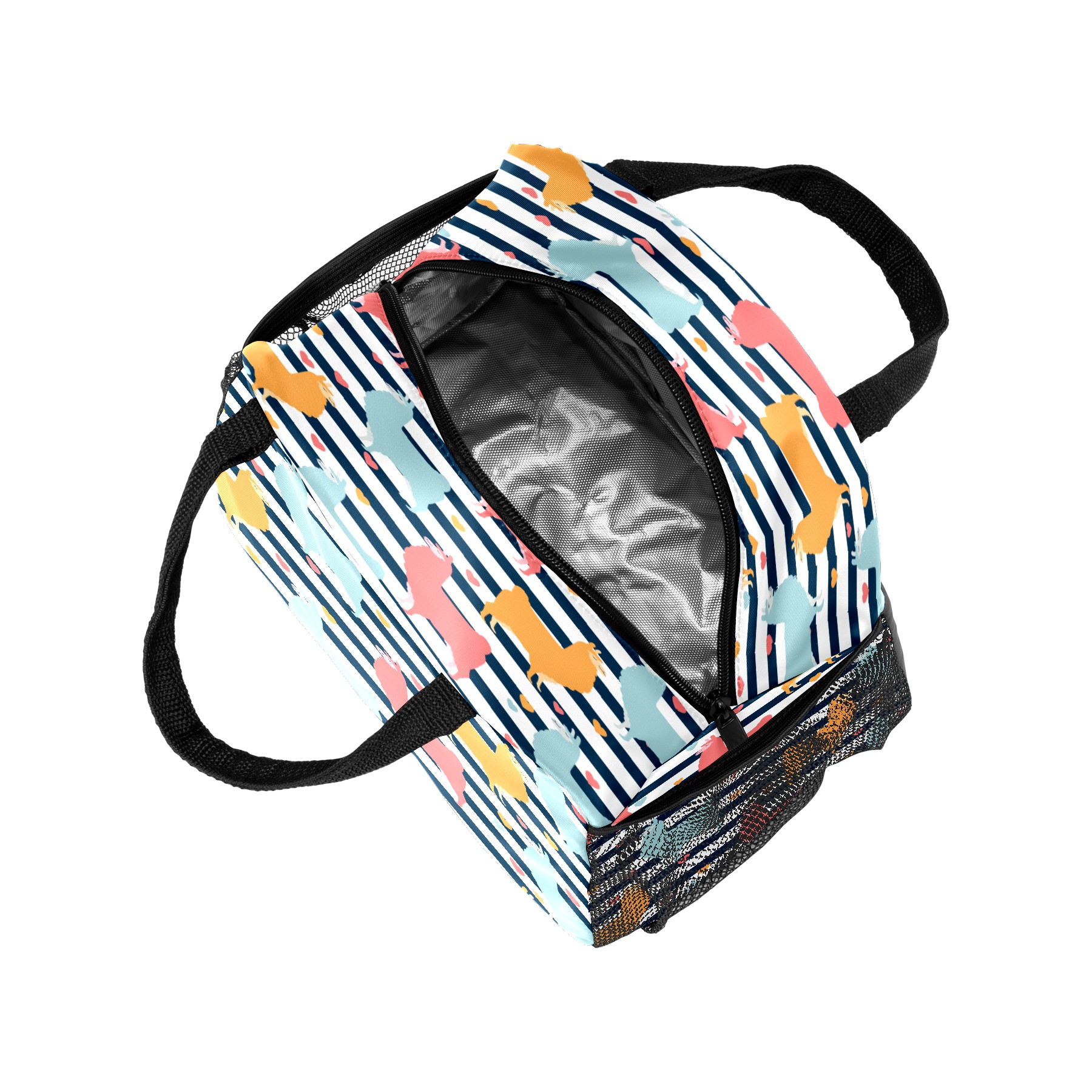 Lunch Bag for Women Men, Llama Alpaca Pattern Stripes Heart Insulated Reusable Lunch Box Thermal Cooler Tote Bag for Work Picnic Hiking Travel Beach