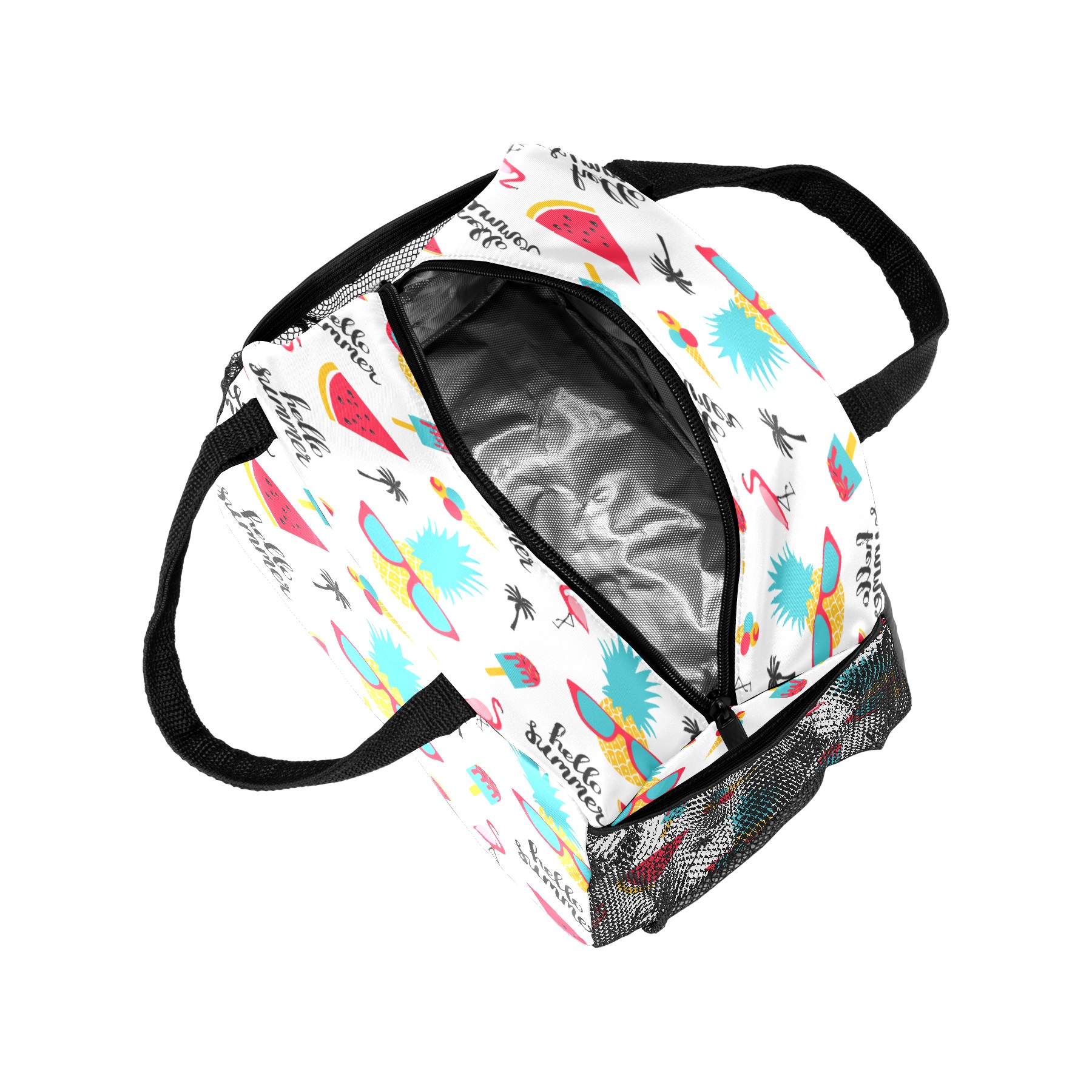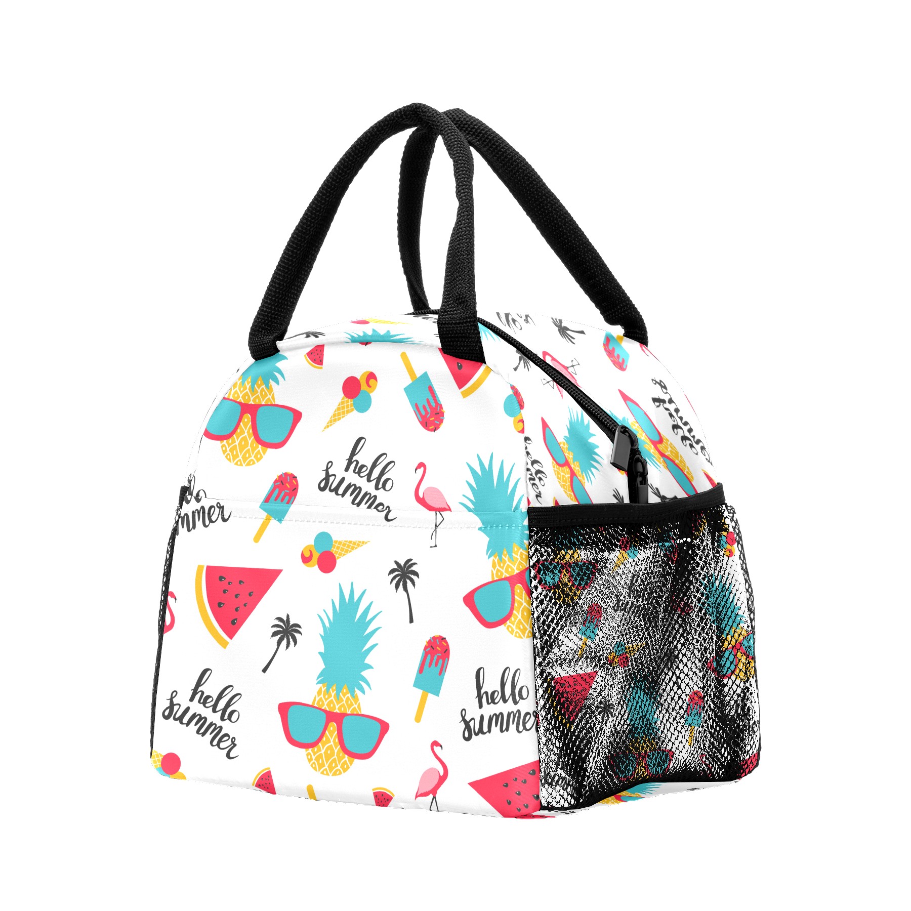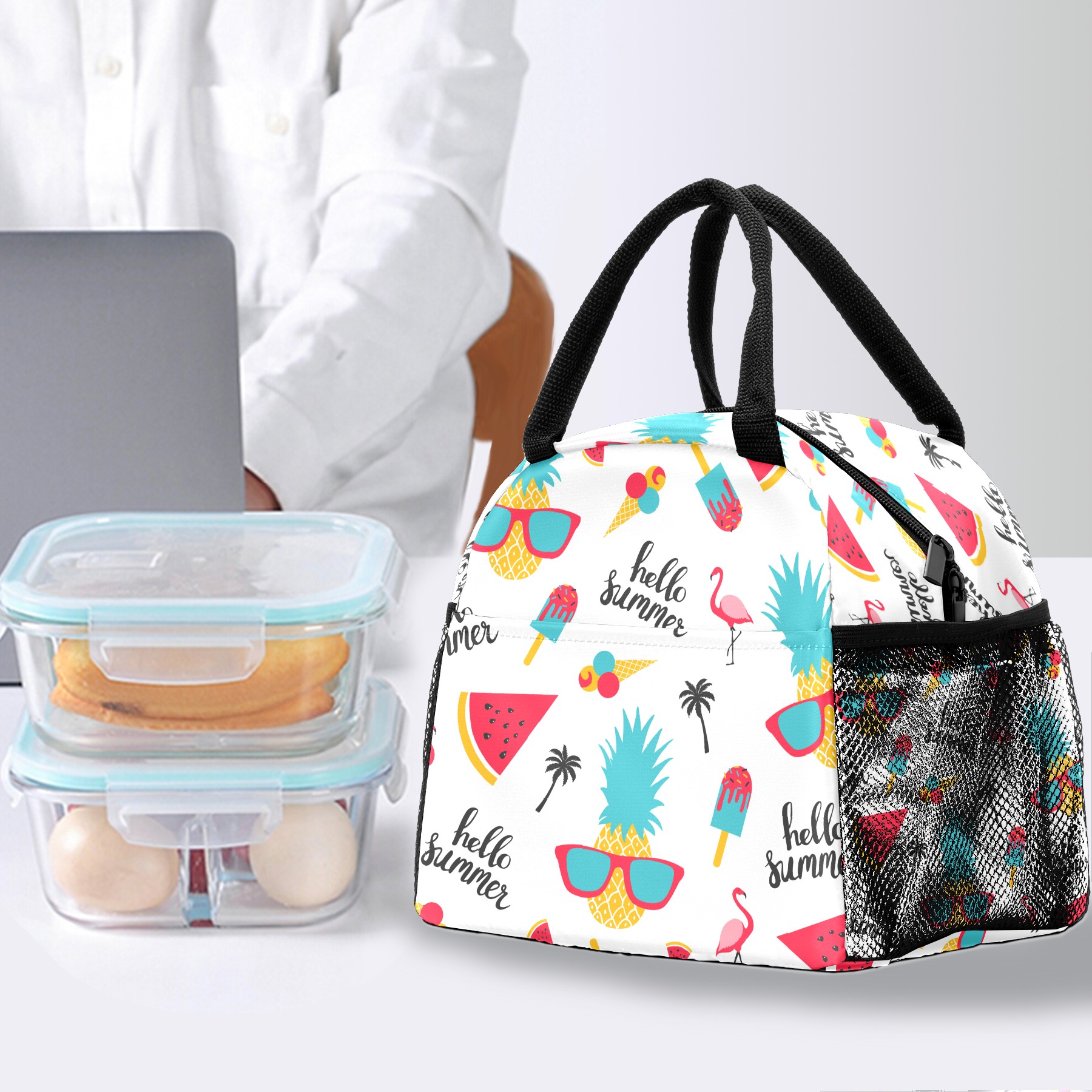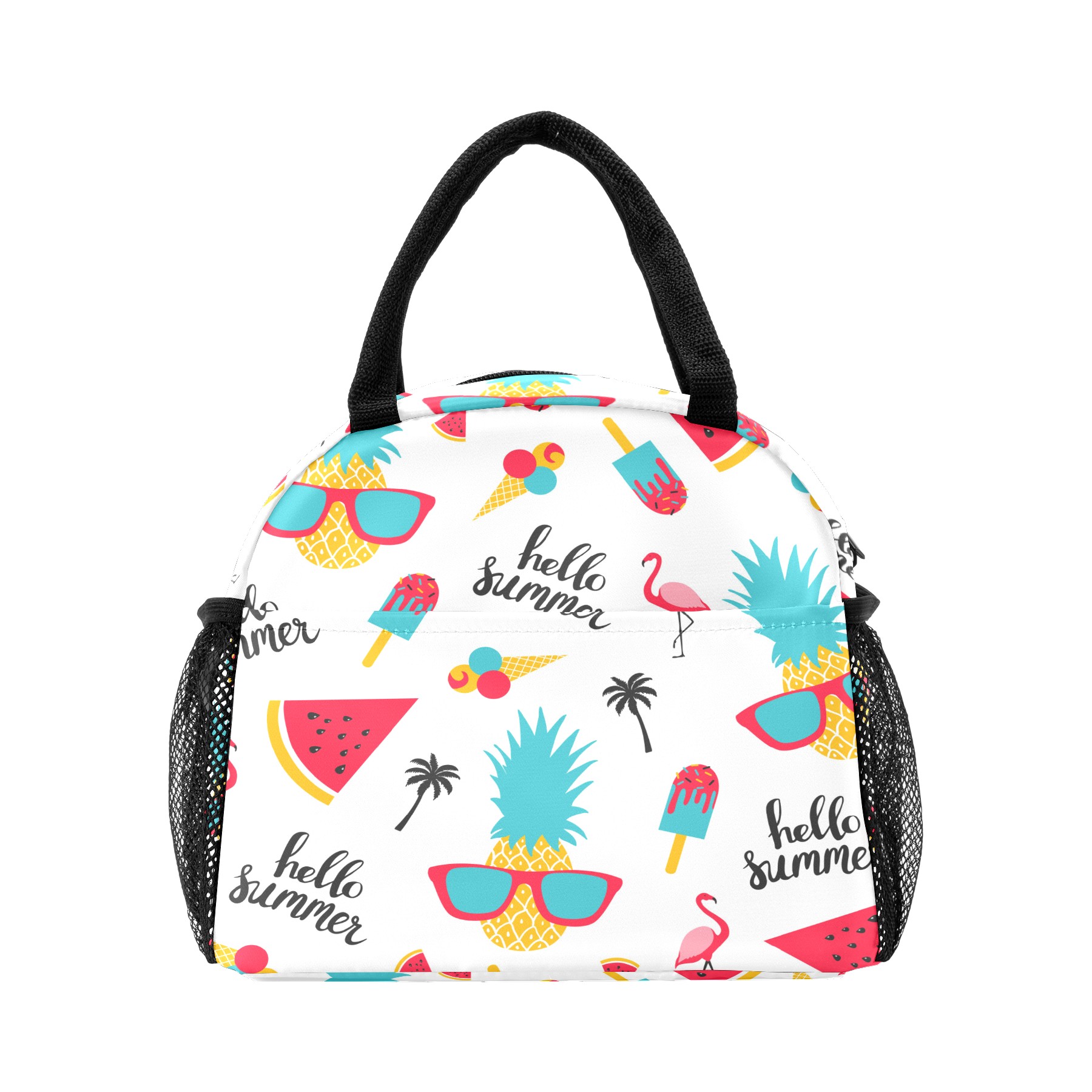 Lunch Bag for Women Men, Hello Summer Pineapple Flamingo Watermelon Insulated Reusable Lunch Box Thermal Cooler Tote Bag for Work Picnic Hiking Travel Beach