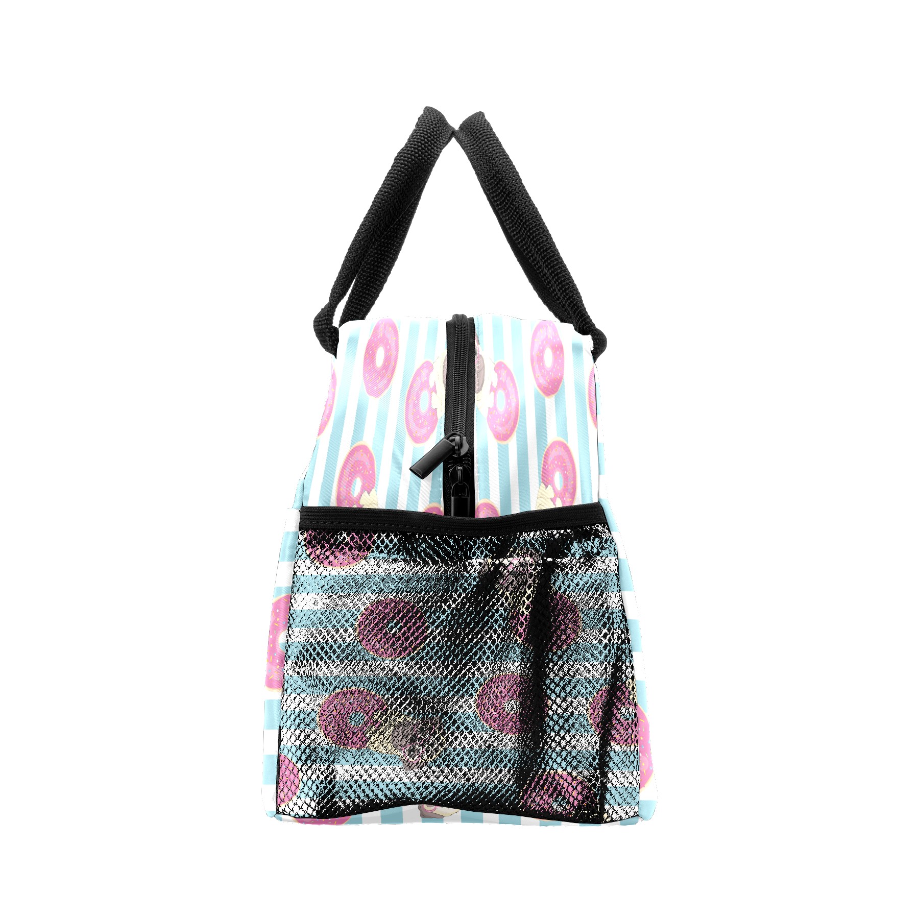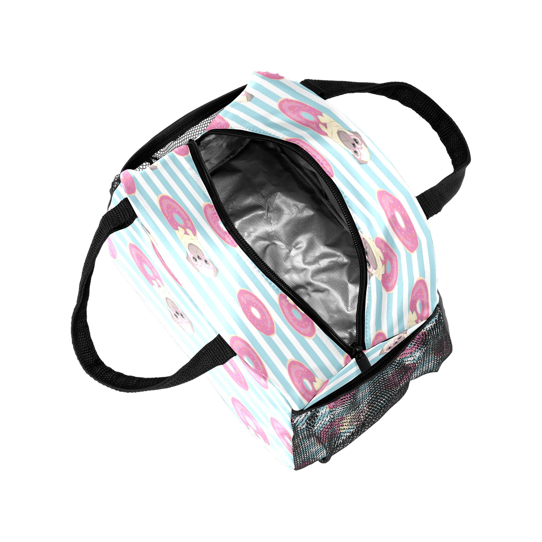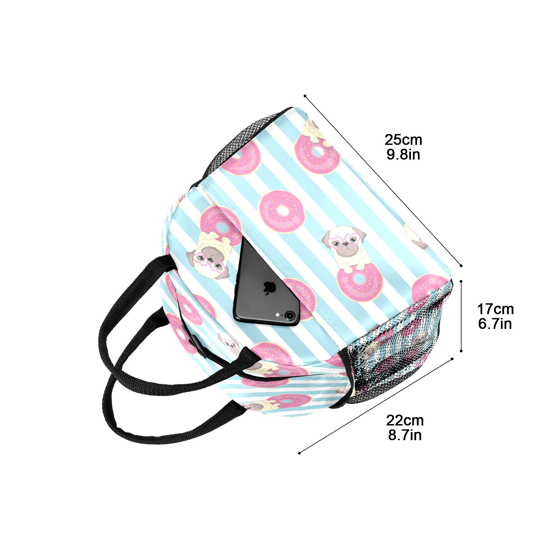 Lunch Bag for Women Men, Funny Pug With Donuts Pattern Insulated Reusable Lunch Box Thermal Cooler Tote Bag for Work Picnic Hiking Travel Beach