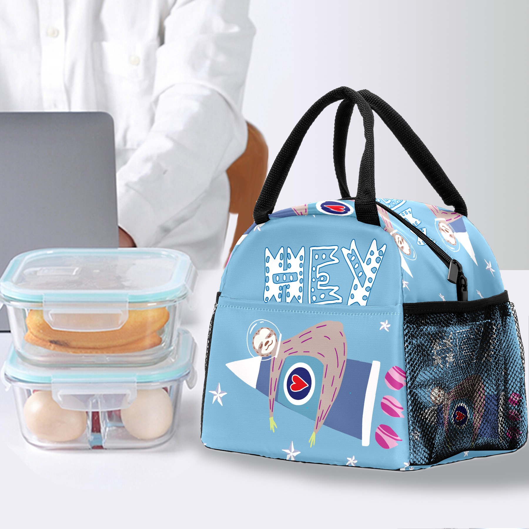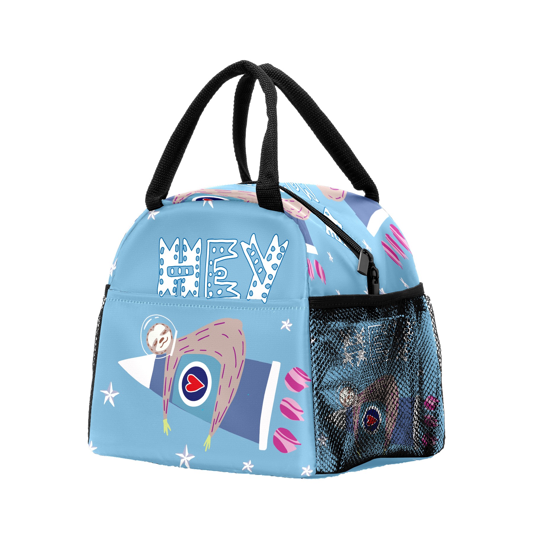 Lunch Bag for Women Men, Funny Sloth With Rockets Hey Insulated Reusable Lunch Box Thermal Cooler Tote Bag for Work Picnic Hiking Travel Beach
