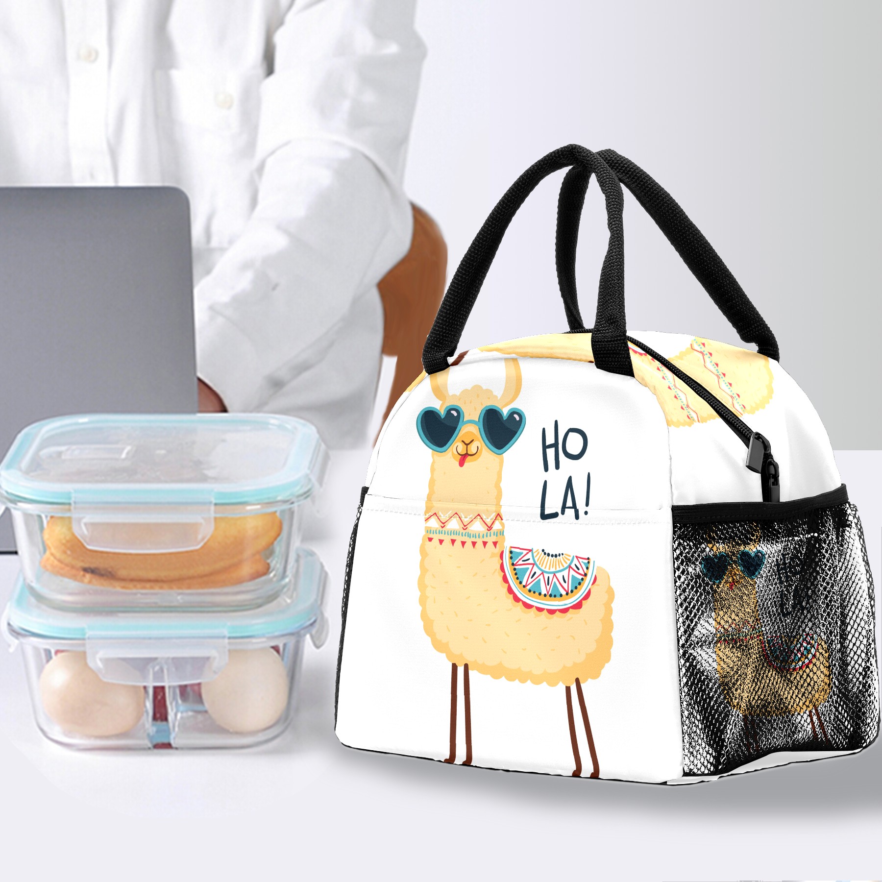 Lunch Bag for Women Men, Funny Llama Alpaca Hola Insulated Reusable Lunch Box Thermal Cooler Tote Bag for Work Picnic Hiking Travel Beach