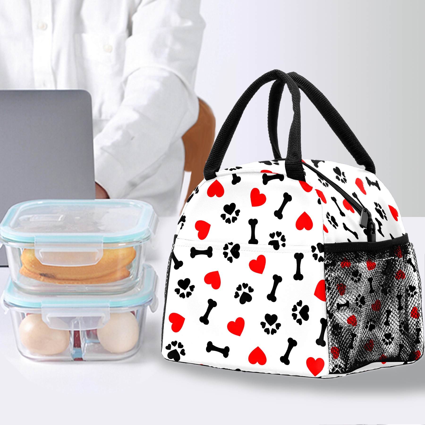 Lunch Bag for Women Men, Funny I Love You Heat Bones Pattern Insulated Reusable Lunch Box Thermal Cooler Tote Bag for Work Picnic Hiking Travel Beach