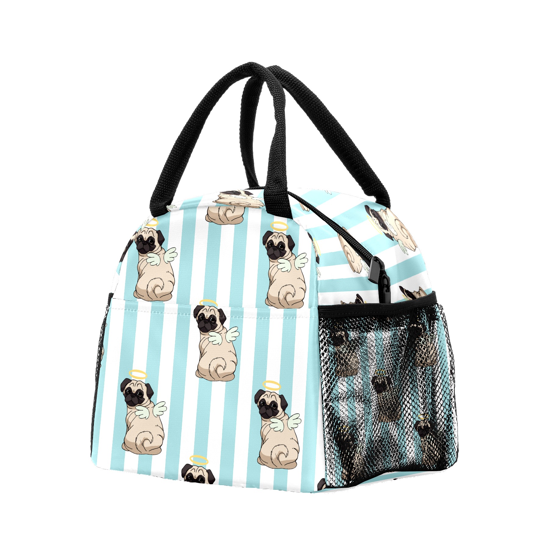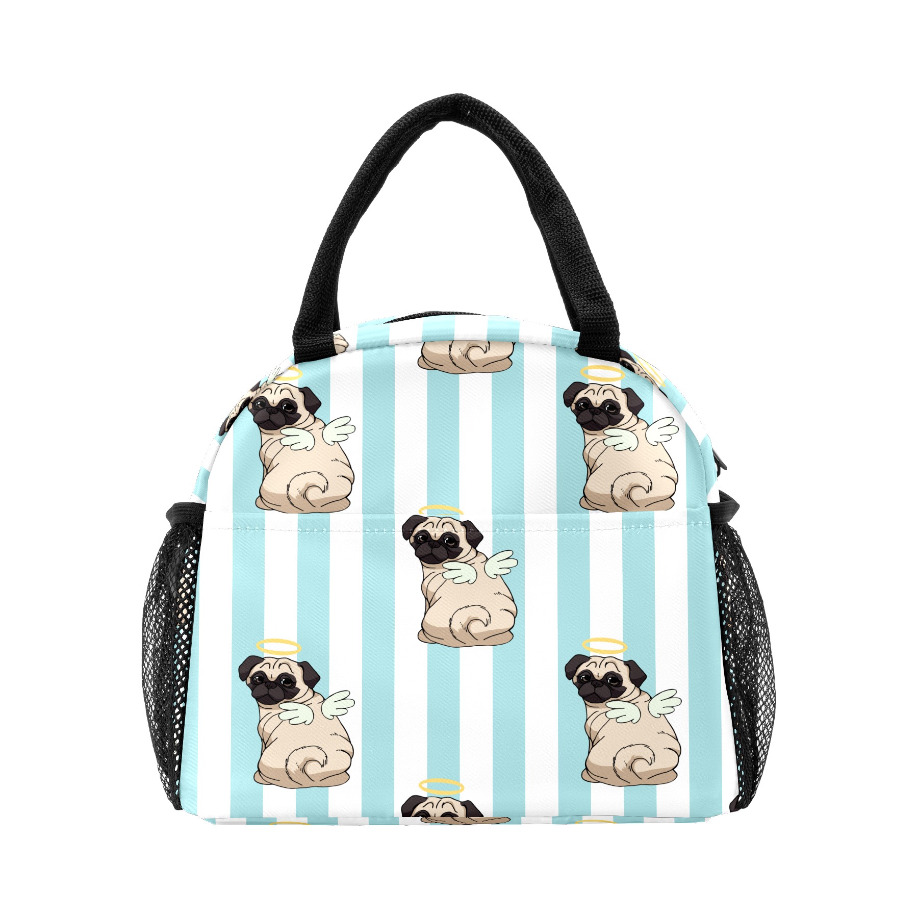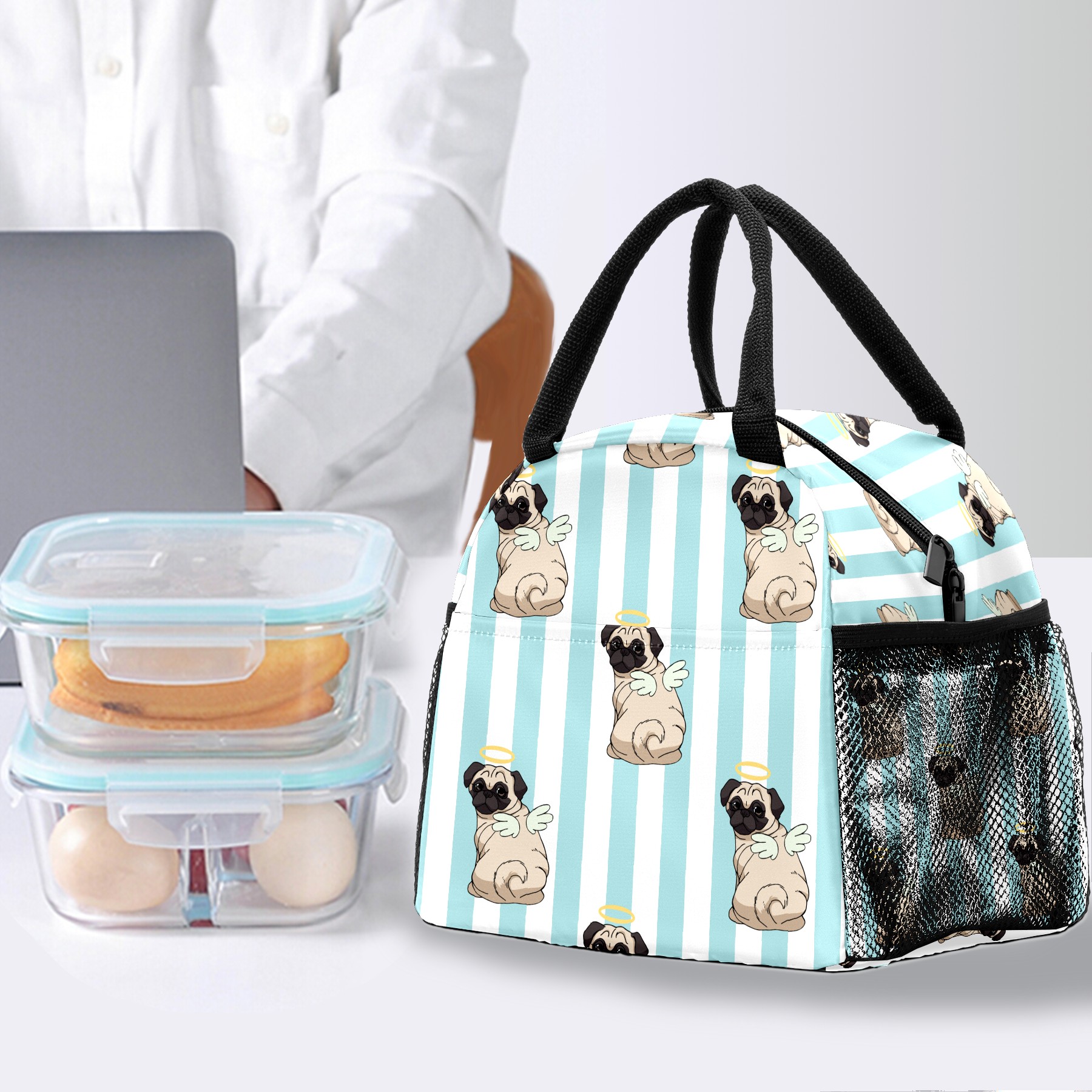 Lunch Bag for Women Men, Funny Pug Angle Wing Stripes Insulated Reusable Lunch Box Thermal Cooler Tote Bag for Work Picnic Hiking Travel Beach