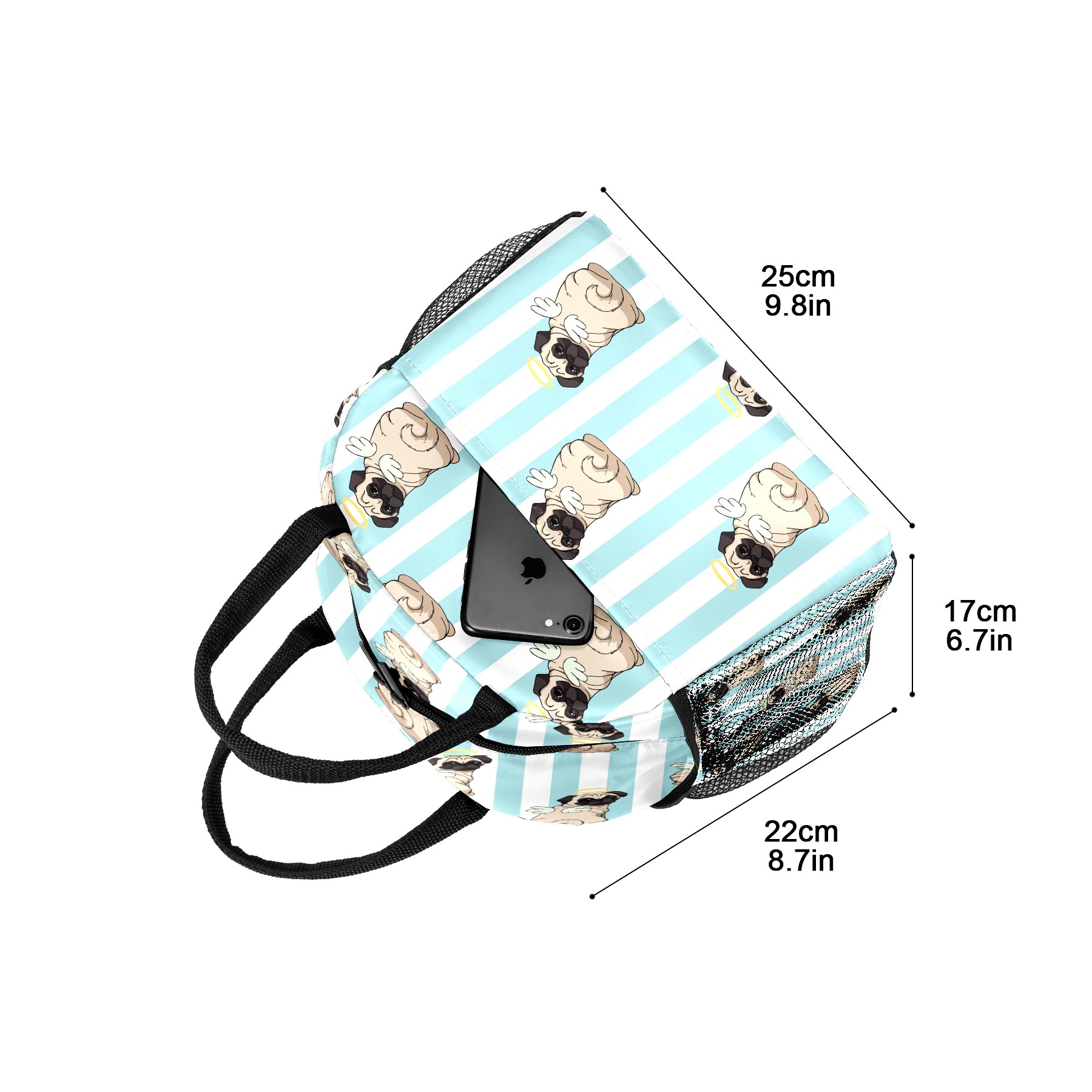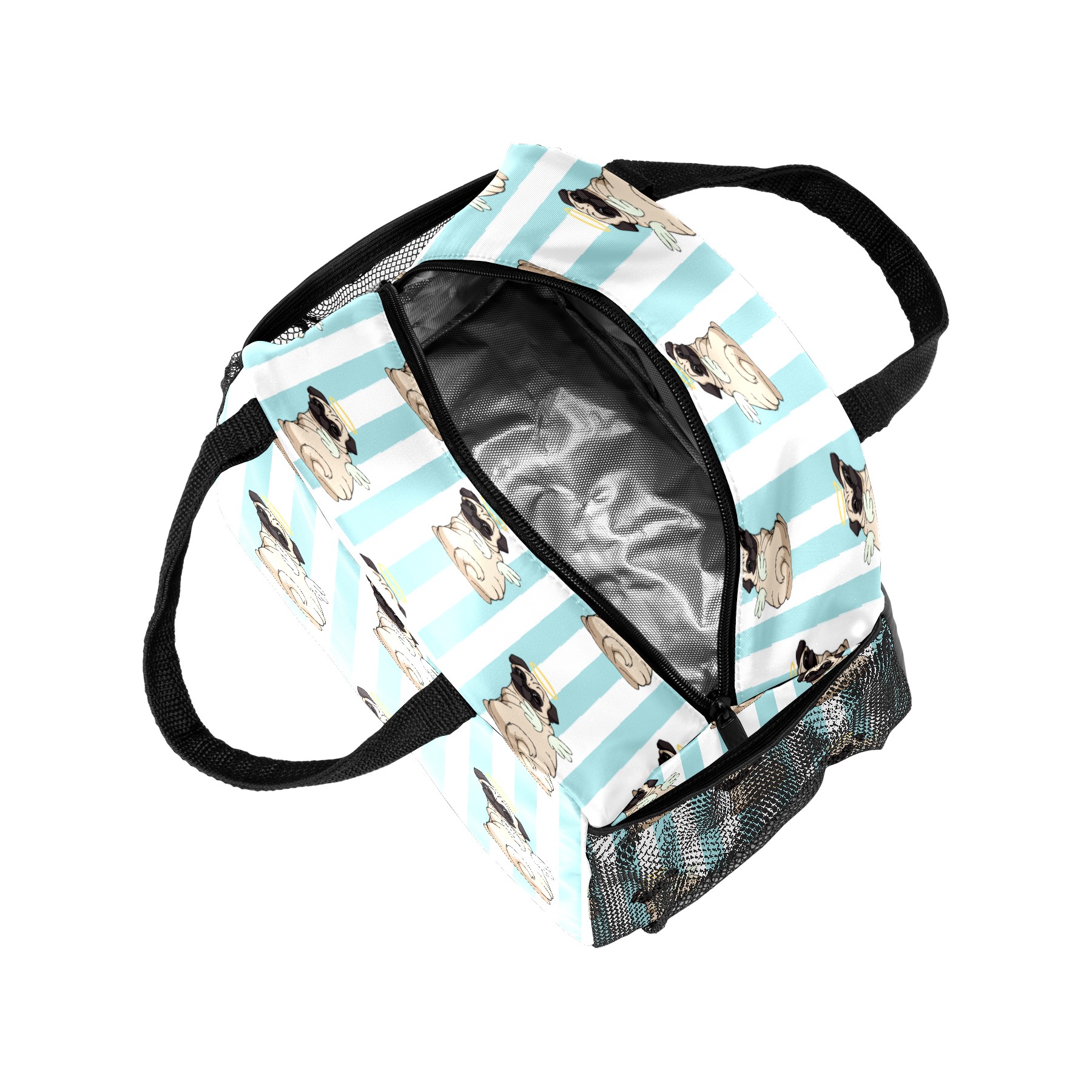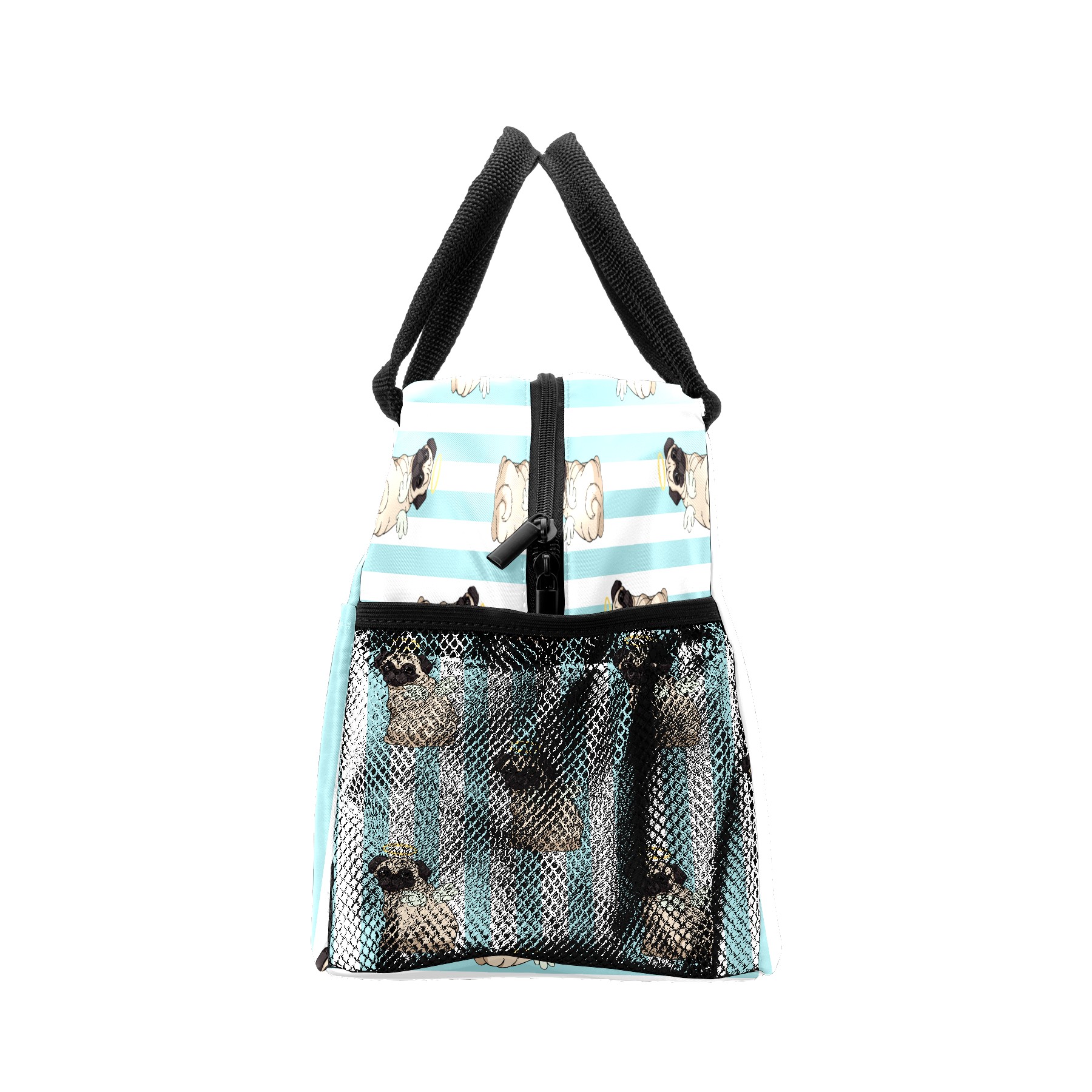 Lunch Bag for Women Men, Funny Pug Angle Wing Stripes Insulated Reusable Lunch Box Thermal Cooler Tote Bag for Work Picnic Hiking Travel Beach