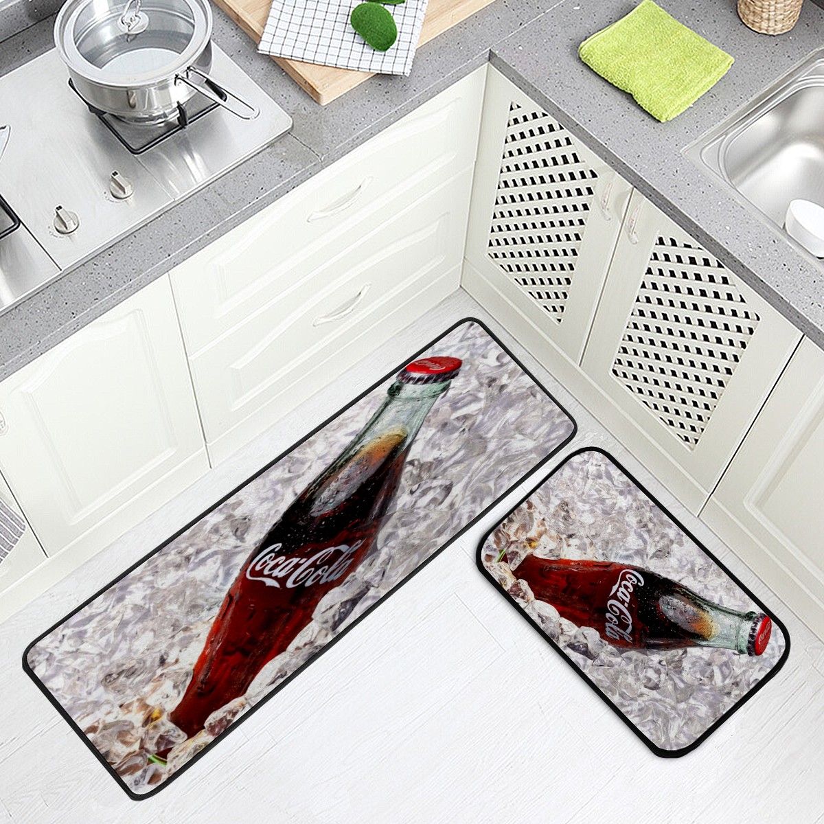 Kitchen Floor Mats Abstract Coca Cola On Ice Kitchen Area Rugs and Mats Non Skid Twill Kitchen Mat Standing Mat Washable for Kitchen Floor Home Office Sink Laundry 40x20 in