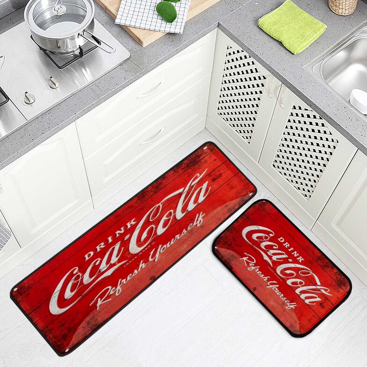 Kitchen Floor Mats Vintage Coca Cola Kitchen Area Rugs and Mats Non Skid Twill Kitchen Mat Standing Mat Washable for Kitchen Floor Home Office Sink Laundry 40x20 in