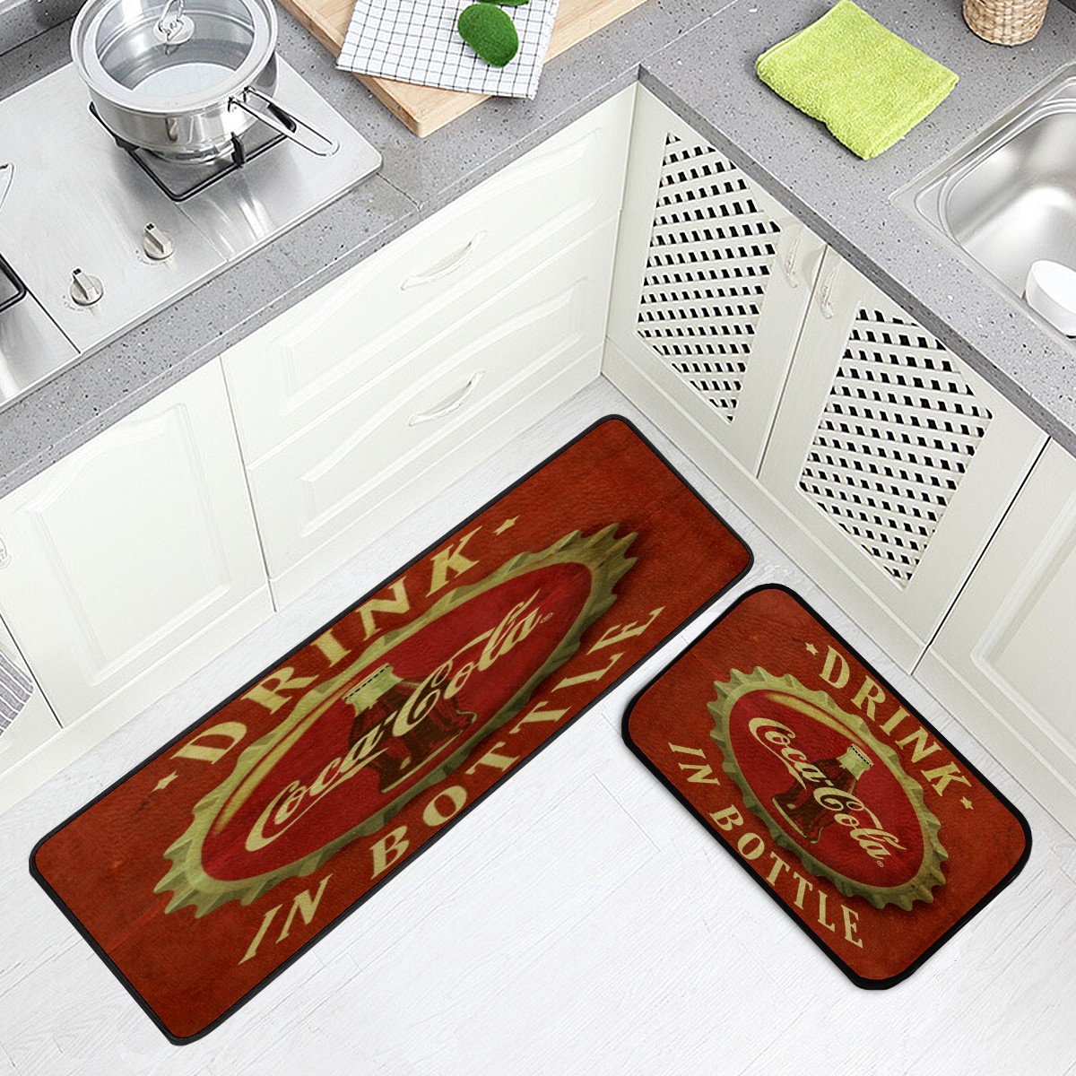 Kitchen Floor Mats Drink Coca Cola Vintage Kitchen Area Rugs and Mats Non Skid Twill Kitchen Mat Standing Mat Washable for Kitchen Floor Home Office Sink Laundry 40x20 in