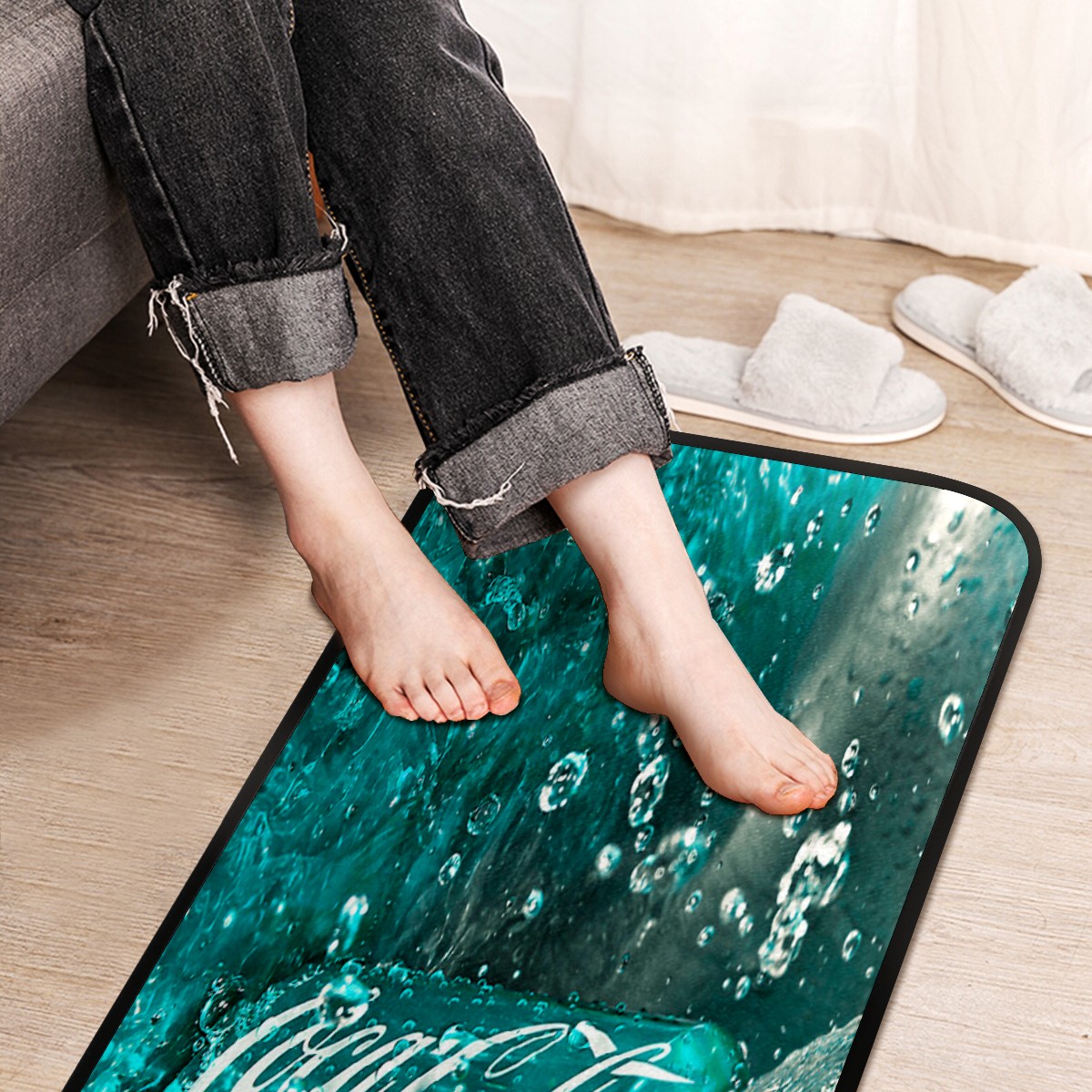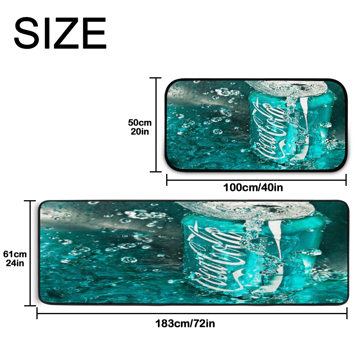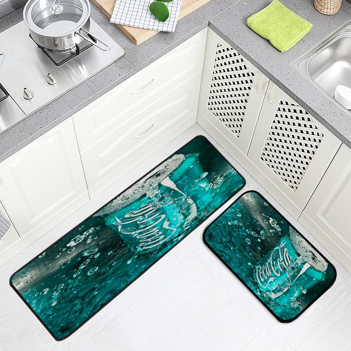 Kitchen Floor Mats Coca Cola Turquoise Green Kitchen Area Rugs and Mats Non Skid Twill Kitchen Mat Standing Mat Washable for Kitchen Floor Home Office Sink Laundry 40x20 in