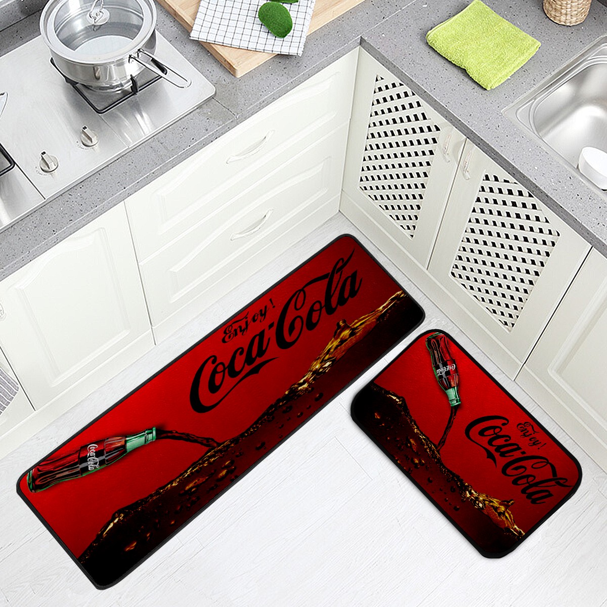 Kitchen Floor Mats Enjoy Coca Cola Kitchen Area Rugs and Mats Non Skid Twill Kitchen Mat Standing Mat Washable for Kitchen Floor Home Office Sink Laundry 40x20 in