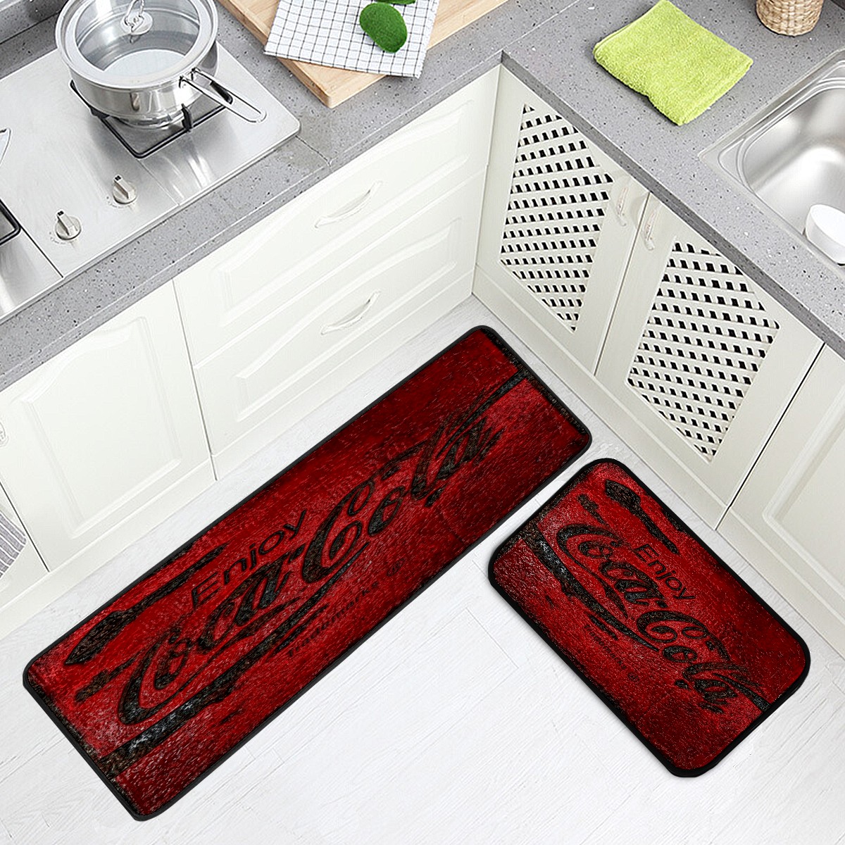 Kitchen Floor Mats Coca Cola Classic Vintage Kitchen Area Rugs and Mats Non Skid Twill Kitchen Mat Standing Mat Washable for Kitchen Floor Home Office Sink Laundry 40x20 in