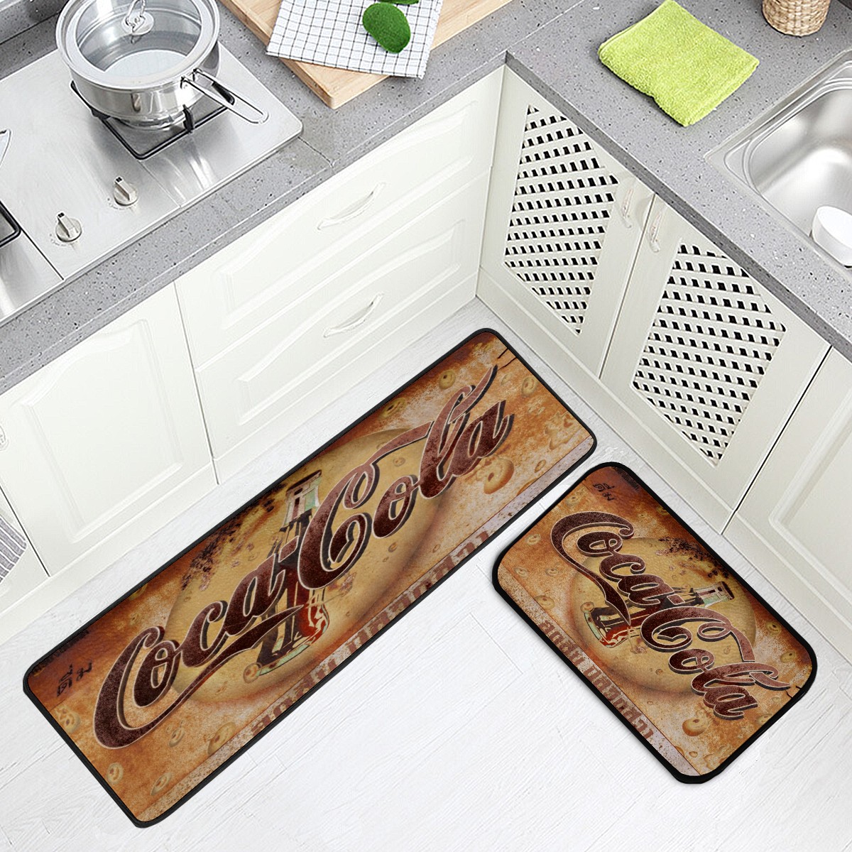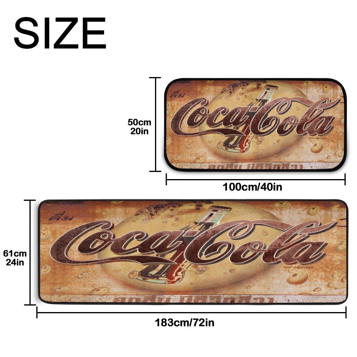 Kitchen Floor Mats Coca Cola Vintage Kitchen Area Rugs and Mats Non Skid Twill Kitchen Mat Standing Mat Washable for Kitchen Floor Home Office Sink Laundry 40x20 in