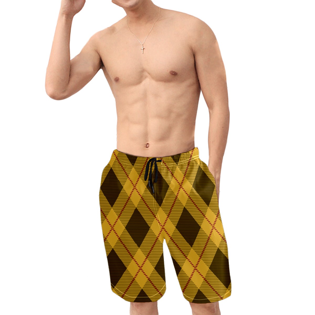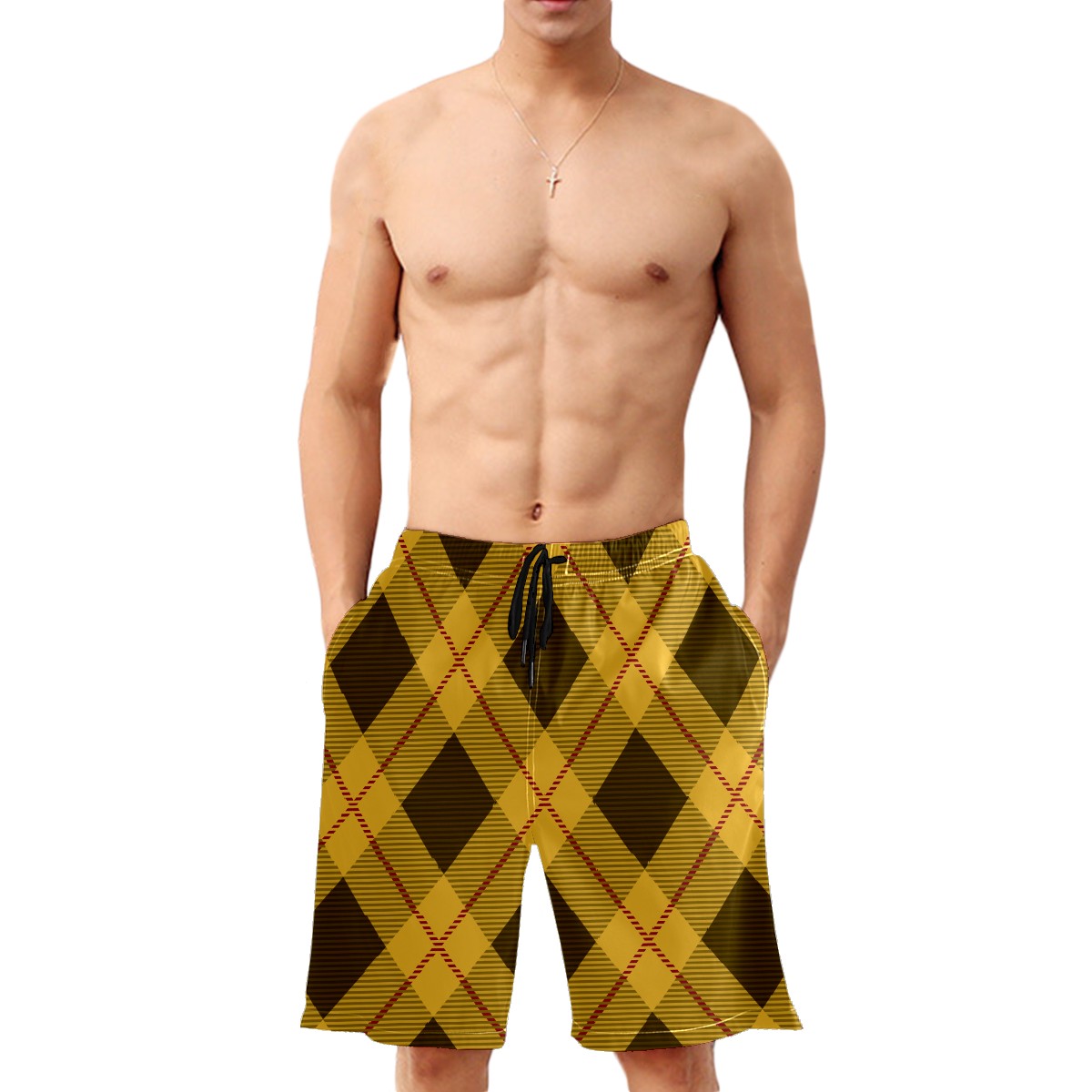Men's Swim Trunks Retro Yellow Tartan Buffalo Plaid Quick Dry Board Shorts Elastic Waist with Pockets