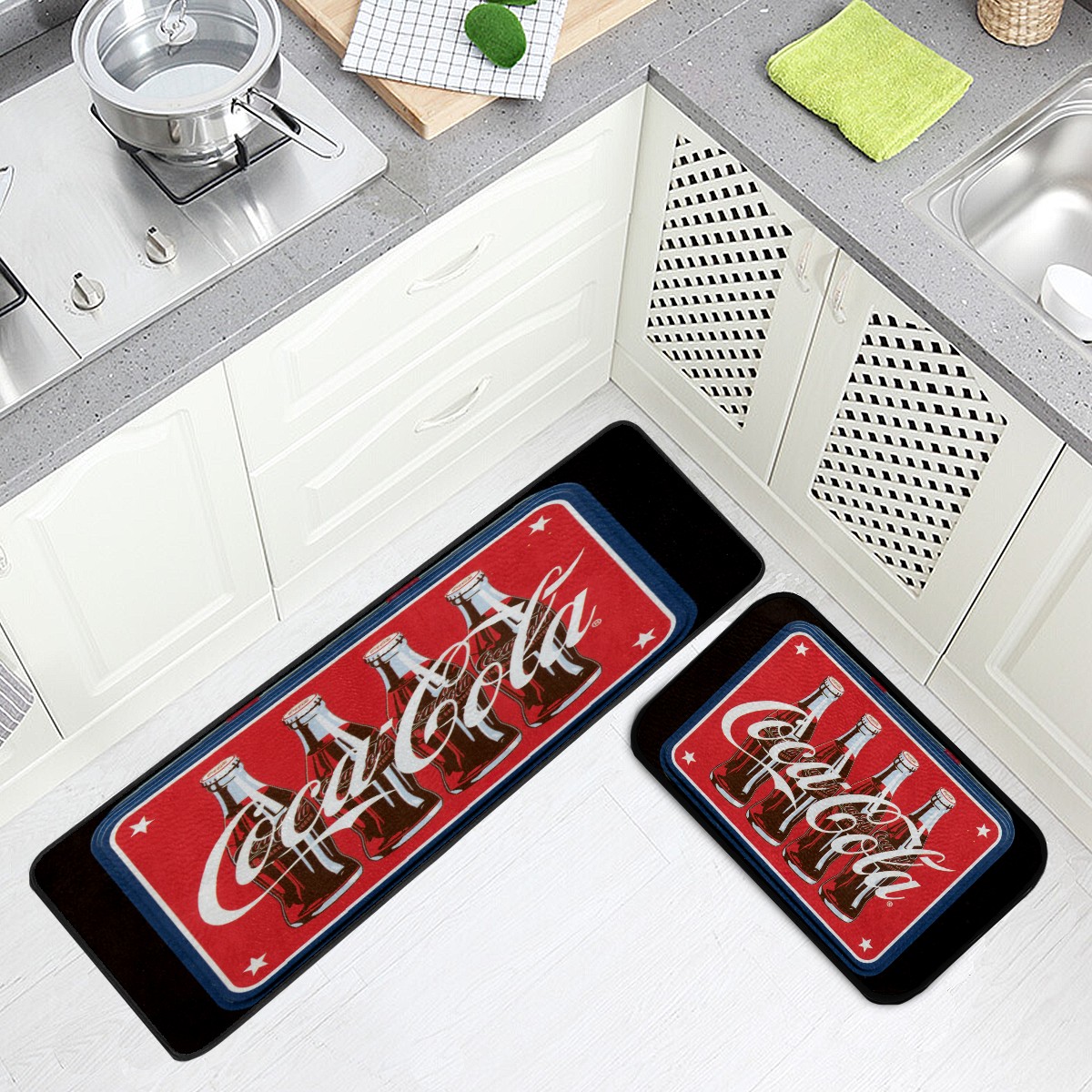 Kitchen Floor Mats Vintage Coca Cola Bottle Star Kitchen Area Rugs and Mats Non Skid Twill Kitchen Mat Standing Mat Washable for Kitchen Floor Home Office Sink Laundry 40x20 in