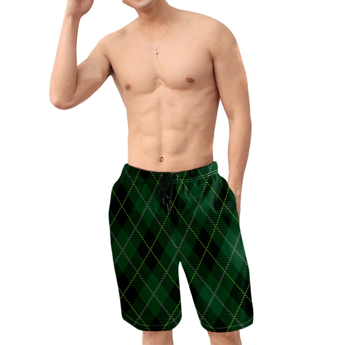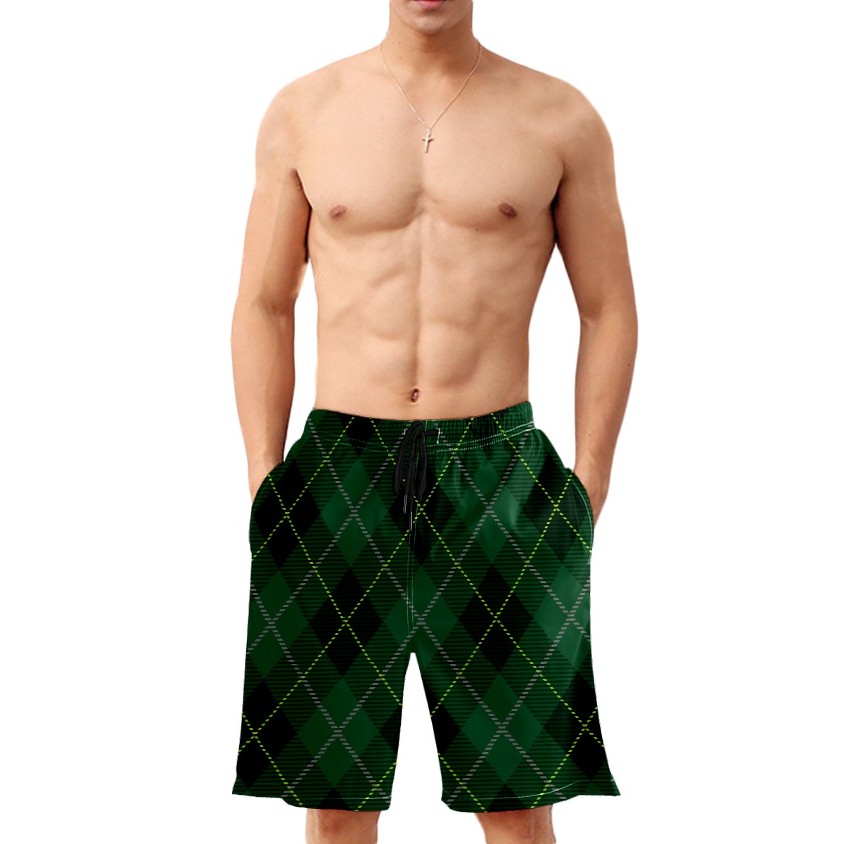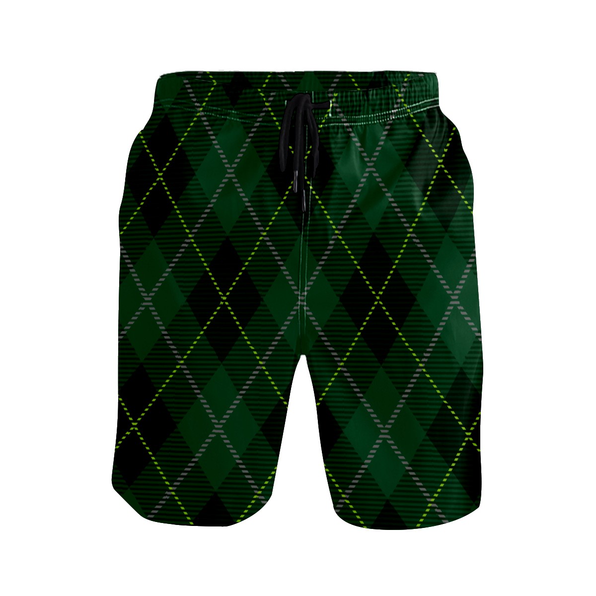 Men's Swim Trunks Tartan Cross Plaid Dark Green Quick Dry Board Shorts Elastic Waist with Pockets