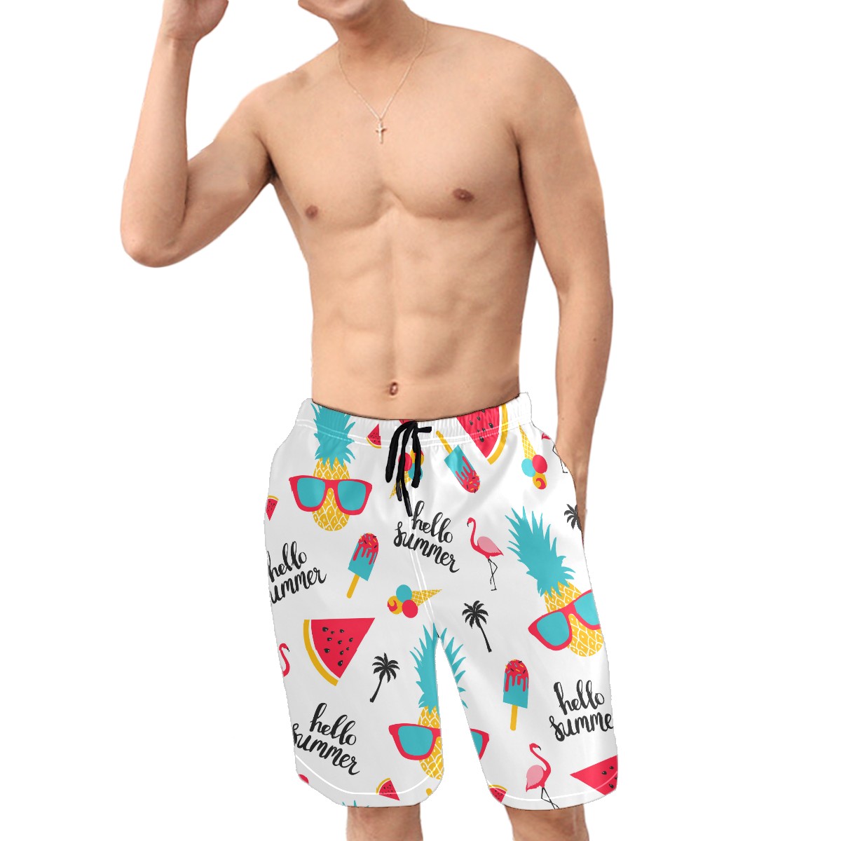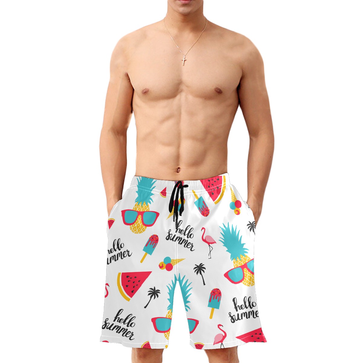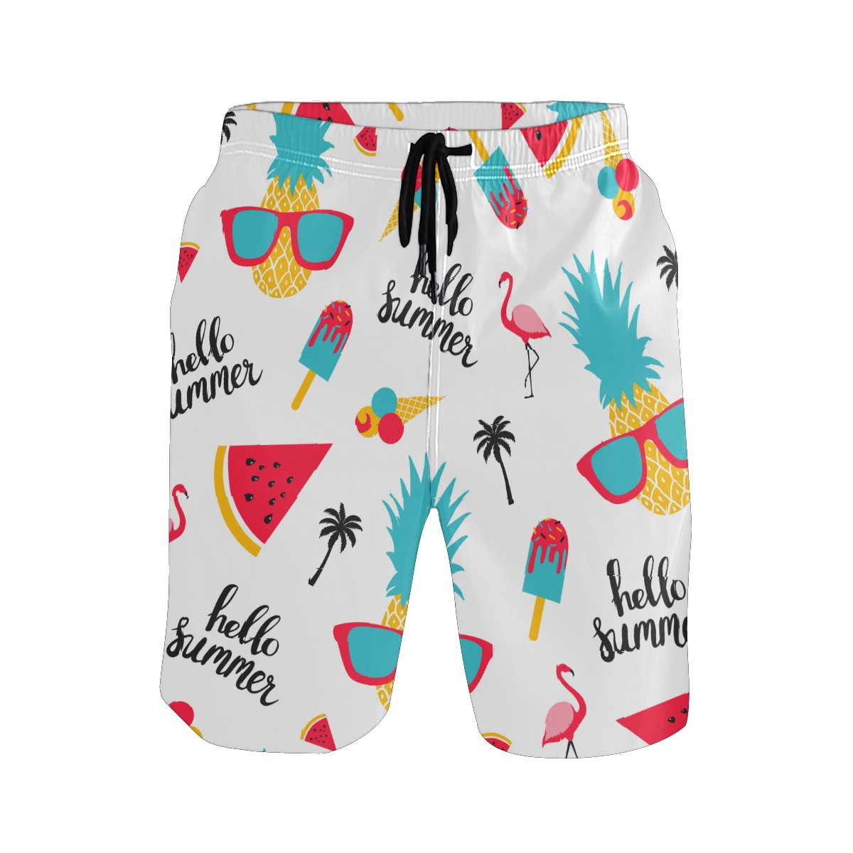 Men's Swim Trunks Hello Summer Pineapple Flamingo Watermelon Quick Dry Board Shorts Elastic Waist with Pockets
