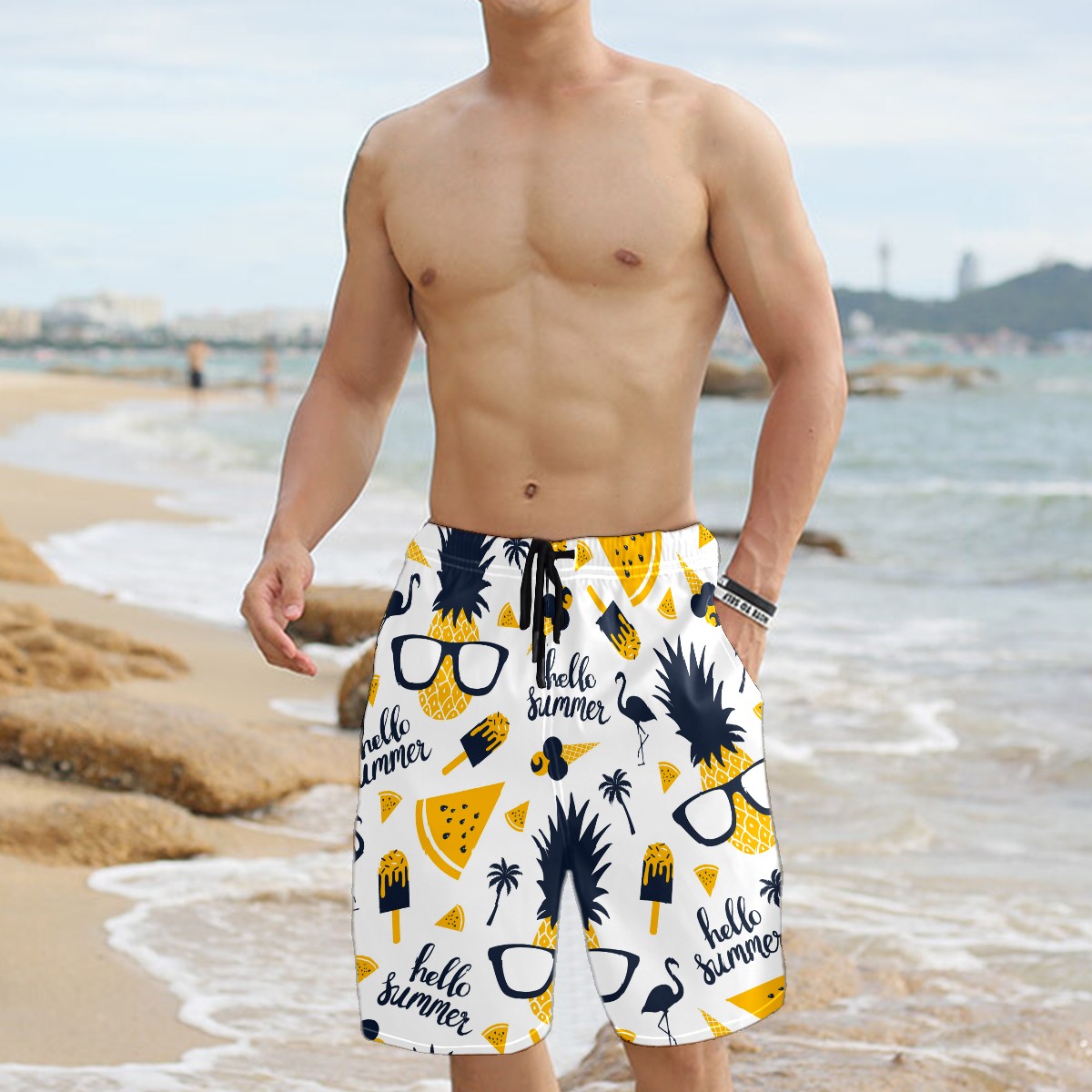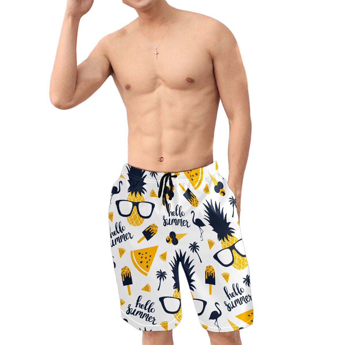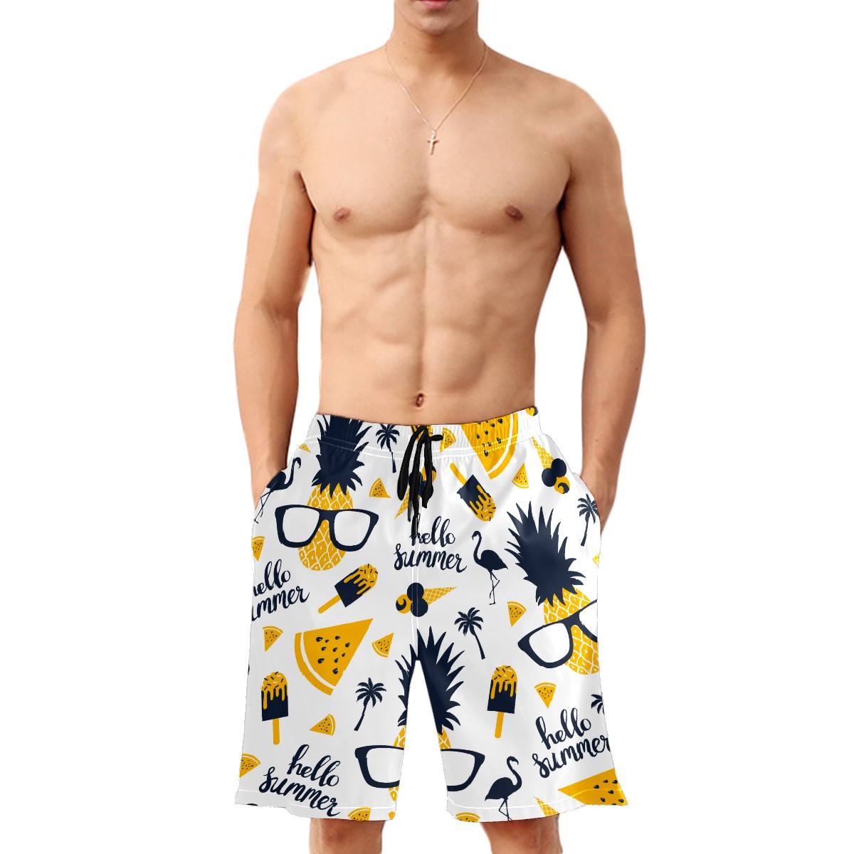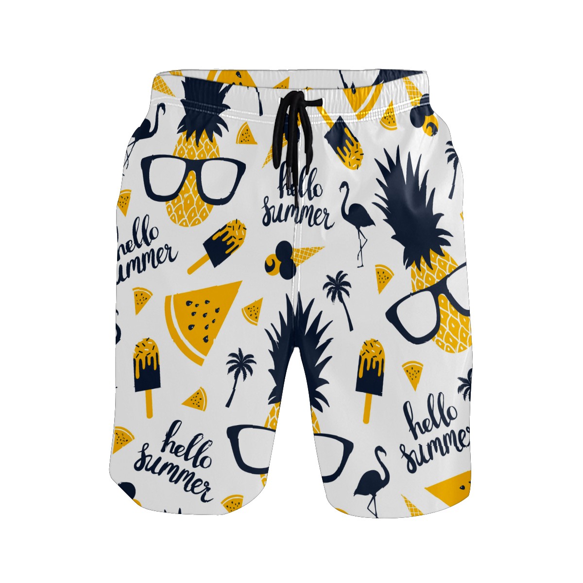 Men's Swim Trunks Funny Hello Summer Pineapple Ice Cream Flamingo Quick Dry Board Shorts Elastic Waist with Pockets