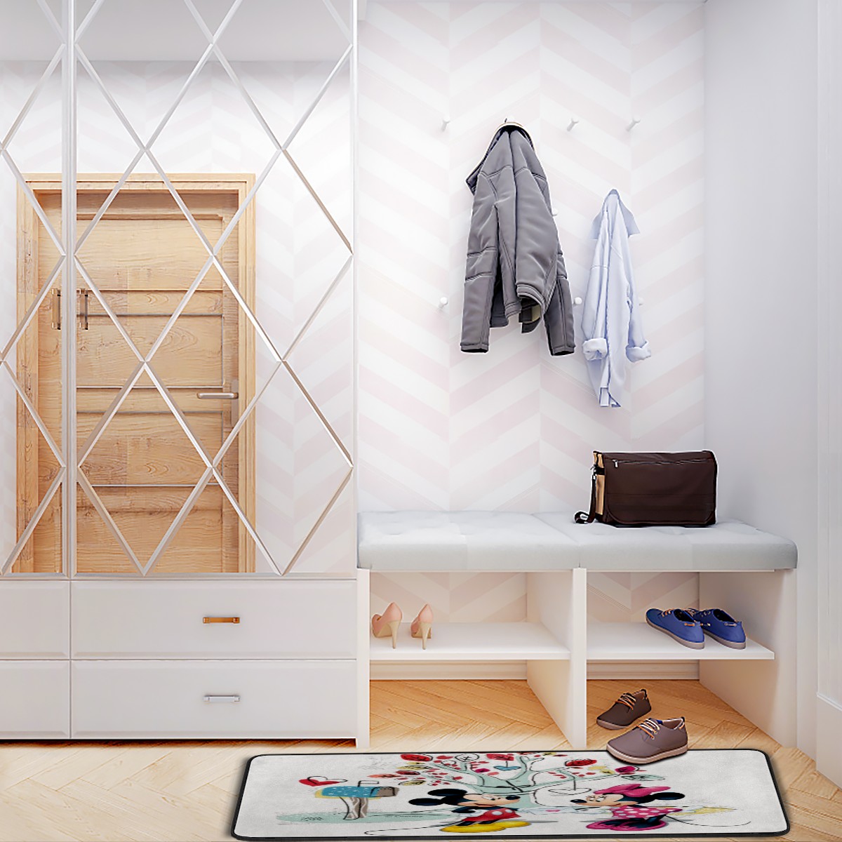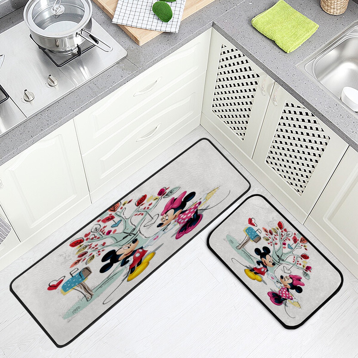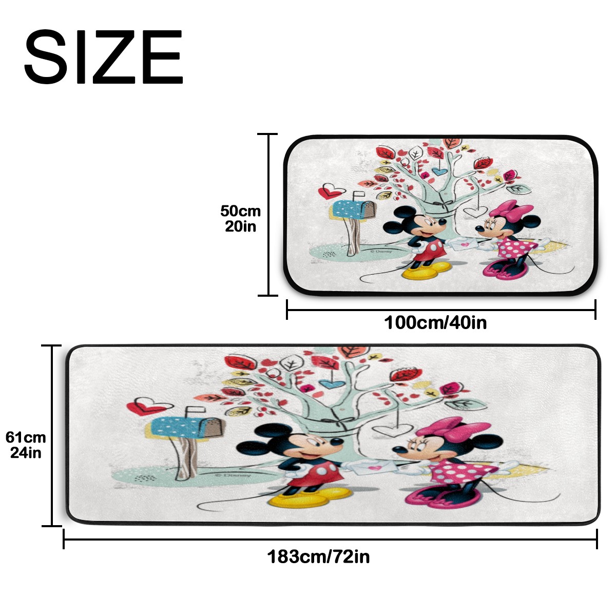 Kitchen Floor Mats Mickey Mouse Minnie Valentine's Day Kitchen Area Rugs and Mats Non Skid Twill Kitchen Mat Standing Mat Washable for Kitchen Floor Home Office Sink Laundry 40x20 in