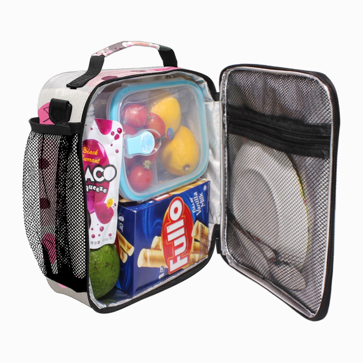 <b>Fashion Customize Multifunctional Insulated Straps Lunch Tote Bag</b><br> <b>Large capacity:</b>10.5(H)*3.5(W)*9.5(L)Inch,Can hold fruits,food,beverages,bento boxes,drinks,sandwich,plate,junk food.<br> <b>Material:</b>Premium Food Grade Auluminum Foil+Fabric,stain resistant,resuable,durable,provides superior insulation, keeping food colder or warmer and fresh.<br> <b>Structure:</b>One Large Pocket,one inside mesh pocket,one side mesh pocket,can put your water bottle,umbrella,and etc.<br> <b>Convenient:</b>One Shoulder Strap,one hand strap.<br> <b>Occasions:</b>School,Work,Office,Travel,Camping,Beach BBQ,Outdoor Activities and etc.<br> <b>Suit People:</b>men,women,students,all the people who need to eat fresh meal.