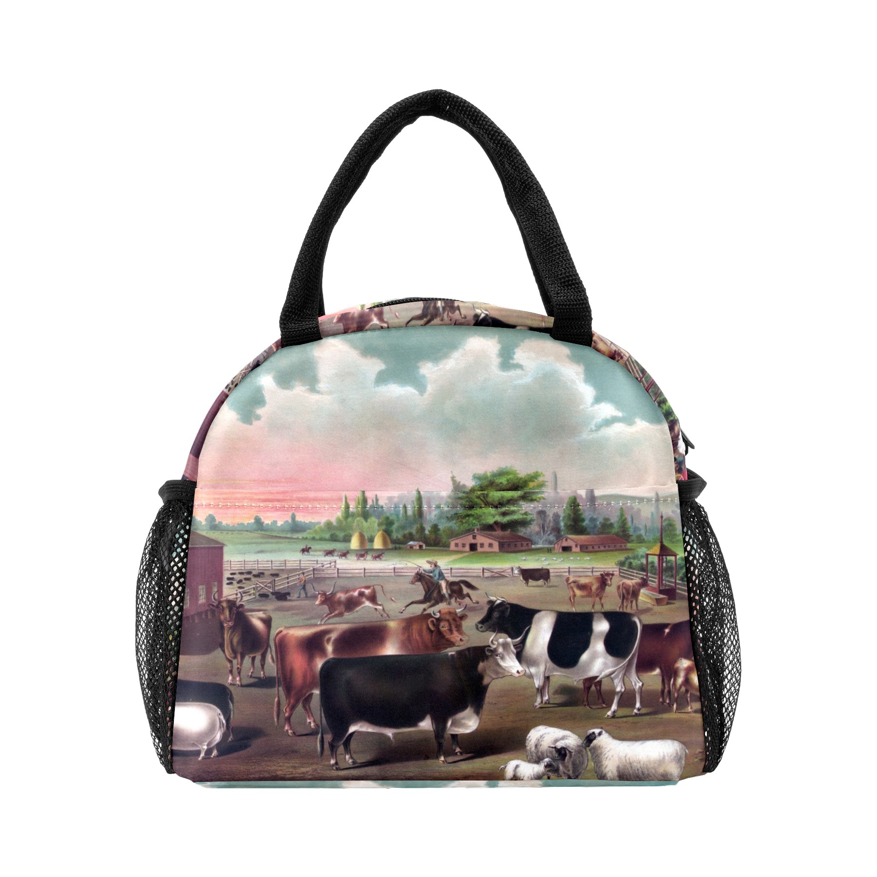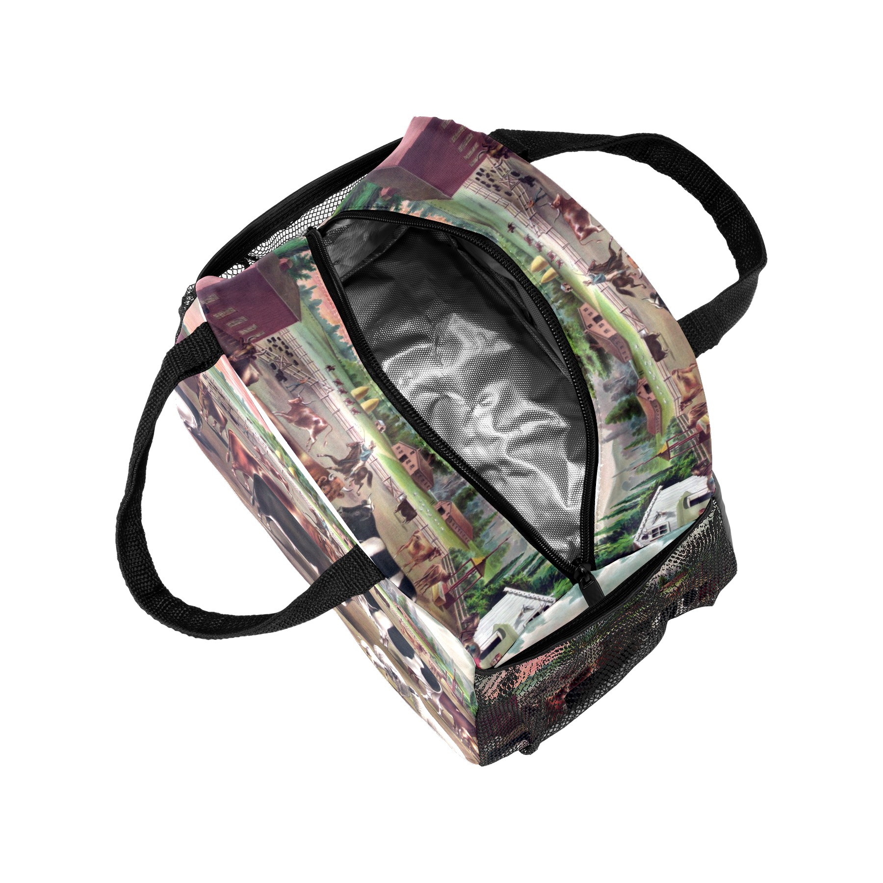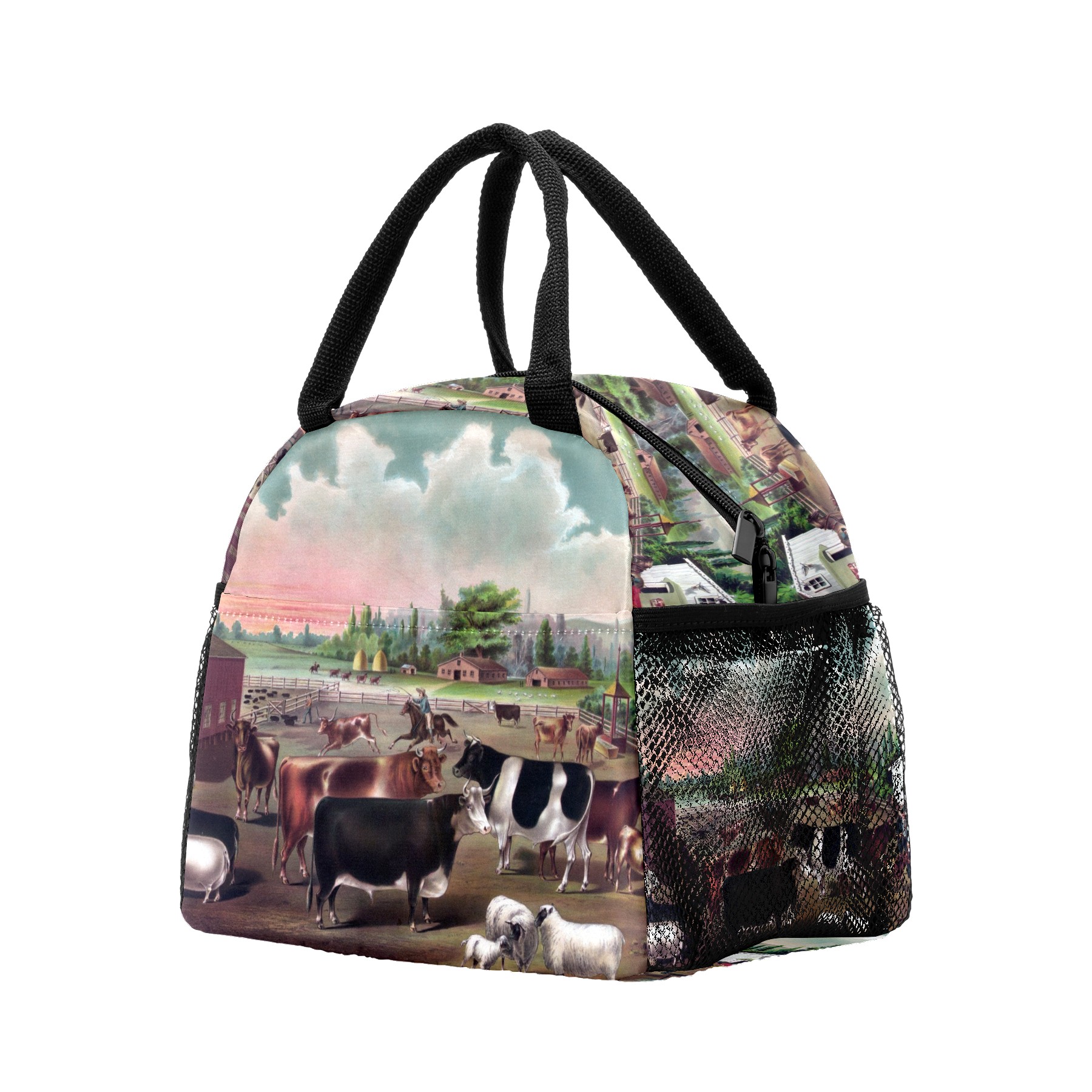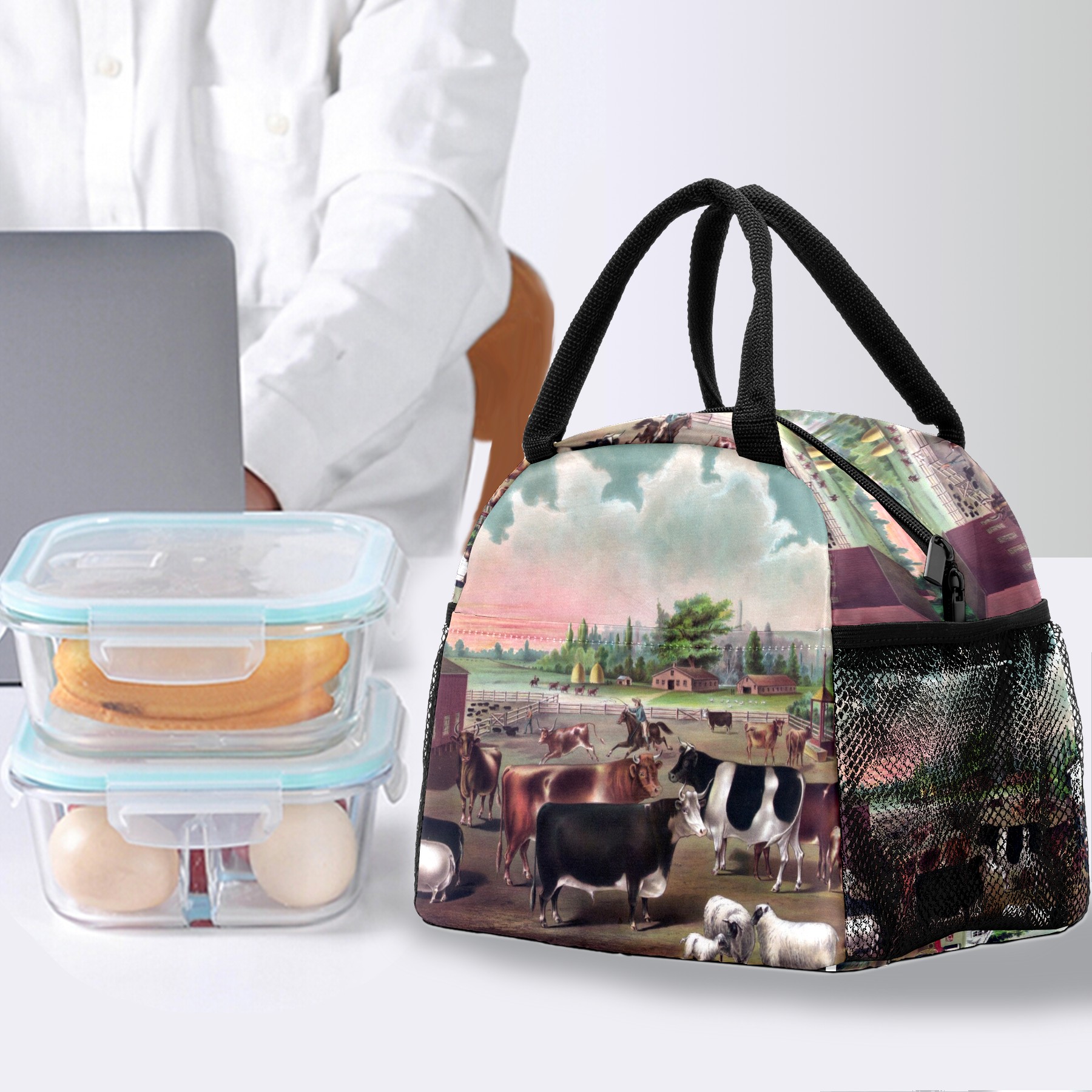 Reusable Lunch Bag Insulated Lunch Box Farm Animals Lunch Tote Bag Durable Snacks Organizer for Office Work Hiking Picnic