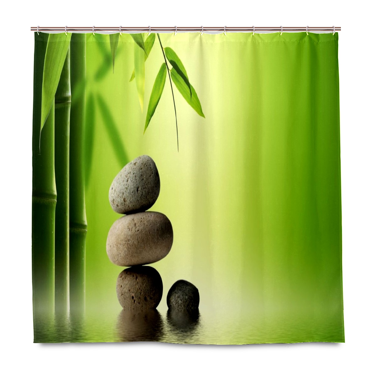 Shower Curtains for Bathroom Spa Zen Stones Bamboo Waterproof Polyester Fabric 60 x 72 inches Home Decor Bathroom Curtains for Kids Girls Boys with 12 Hooks