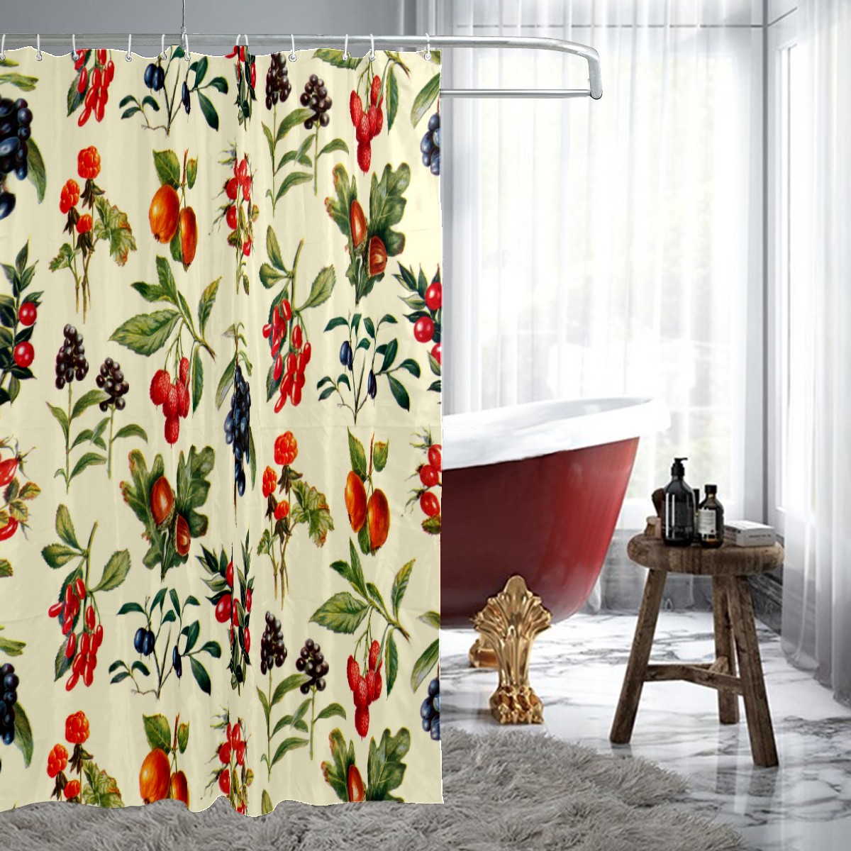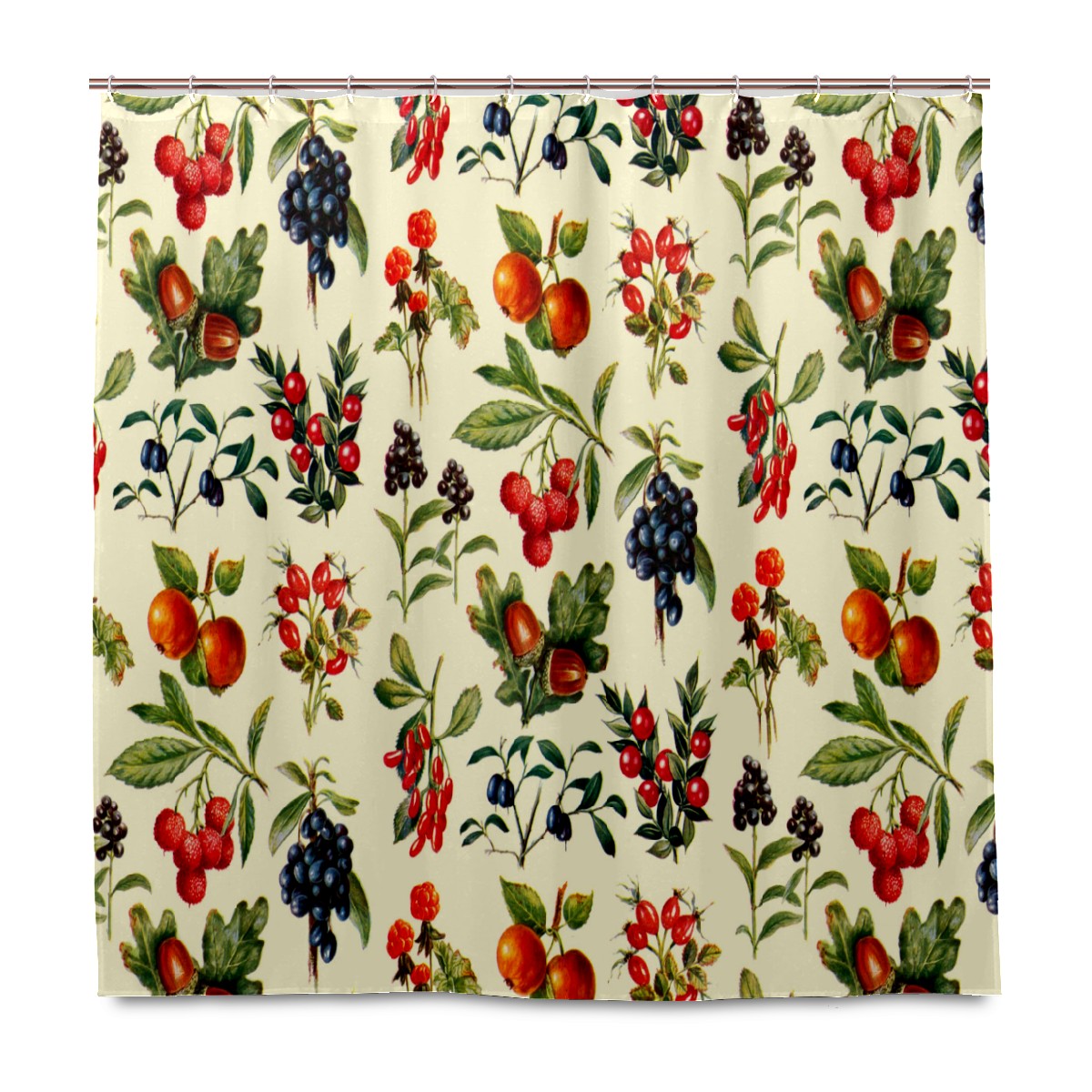 Shower Curtains for Bathroom Wild Fruits Pattern Waterproof Polyester Fabric 60 x 72 inches Home Decor Bathroom Curtains for Kids Girls Boys with 12 Hooks