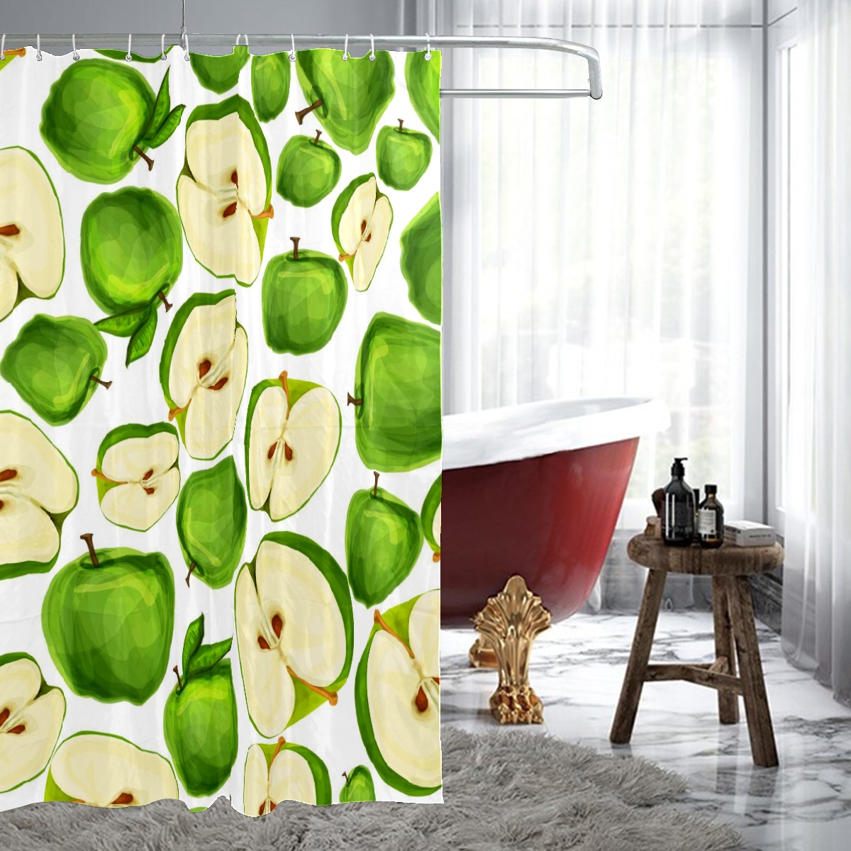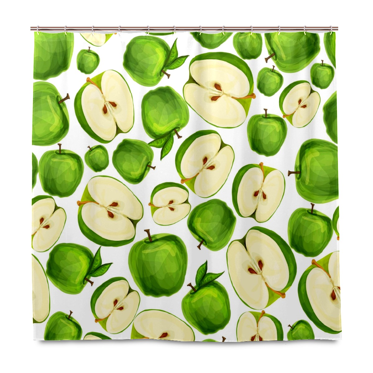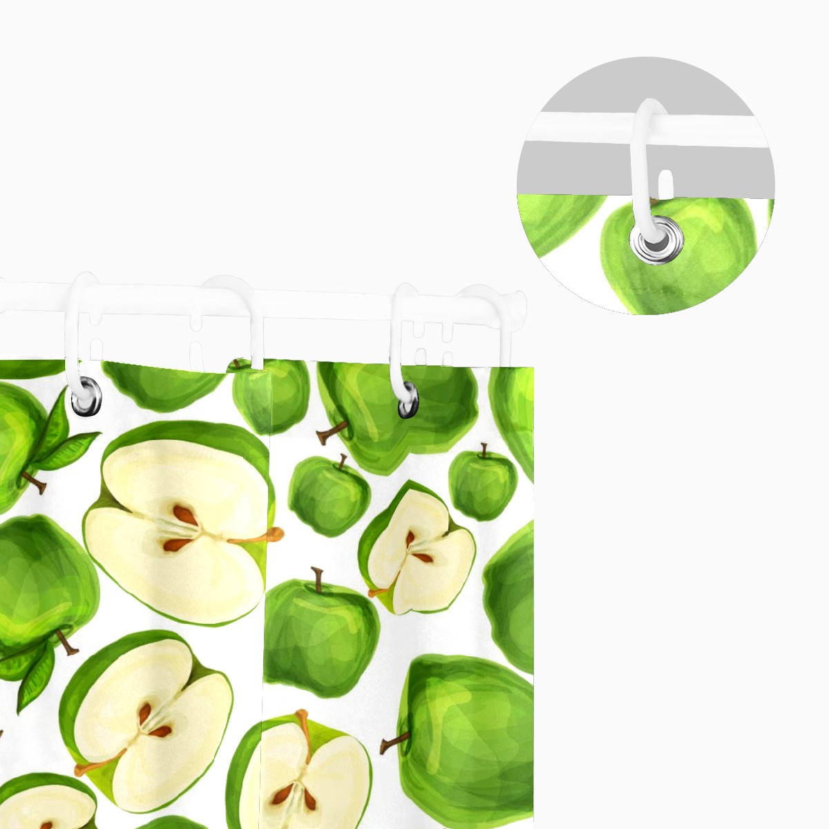 Shower Curtains for Bathroom Watercolor Green Apples Pattern Waterproof Polyester Fabric 60 x 72 inches Home Decor Bathroom Curtains for Kids Girls Boys with 12 Hooks