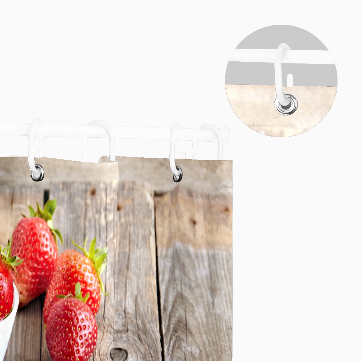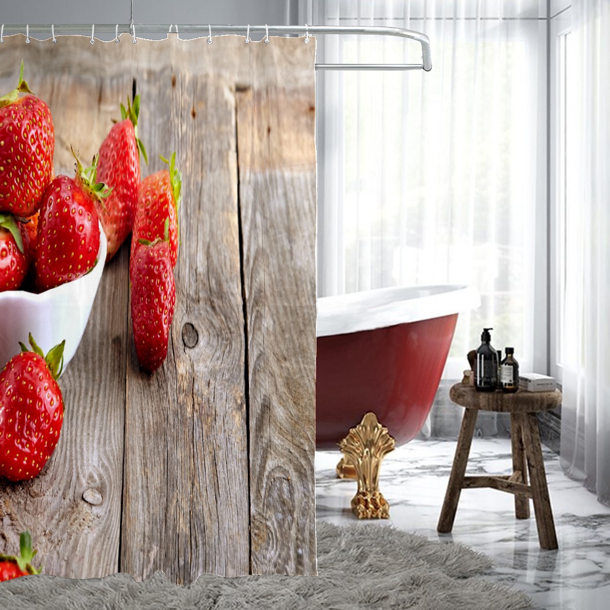 Shower Curtains for Bathroom Strawberries On Wood Waterproof Polyester Fabric 60 x 72 inches Home Decor Bathroom Curtains for Kids Girls Boys with 12 Hooks
