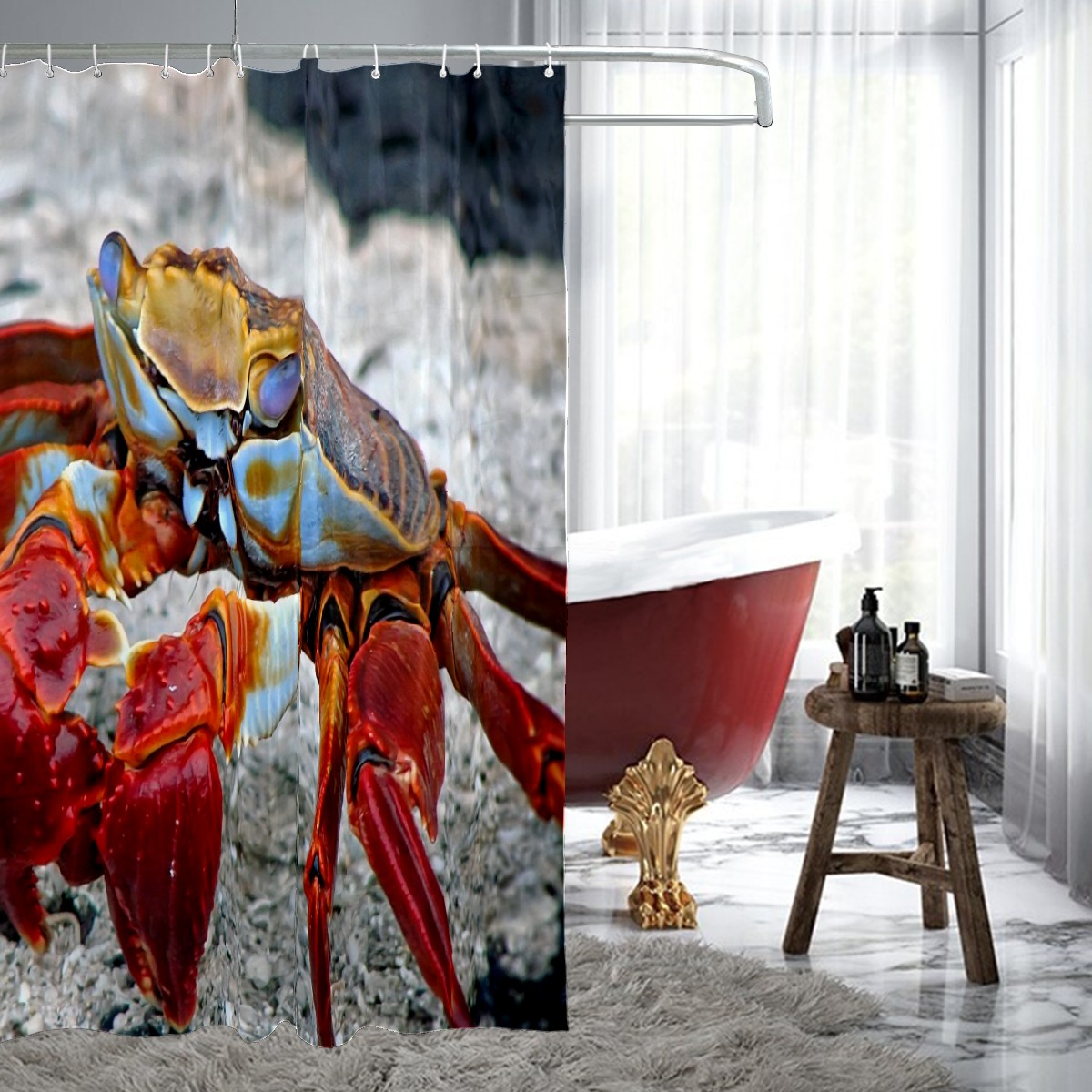 Shower Curtains for Bathroom Seafood Crab Waterproof Polyester Fabric 60 x 72 inches Home Decor Bathroom Curtains for Kids Girls Boys with 12 Hooks