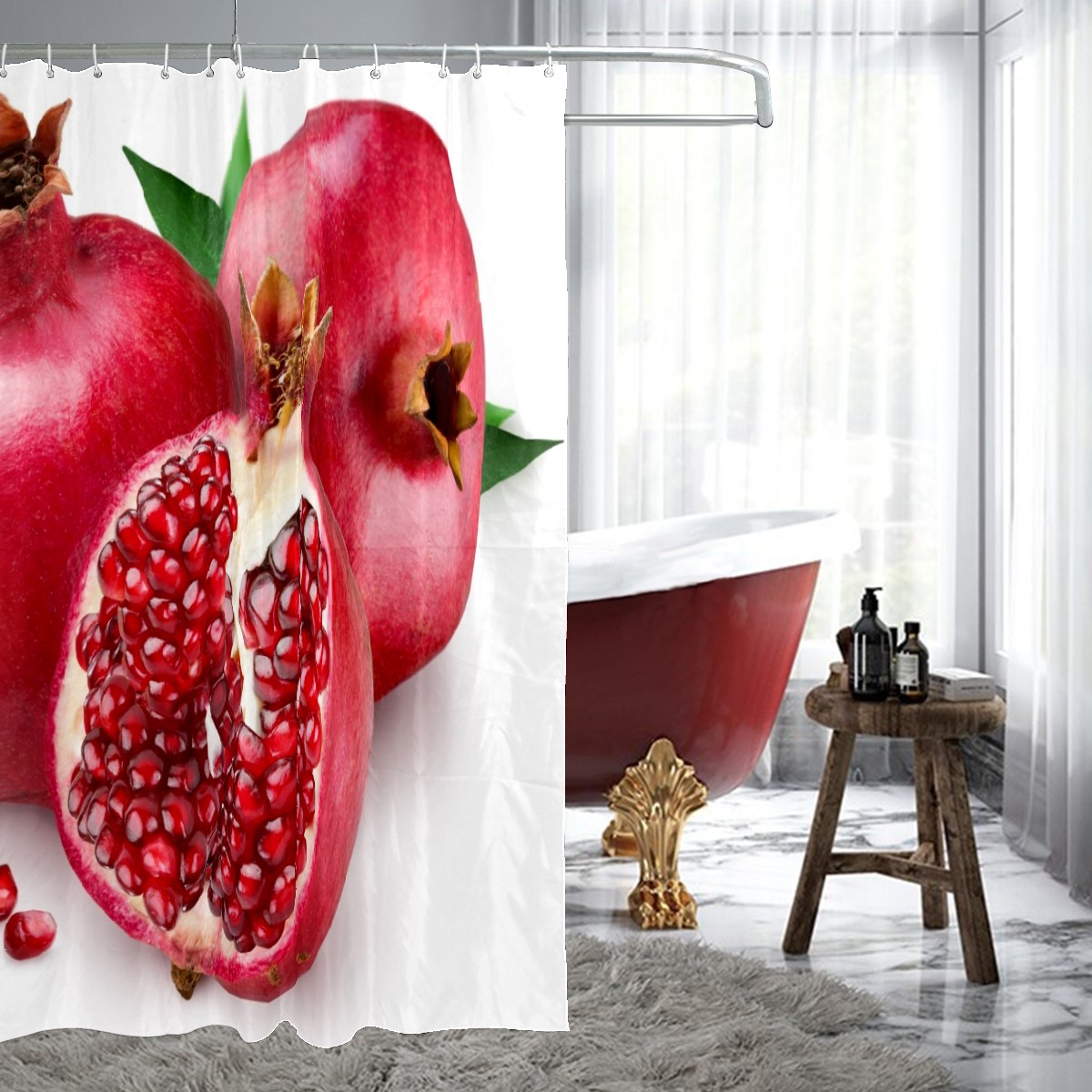 Shower Curtains for Bathroom Pomegranate Fruit Waterproof Polyester Fabric 60 x 72 inches Home Decor Bathroom Curtains for Kids Girls Boys with 12 Hooks