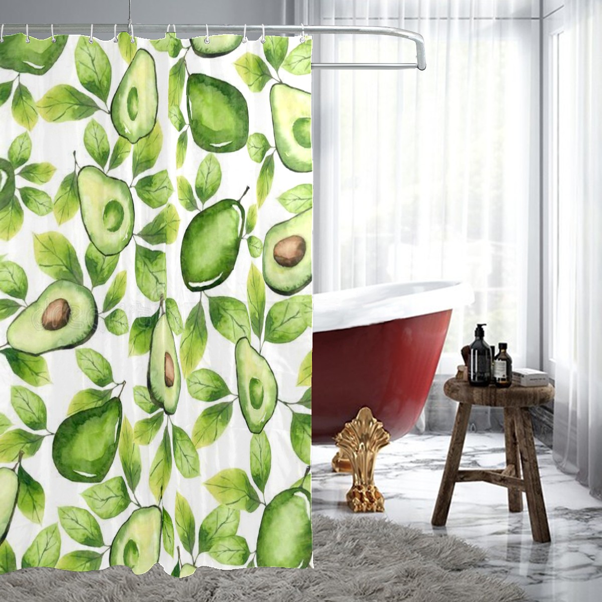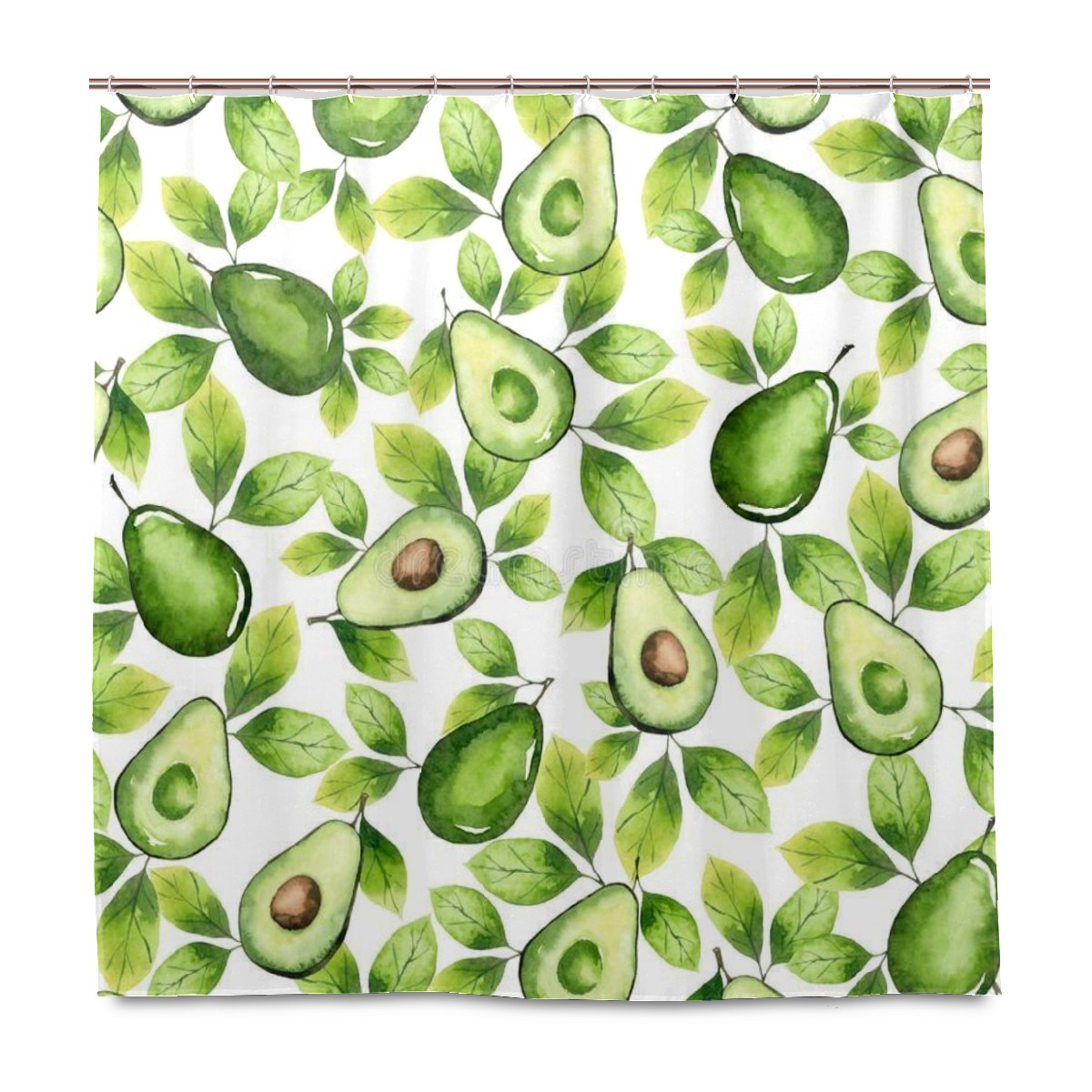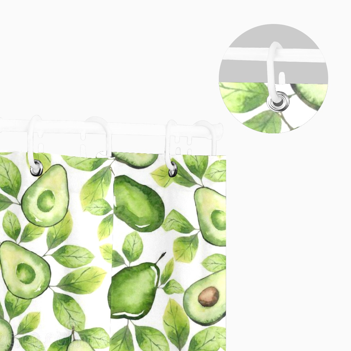 Shower Curtains for Bathroom Green Avocados Leaves Pattern Waterproof Polyester Fabric 60 x 72 inches Home Decor Bathroom Curtains for Kids Girls Boys with 12 Hooks