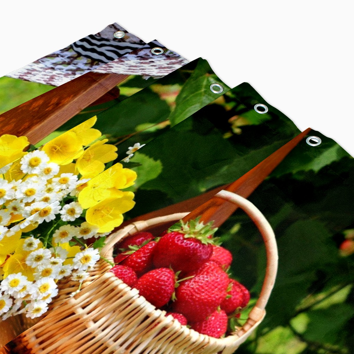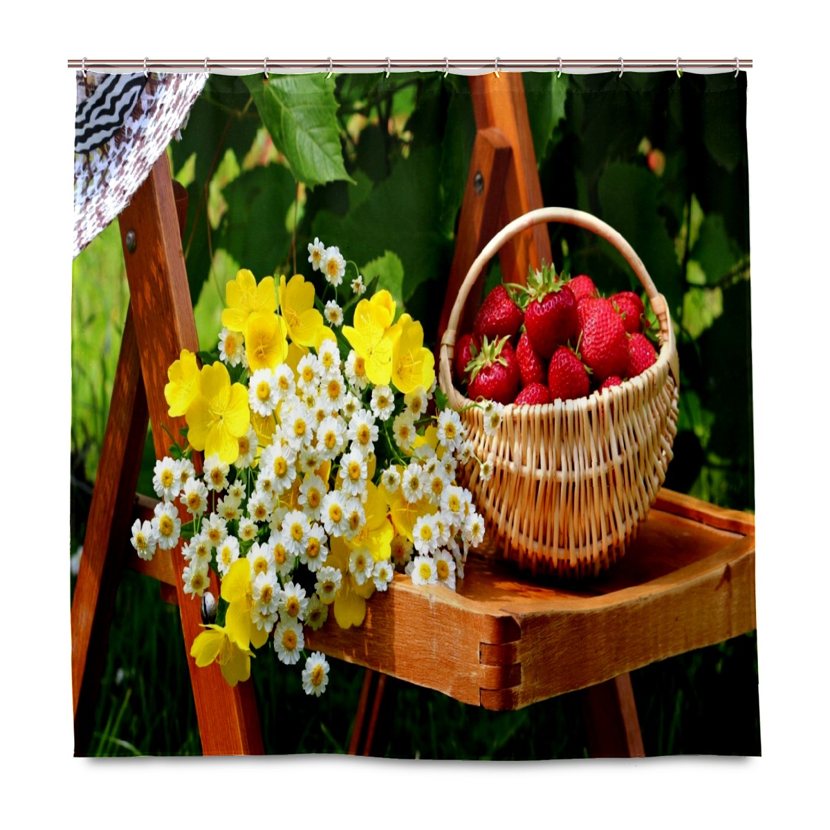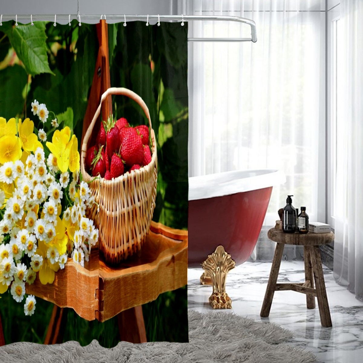 Shower Curtains for Bathroom Garden Fruits Basket Flowers Waterproof Polyester Fabric 60 x 72 inches Home Decor Bathroom Curtains for Kids Girls Boys with 12 Hooks