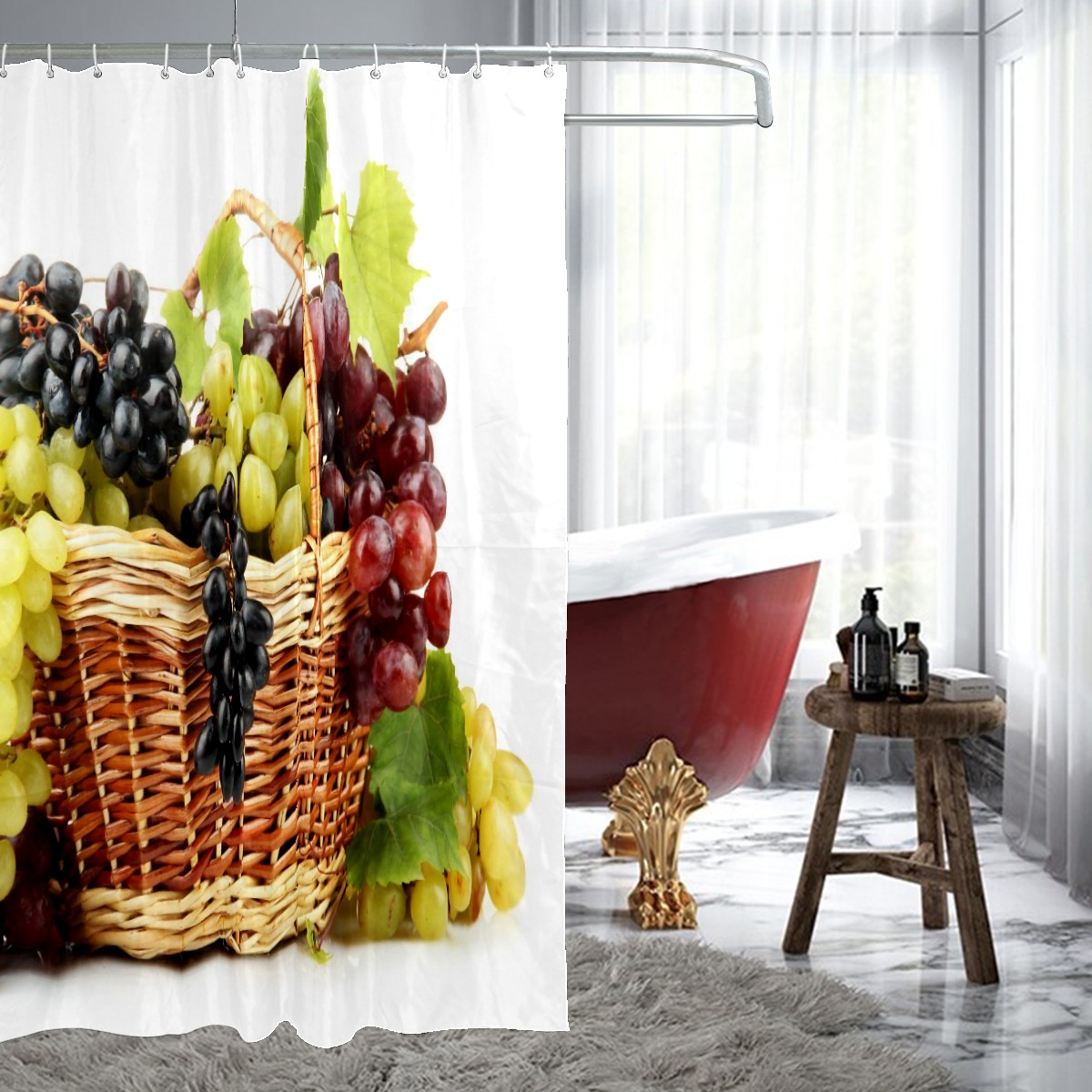 Shower Curtains for Bathroom Fruits Grapes Basket Waterproof Polyester Fabric 60 x 72 inches Home Decor Bathroom Curtains for Kids Girls Boys with 12 Hooks