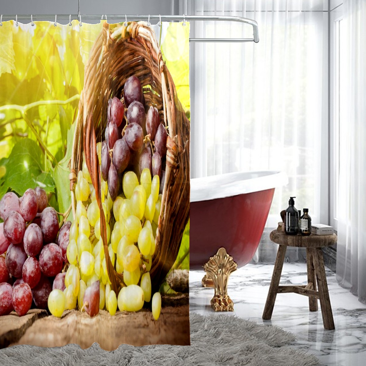 Shower Curtains for Bathroom Fruits Grapes Waterproof Polyester Fabric 60 x 72 inches Home Decor Bathroom Curtains for Kids Girls Boys with 12 Hooks