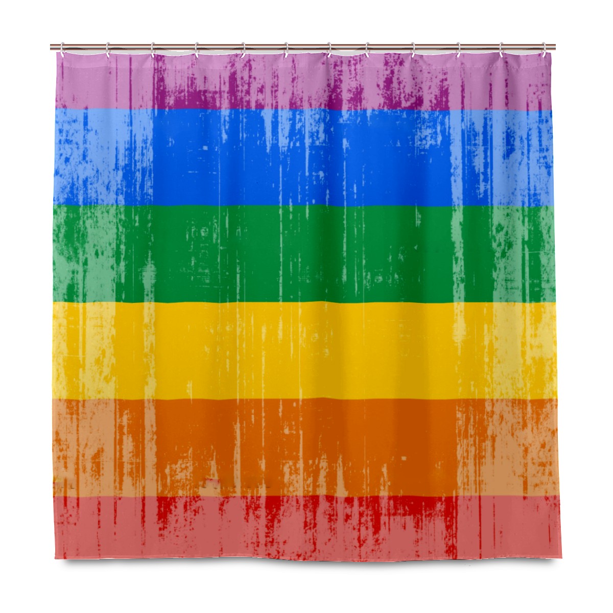 Shower Curtains for Bathroom Vintage Gay Pride Flag Waterproof Polyester Fabric 60 x 72 inches Home Decor Bathroom Curtains for Kids Girls Boys with 12 Hooks